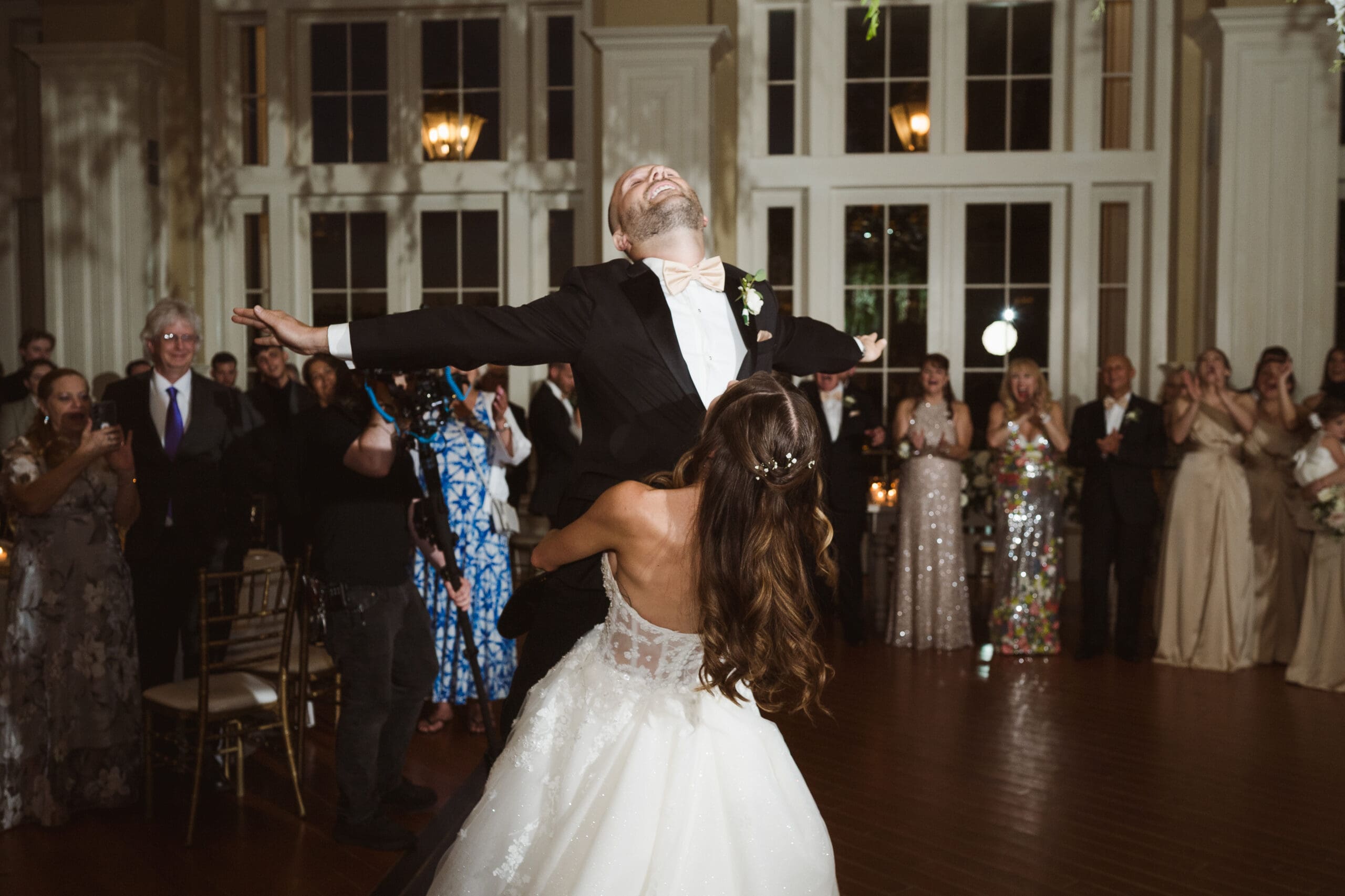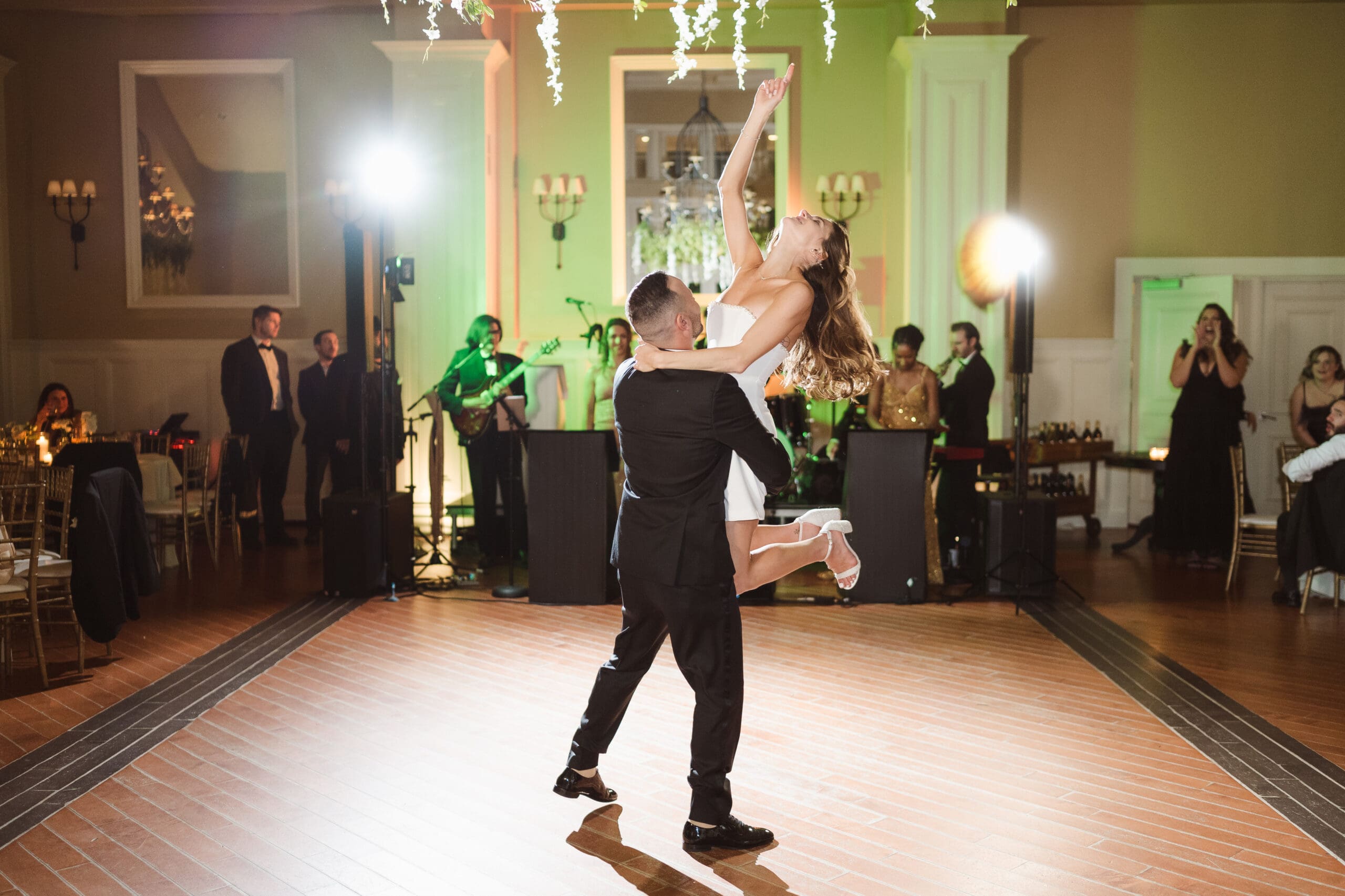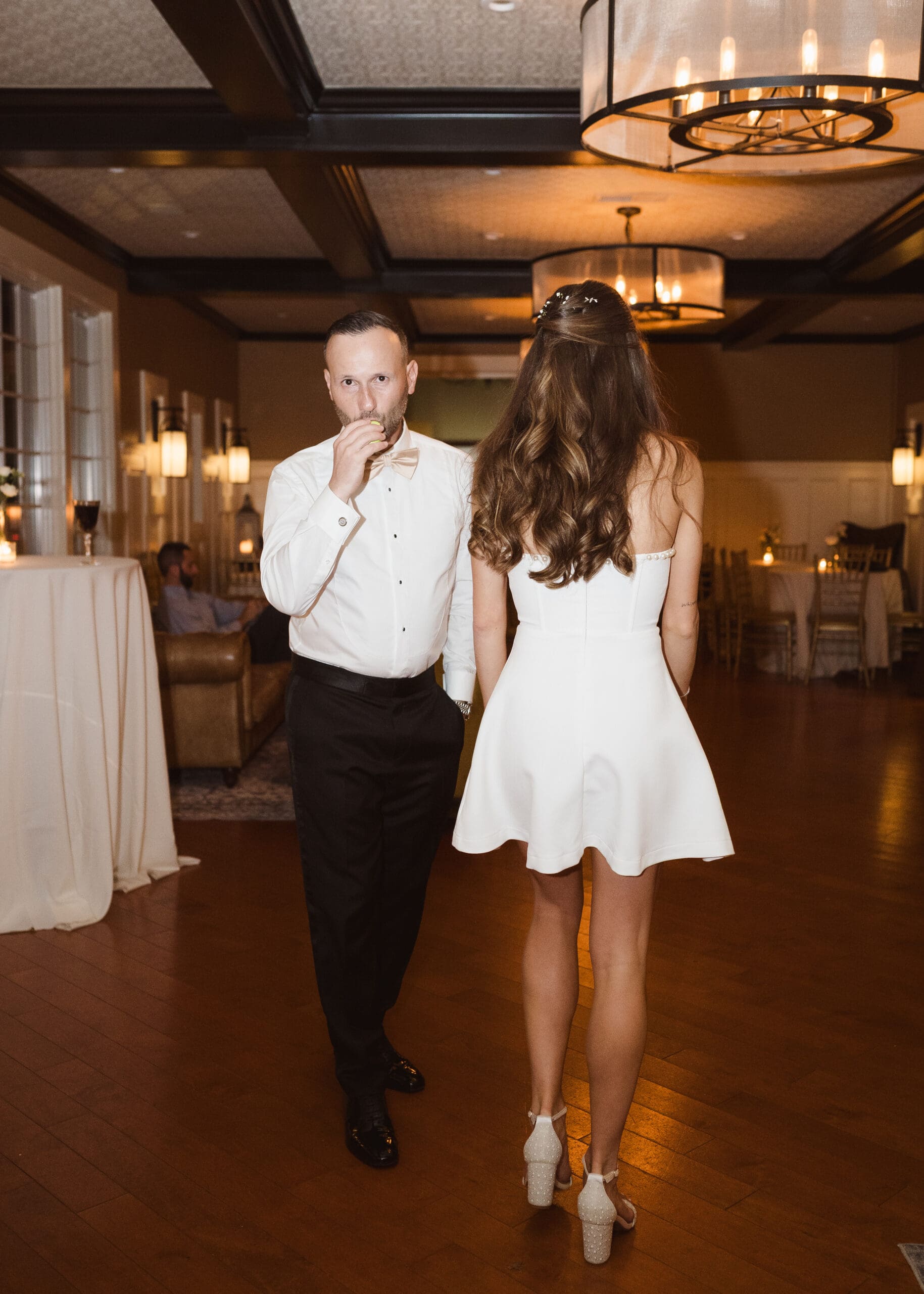 - Photos inside the ballroom, practicing first dance