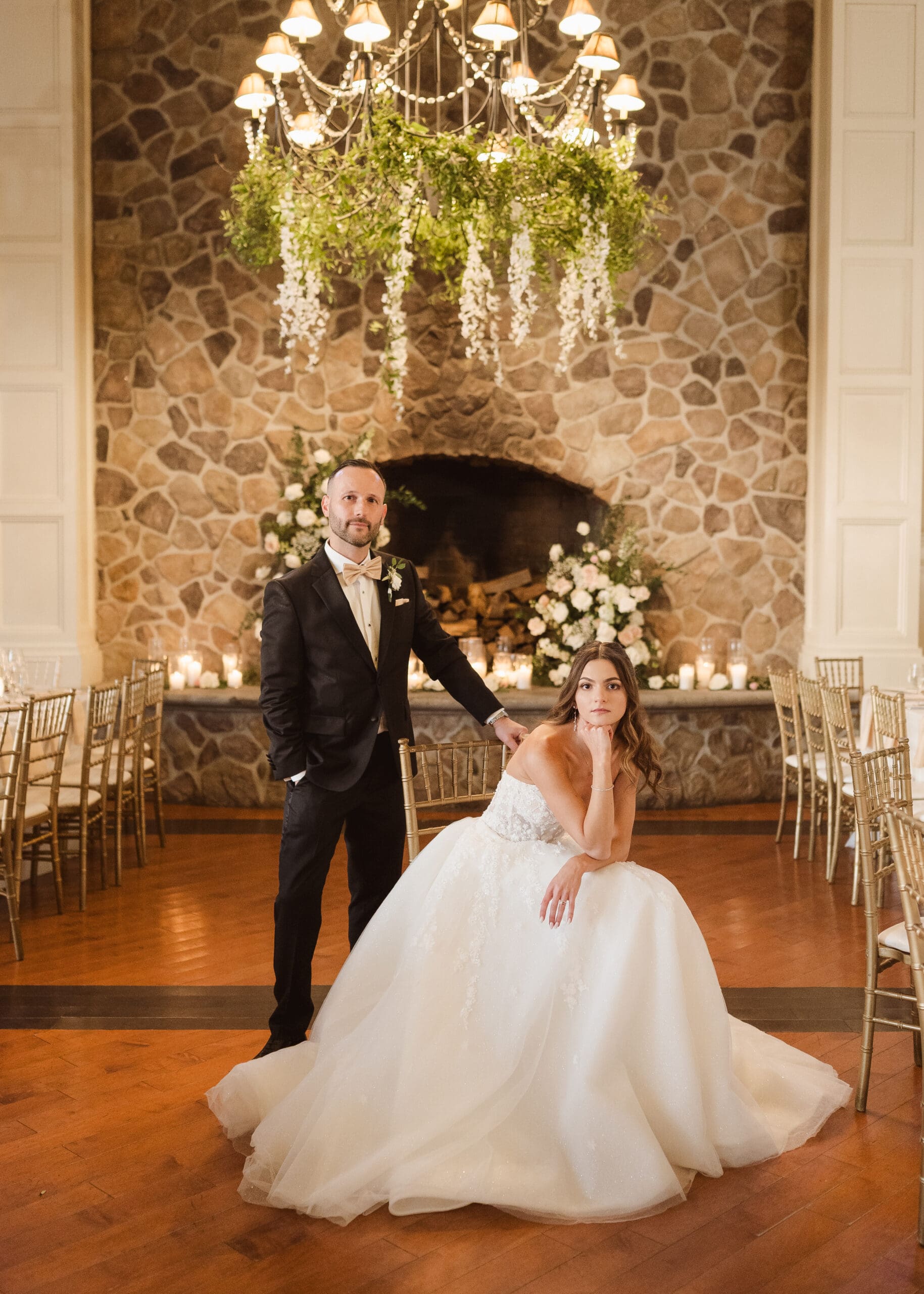 - The chandeliers can be dressed up with floral installations, and the fireplace in the Grand Ballroom can serve as a beautiful photo backdrop during the reception. Make sure to ask your florist to repurpose flowers from the ceremony to use at the fireplace!