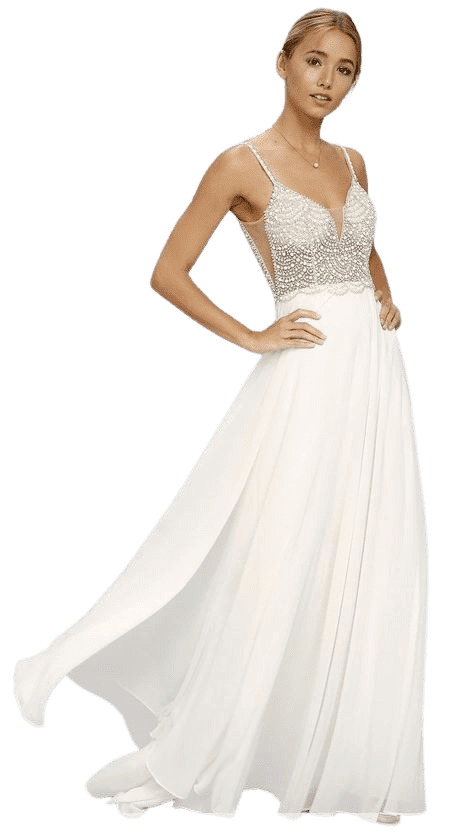 I personally have ordered several gowns for engagement photoshoots from Mia Bella Couture . Follow them on Instagram as they repost so many of the cutest dress photos from real people wearing their gowns. Mia Bella is a small business and sells designer, luxury, and discounted engagement/wedding announcement photo dresses. Sign up for their emails and look out for major clearance on designer brands! I wouldn’t be surprised if you end up finding your dream wedding dress here too.