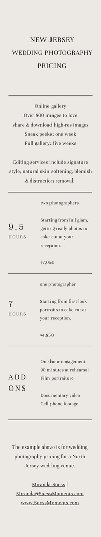 When you inquire, I will send over a complimentary timeline and pricing that's thoughtfully tailored to what your inquiry details included. That way, you'll only book the hours you actually need to preserve your most meaningful moments of the day.