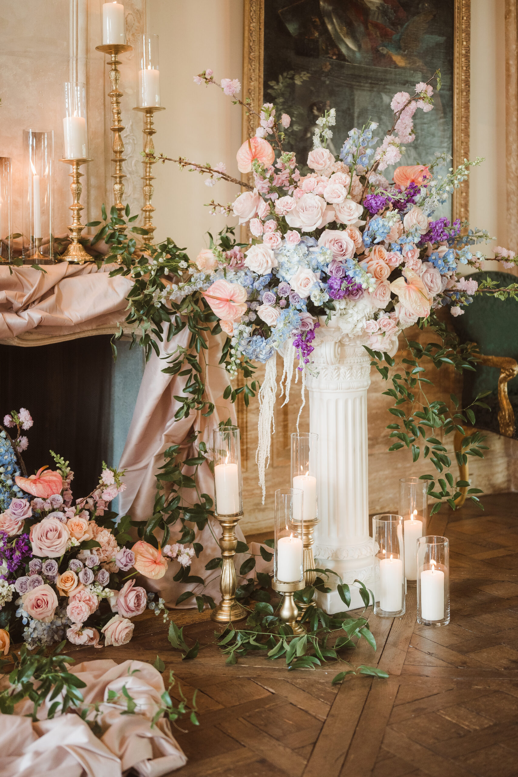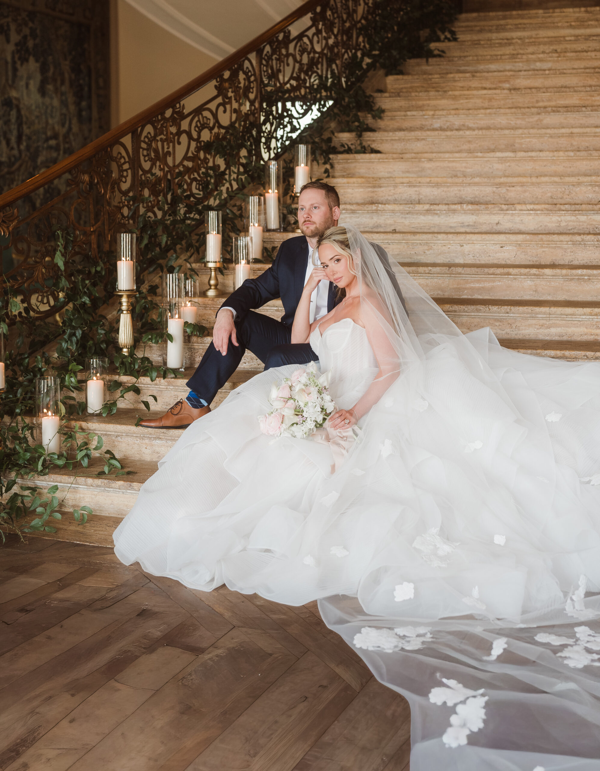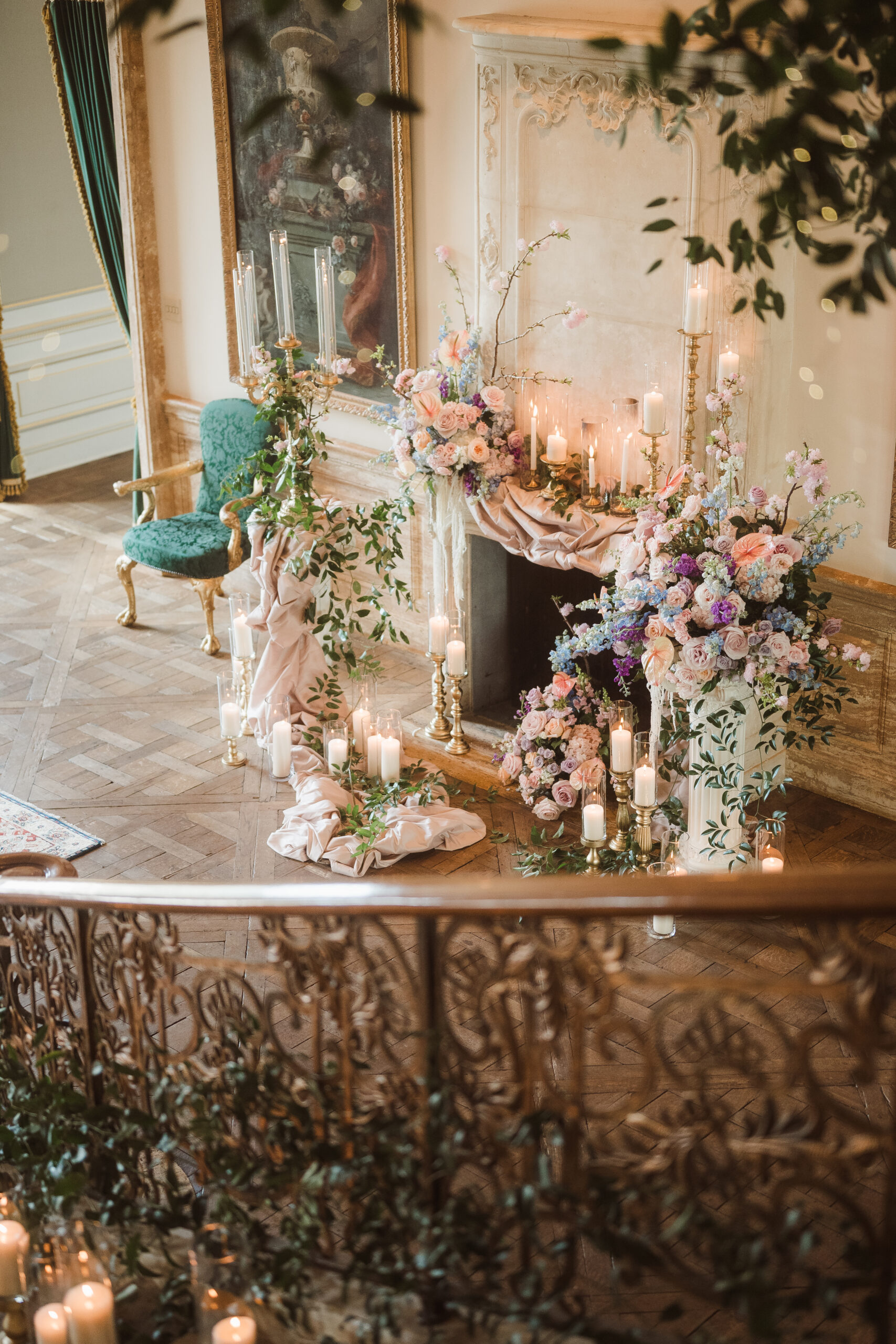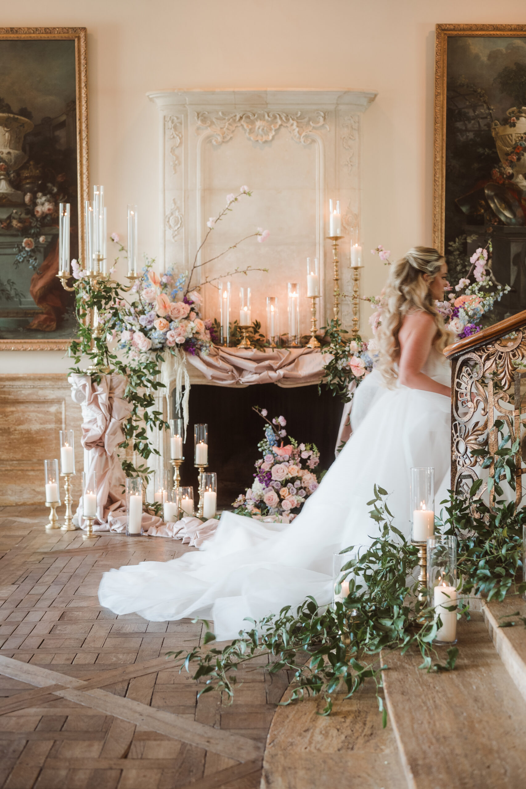 Find inspiration in a spring wedding set at a historic Princeton mansion like Jasna Polana, where pastel tones, fresh greenery, and candlelight come together to create a soft, romantic atmosphere. Picture delicate florals, glowing light as the sun sets, and a flowing gown that moves effortlessly. The entire setting feels timeless, elegant, and straight out of a fairytale.