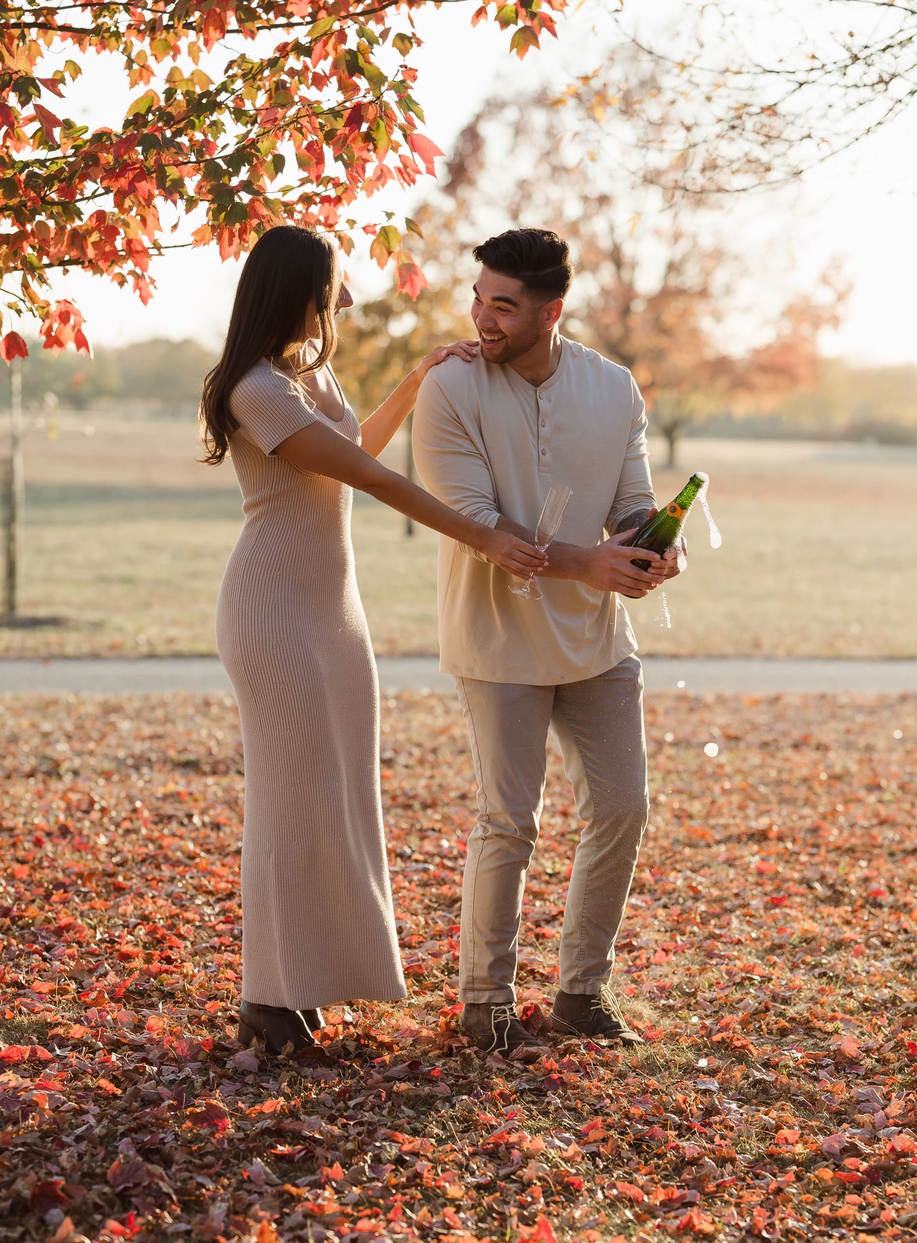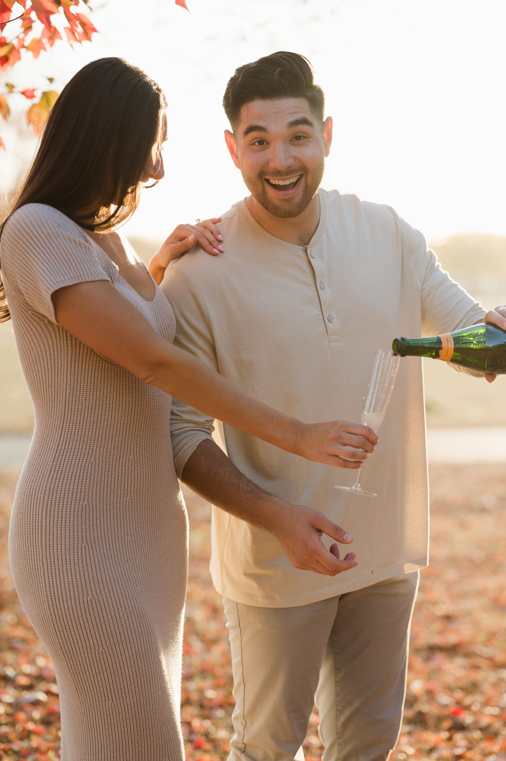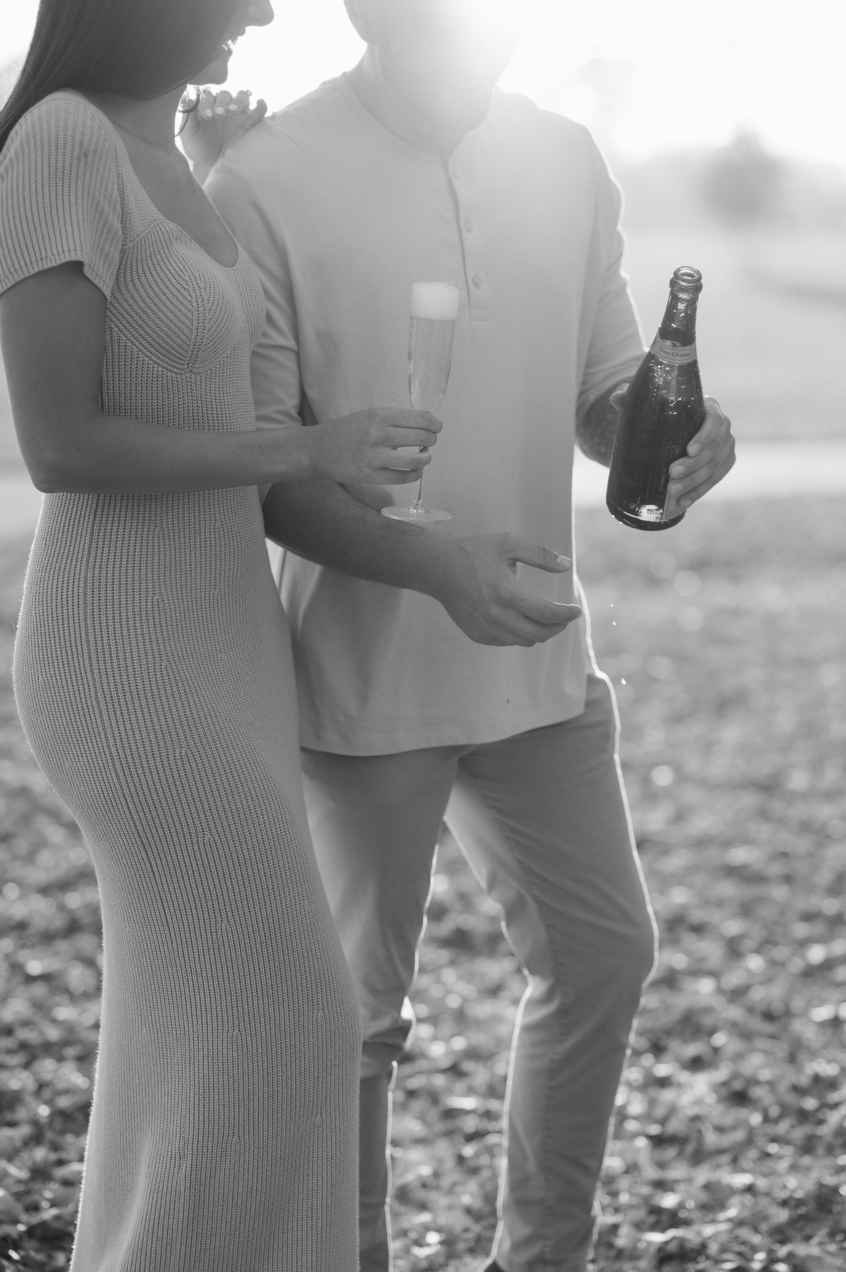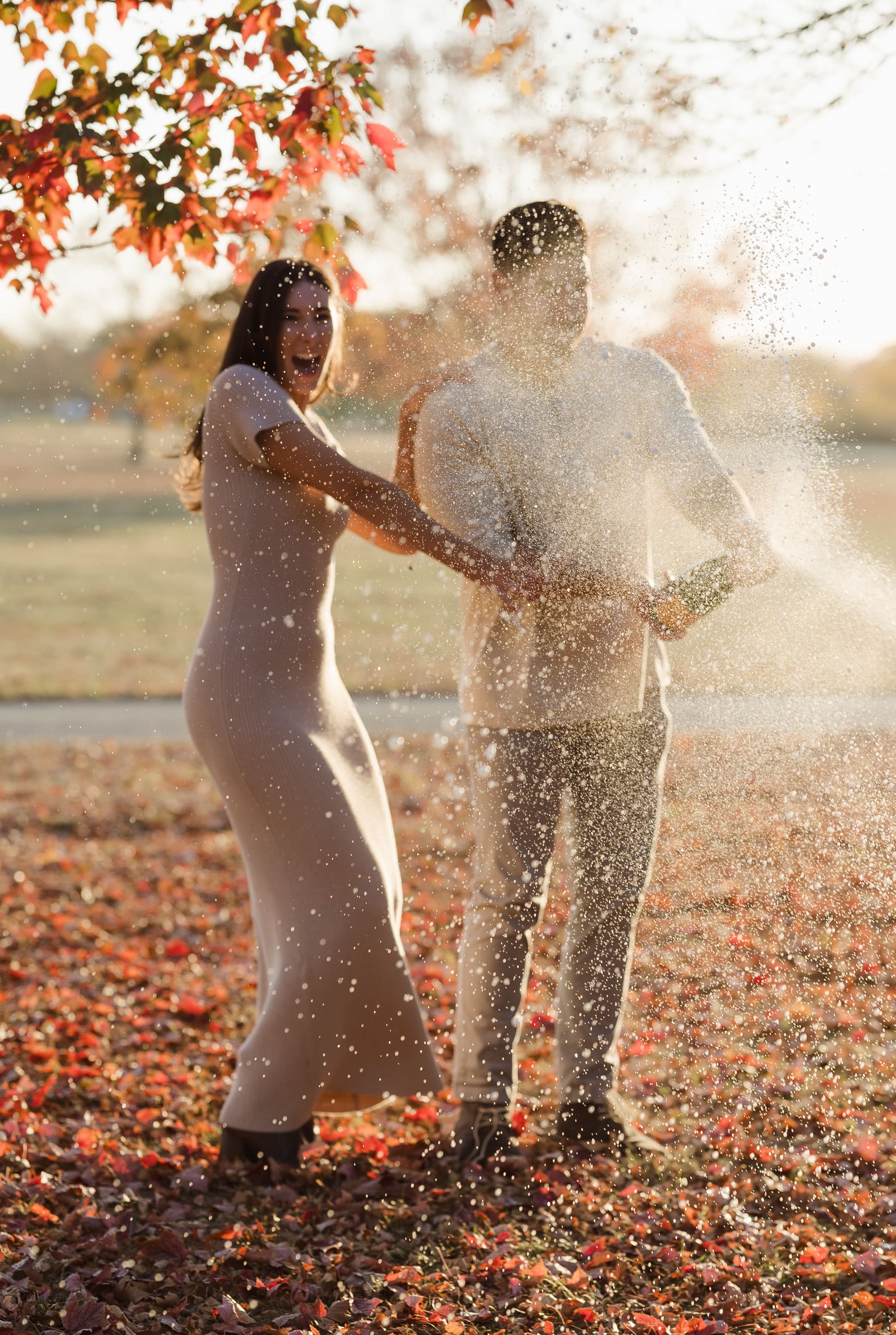 To wrap up the session, we celebrated their engagement by popping a bottle of champagne, sharing a delightful picnic under the warm golden hues of the sunset, and enjoying some spontaneous dancing to commemorate this special moment in their lives. It was a perfect way to encapsulate their love story against the stunning backdrop of the Manhattan skyline and the serene beauty of Liberty State Park.