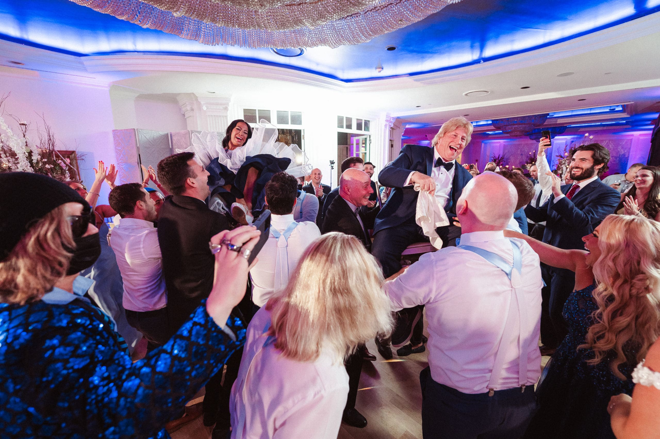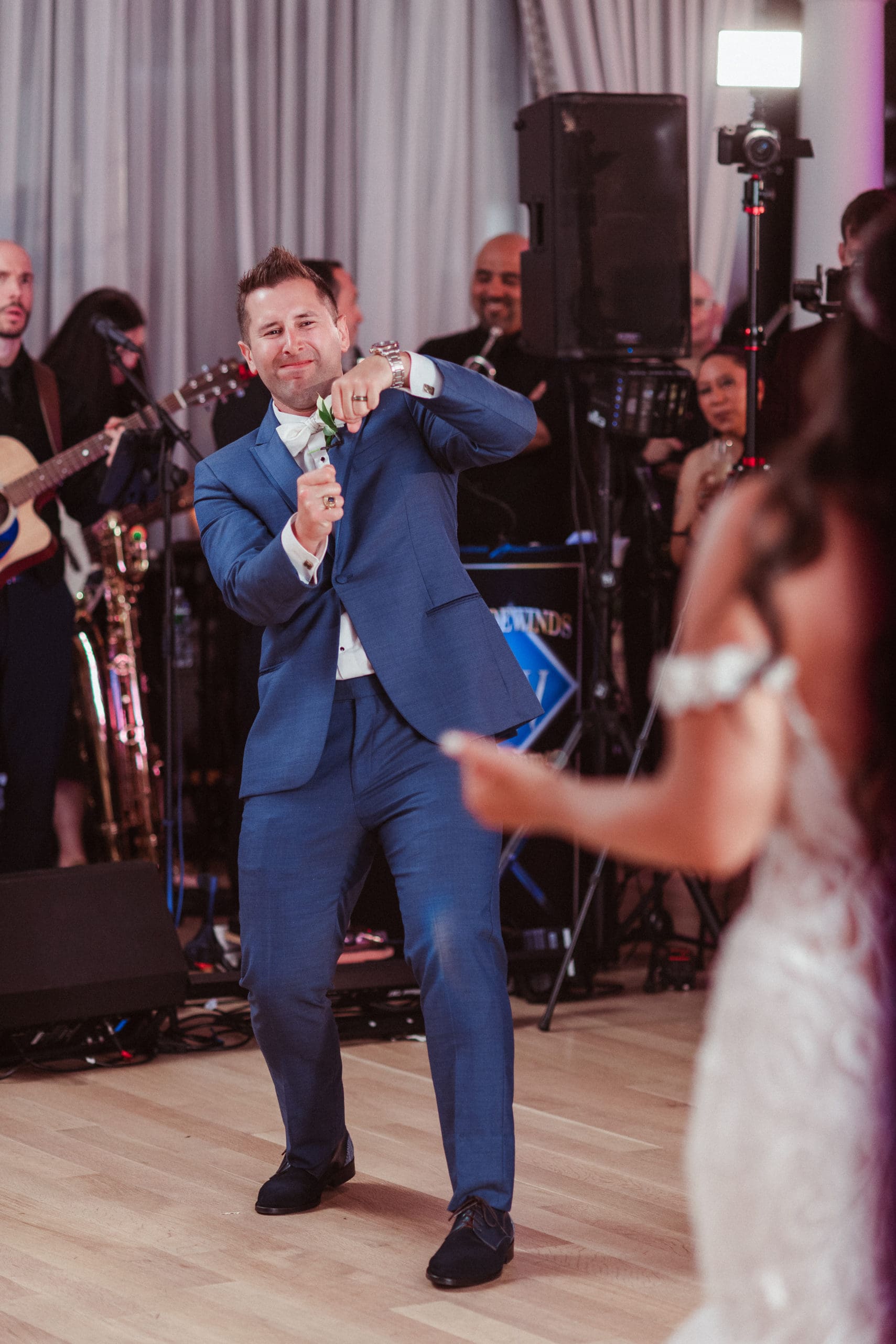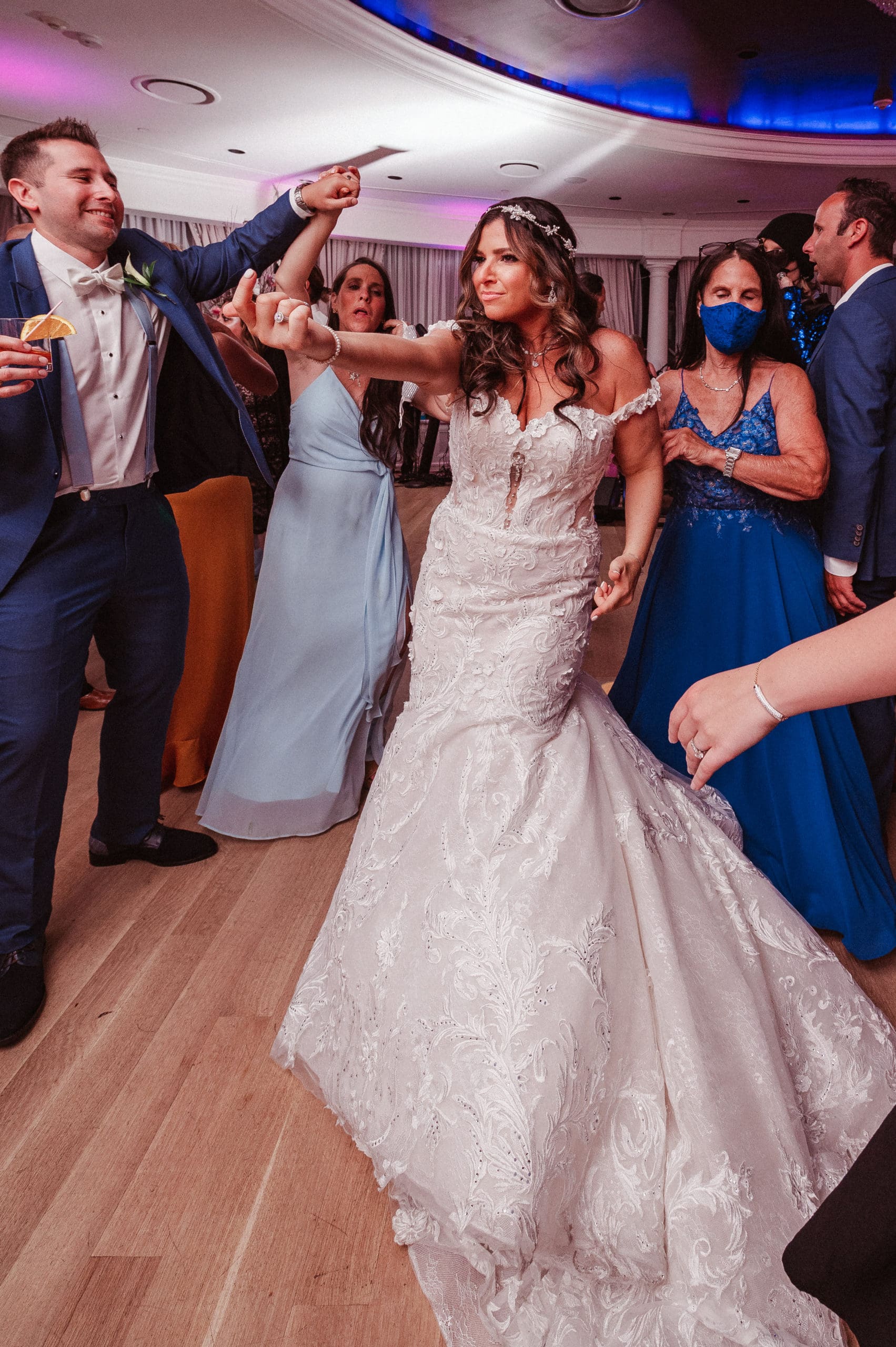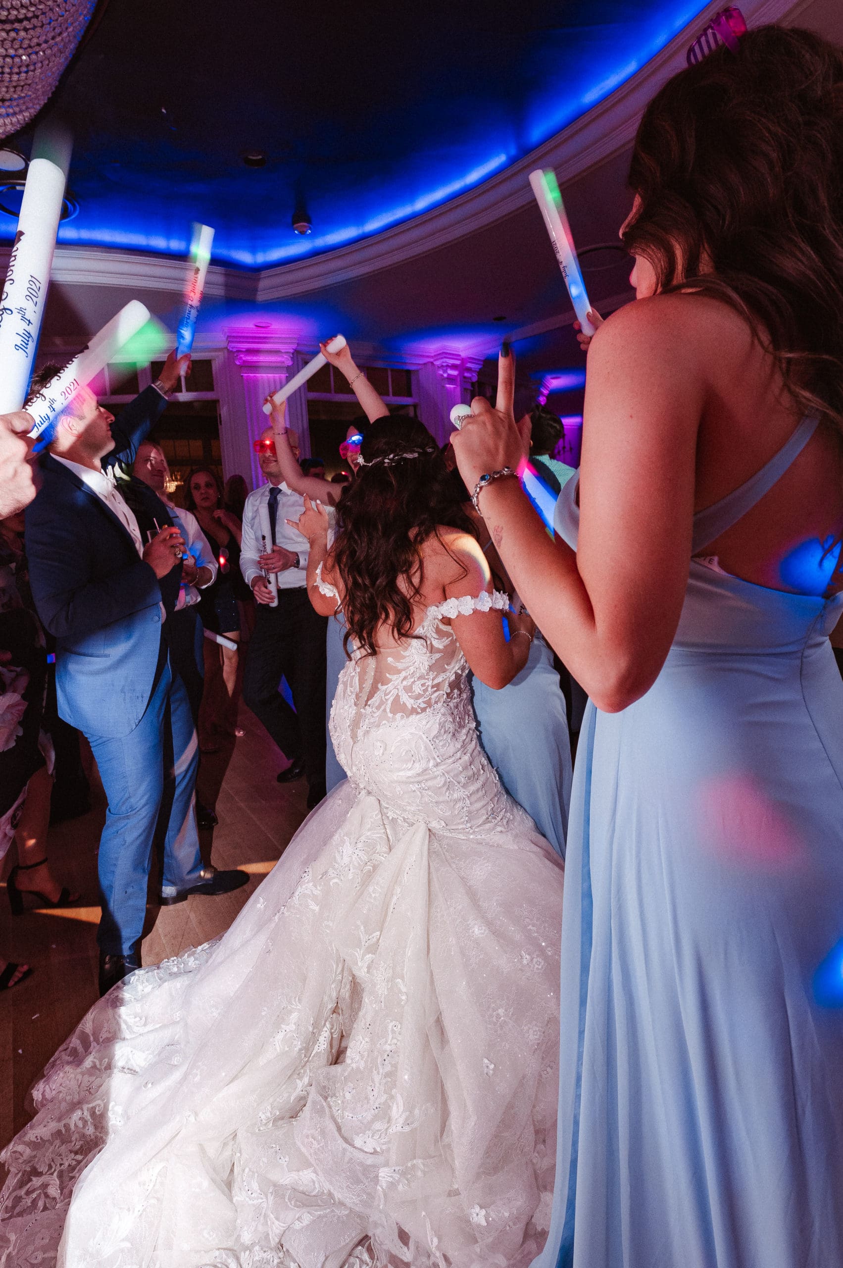The entertainment on their wedding day by Phoenix Entertainment NYC slayed it with their performers throughout the night. Not to mention, the incredibly talented live band who kept people dancing all night long! By the end of the night, we did a sparkler exit out the front of the Glen Cove Mansion. Only 15 people showed up to participate in the sparkler send-off, while the rest of the party went to the after-party and their rooms for the night.