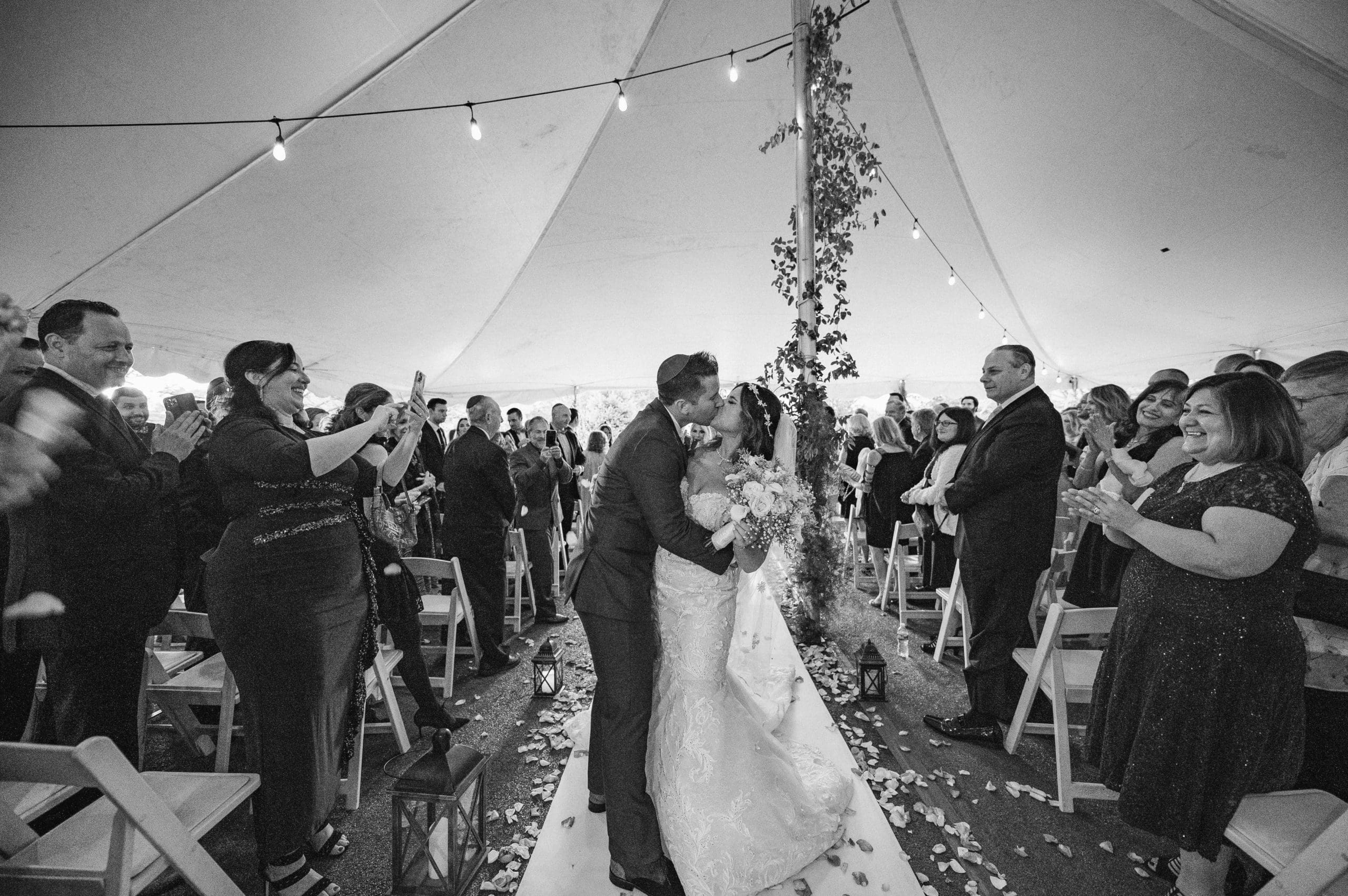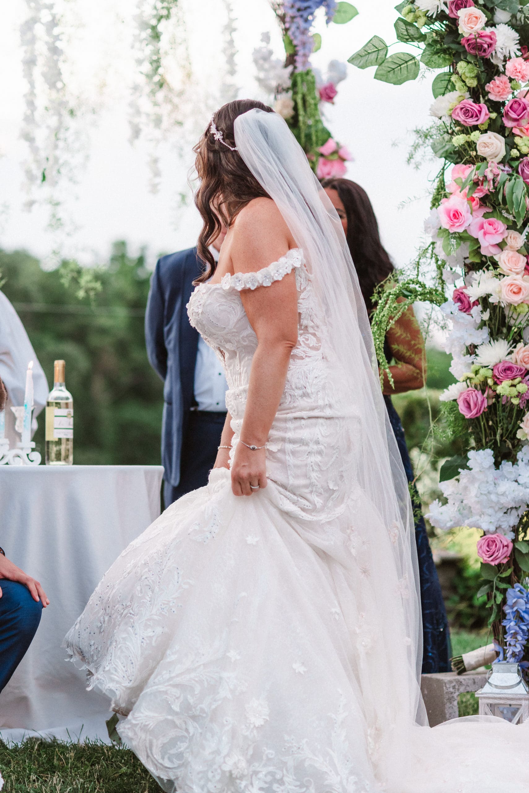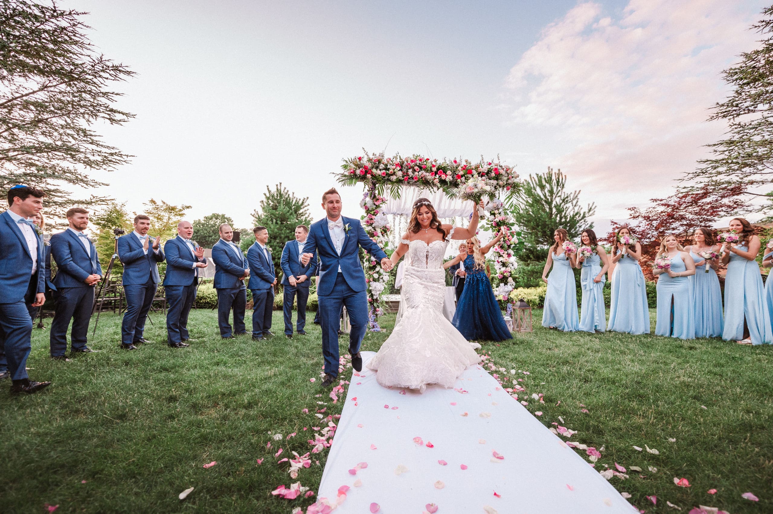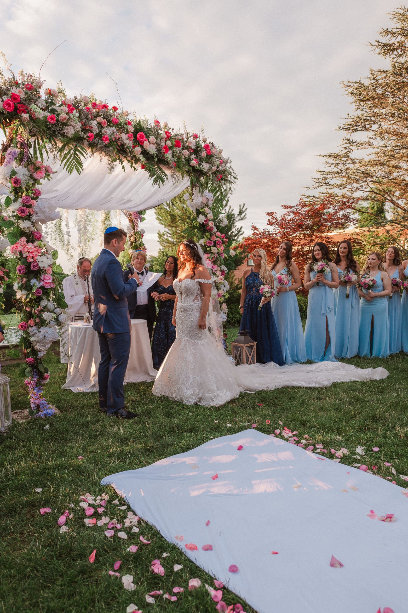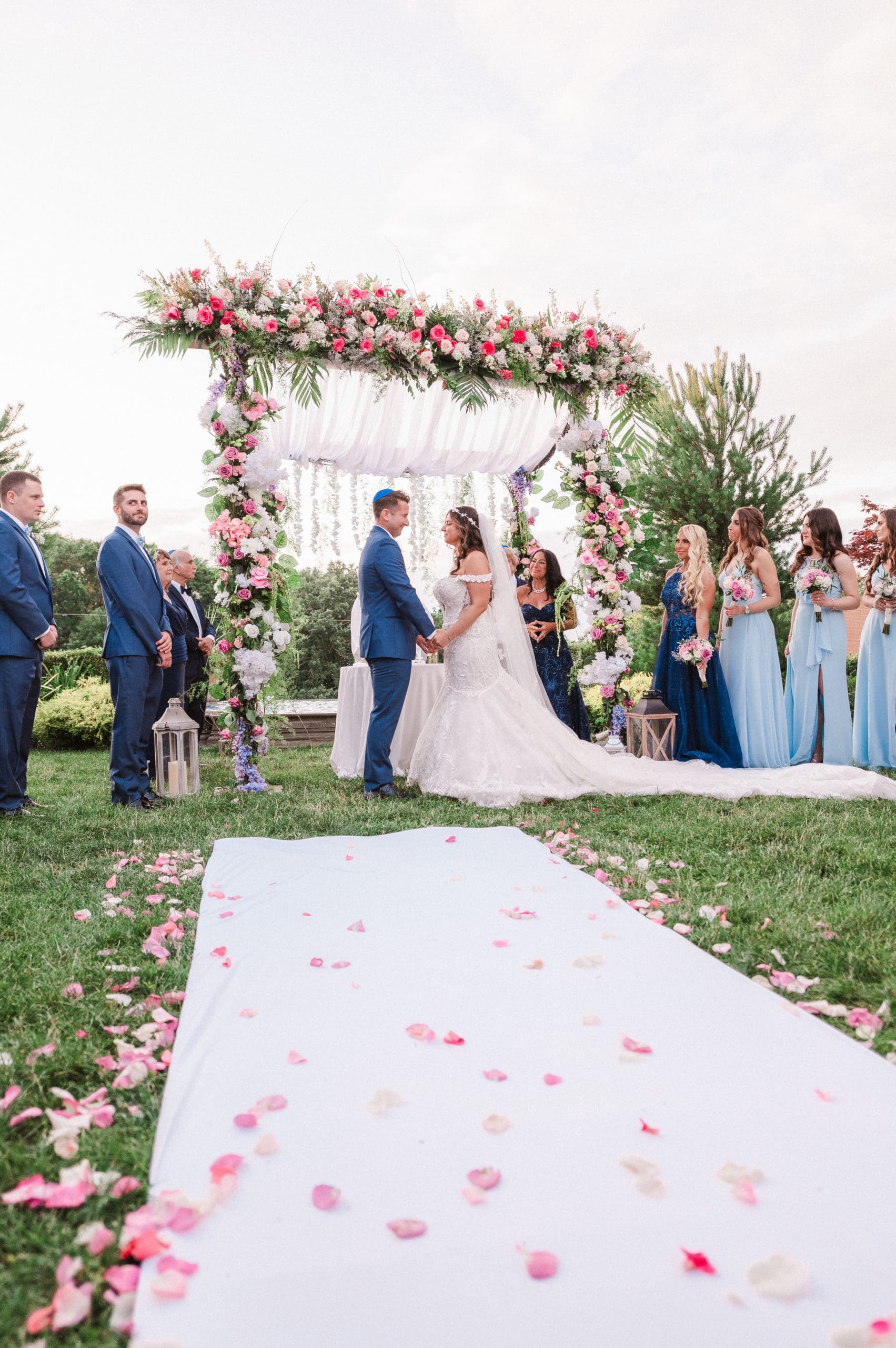 We started the ceremony downstairs in a designated room with Neil Cantor, while intimate family witnessed the signing of their marriage license. Immediately following, the outdoor ceremony at Glen Cove Mansion took place under a tent to keep the guests out of the sun. The visuals on the wedding day were absolutely breathtaking because of the beautiful design by the floral team! Both ceremonies + time to freshen up/prep is about 2 hours.