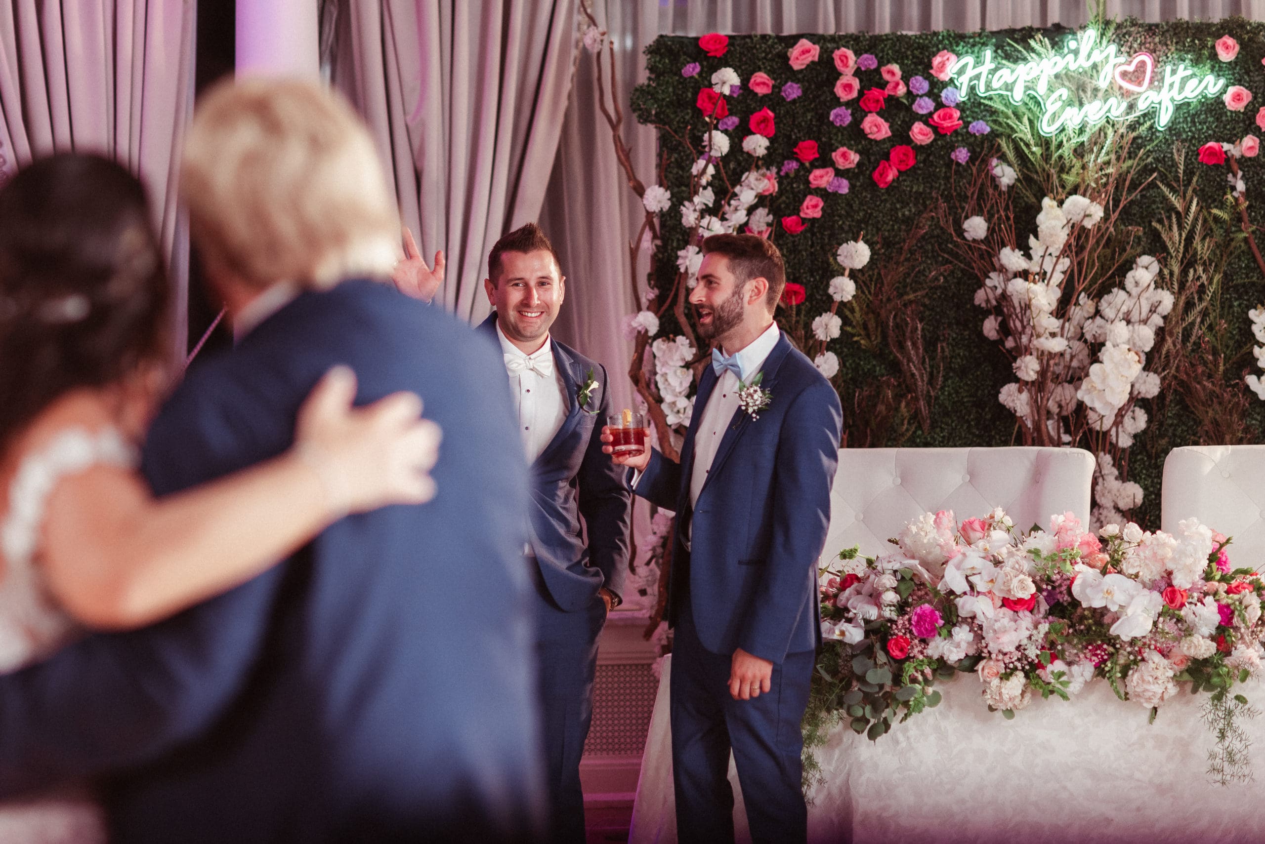 The groom wanted special portraits with his groomsmen in the pool/bar room and first looks with his parents + opening a gift from his bride so I had organized an hour and 15 minutes of photos so that the 2nd photographer didn’t feel rushed and had room for creativity.