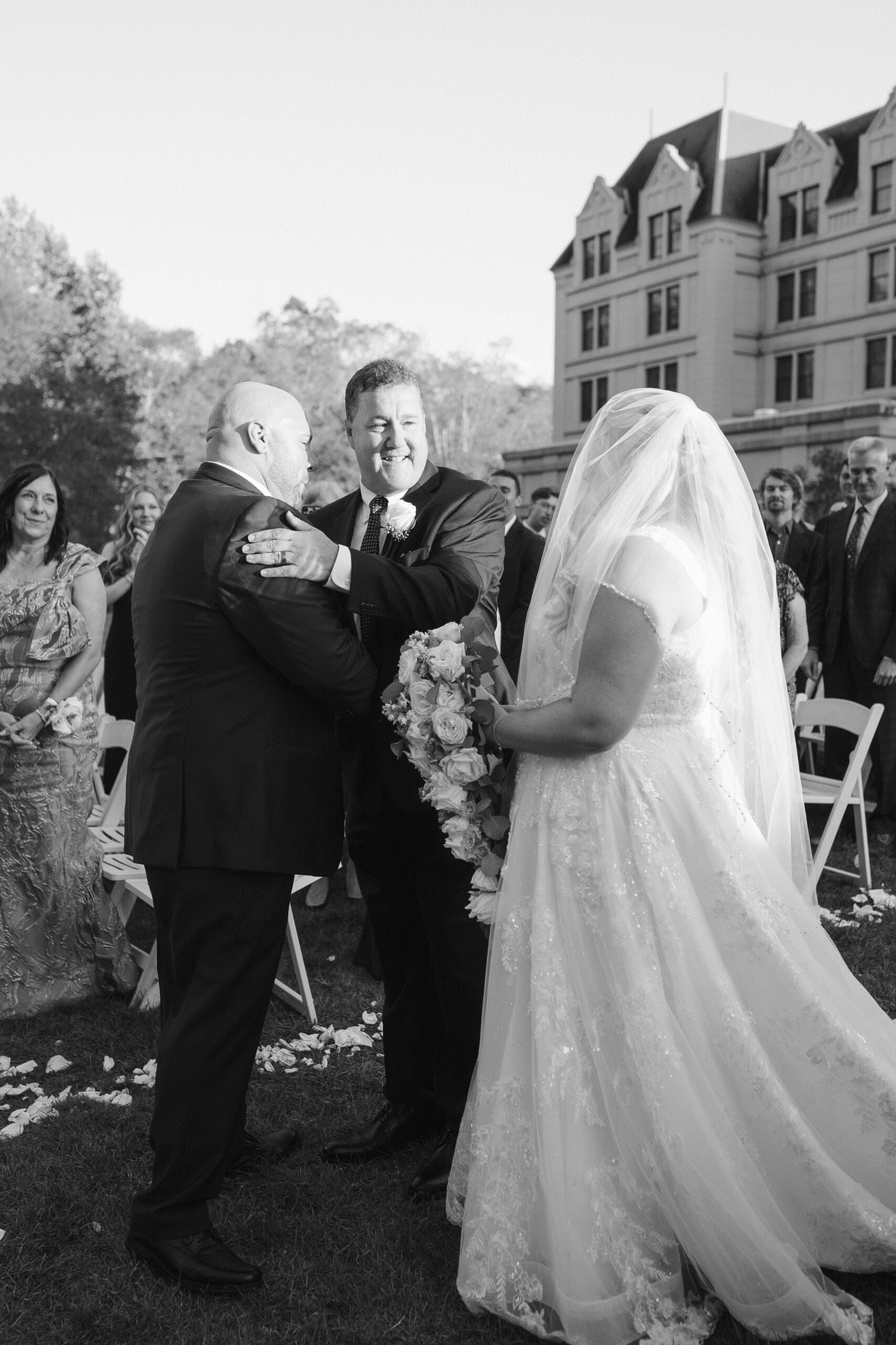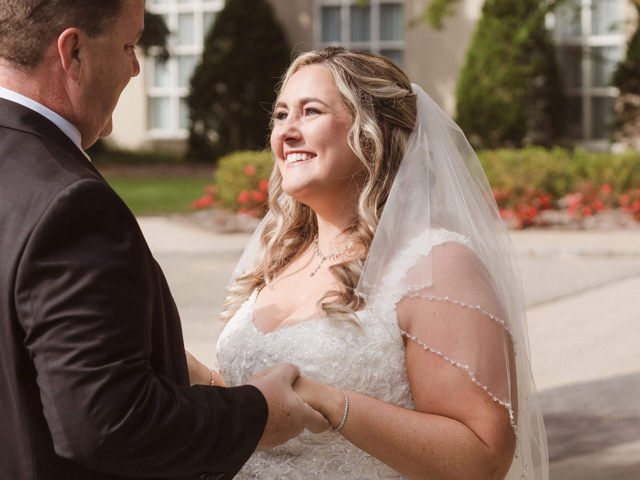 I had no expectations when I arrived at the Hilton Pearl River in New Jersey for this wedding, as I had never been there or photographed a wedding at that venue before. However, I can confidently say that this venue is a hidden gem. The European-inspired architecture is incredibly photogenic, and the surrounding trees create a perfect backdrop for outdoor wedding ceremonies in late spring, summer, and fall.