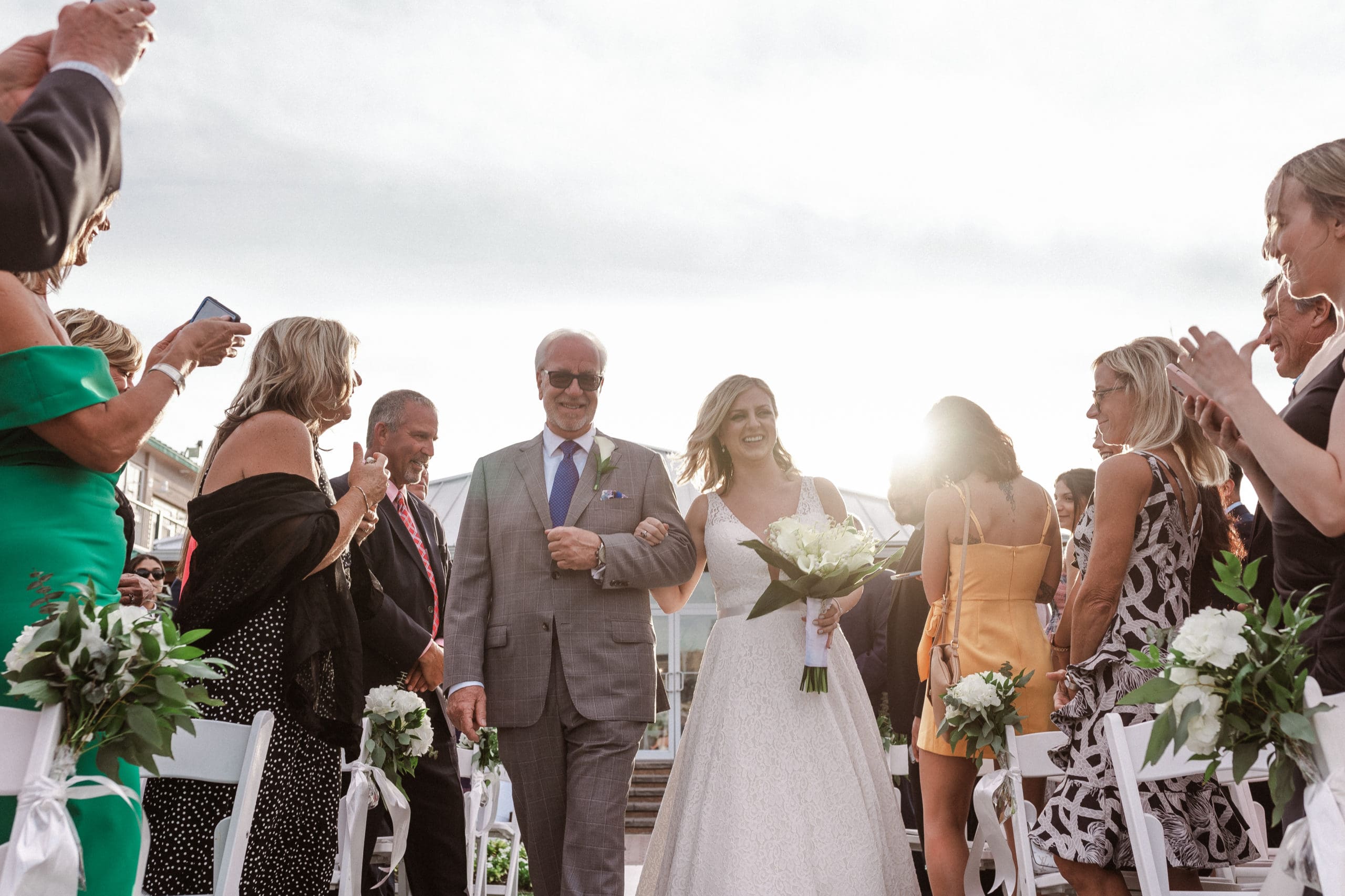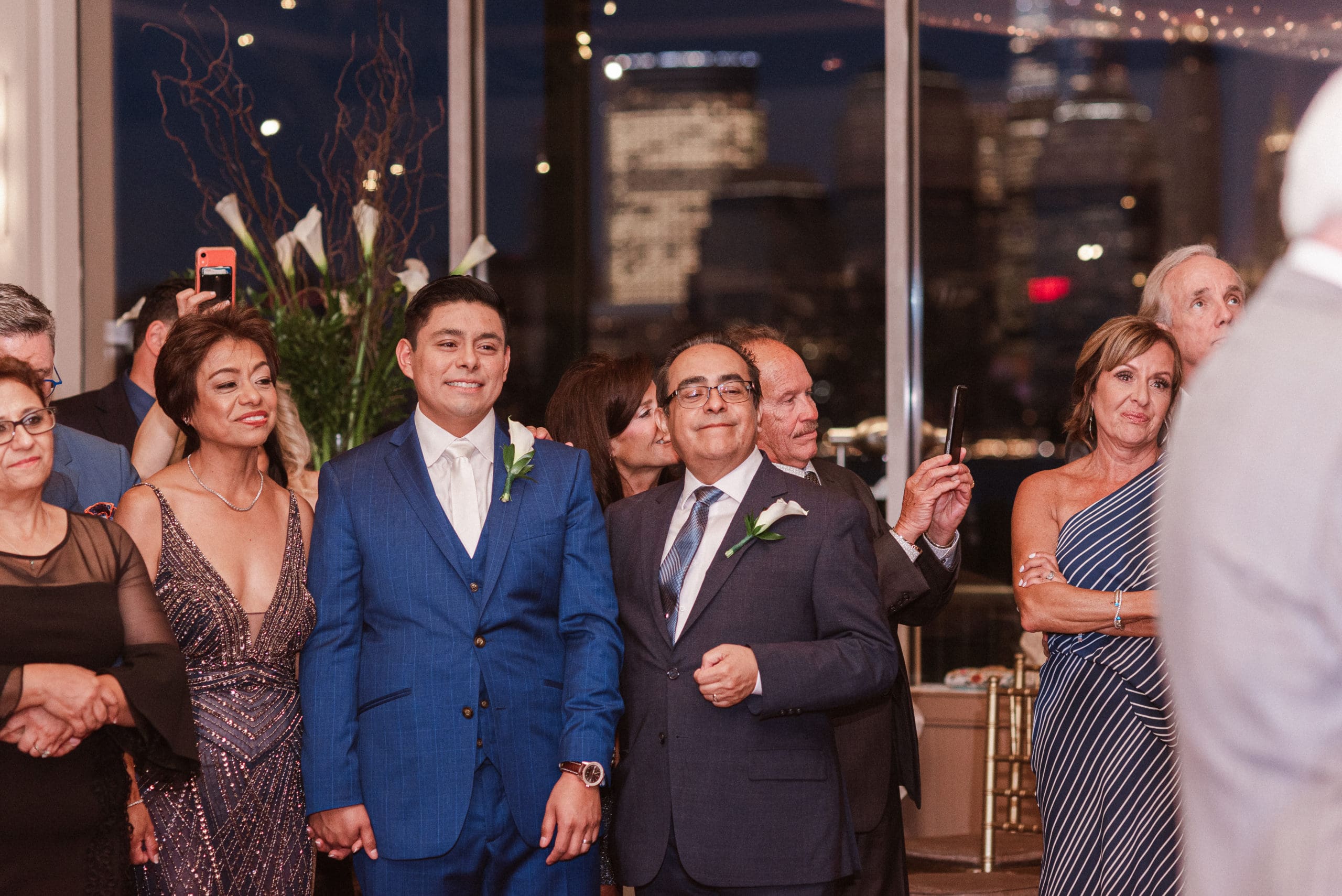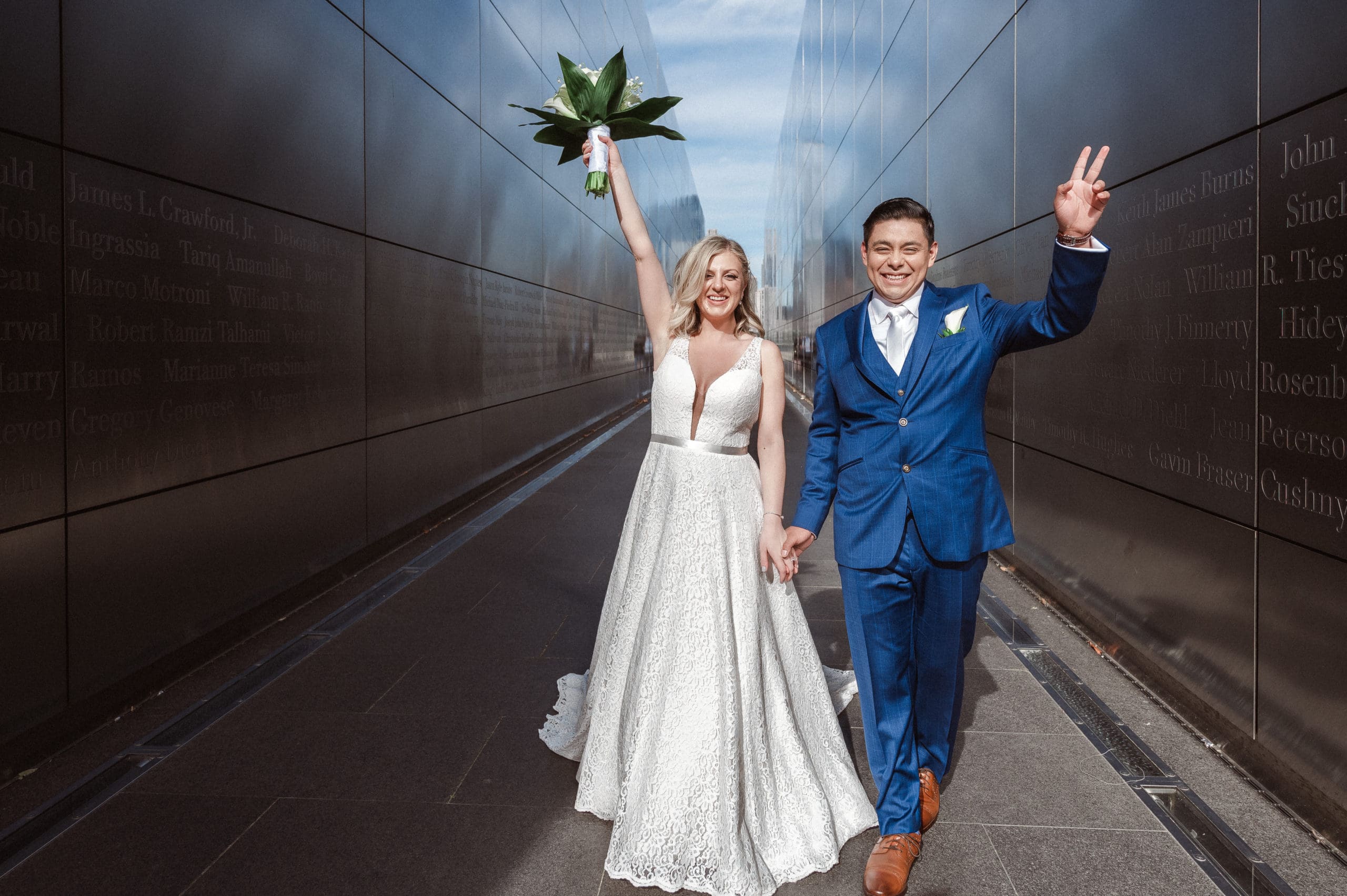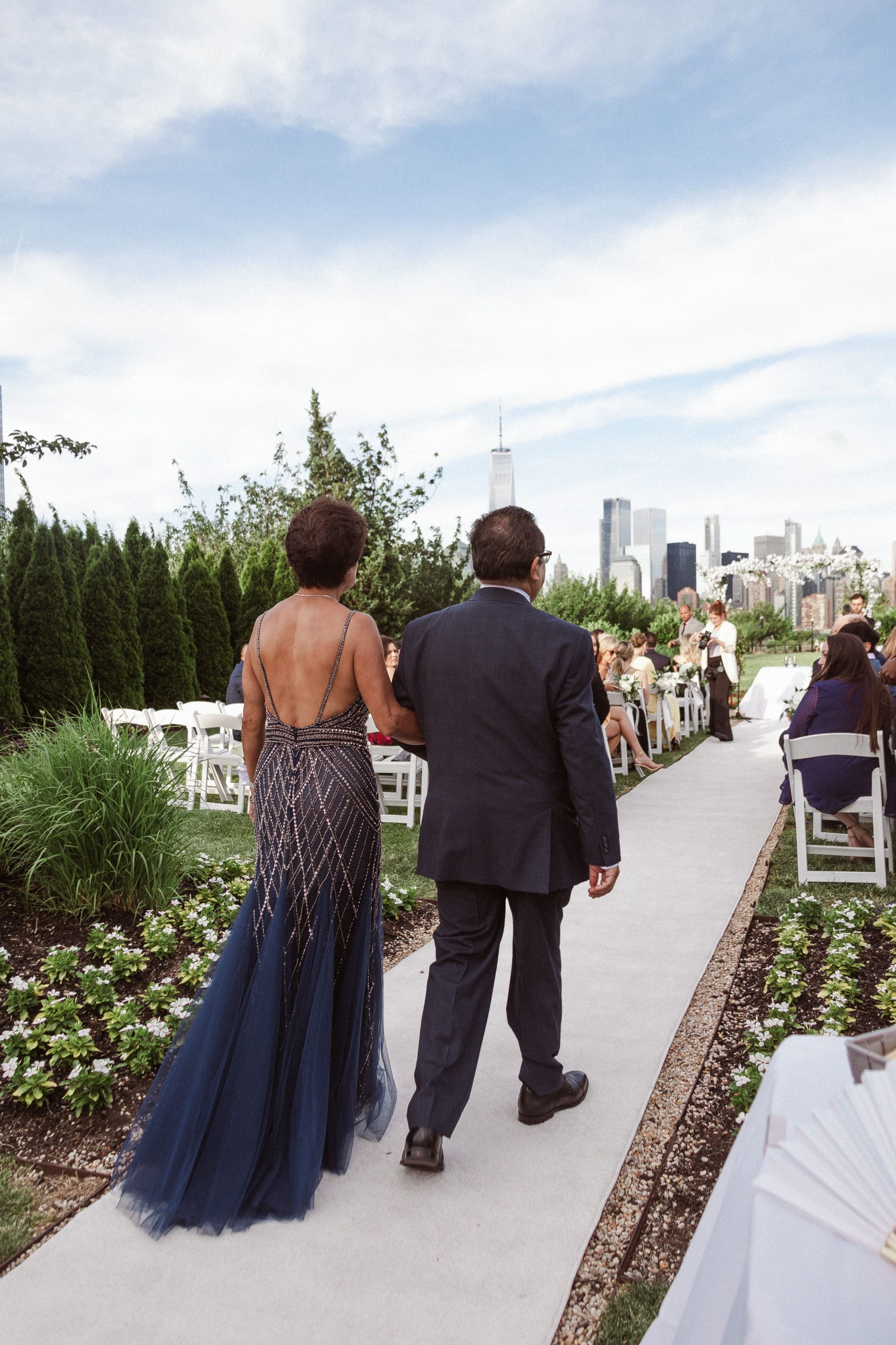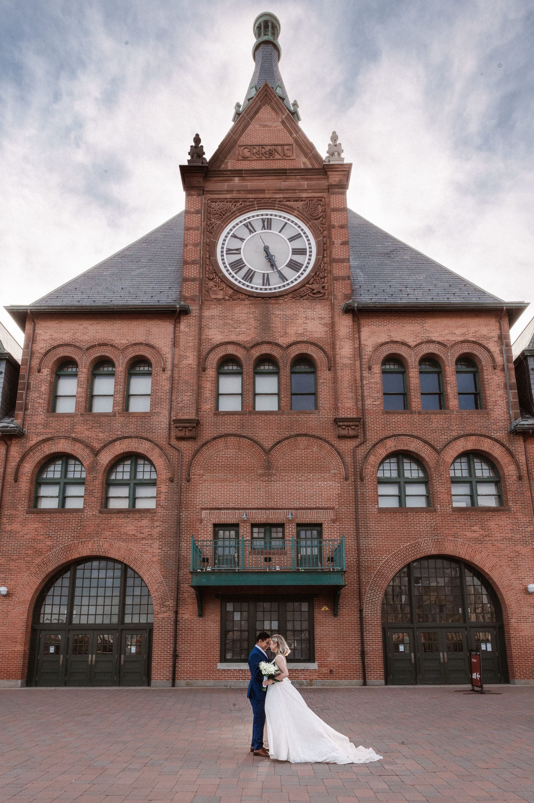 This couple had postponed their wedding three times during the COVID-19 pandemic, and finally got a day to celebrate with about 200 of their friends and family members. My favorite parts of their wedding day were the bride prep first look with dad and witnessing mom crying in the background. I loved the first look of the bride and groom in front of the train station, followed by portraits around the 9/11 memorial in New Jersey. The ceremony was so beautiful, had great weather, and was filled with so much love. Everyone in the aisle wanted to take a photo of the beautiful bride coming down the aisle. As she walked down, even though her husband already saw her before the ceremony, he STILL CRIED!!! Epic. This couple had booked an incredible entertainment company with a DJ, emcee, lighting, ANDÂ a live drummer. INCREDIBLE ENERGY LASTED ALL NIGHT LONG. It just shows in their wedding photos at Liberty House Restaurant, New Jersey.