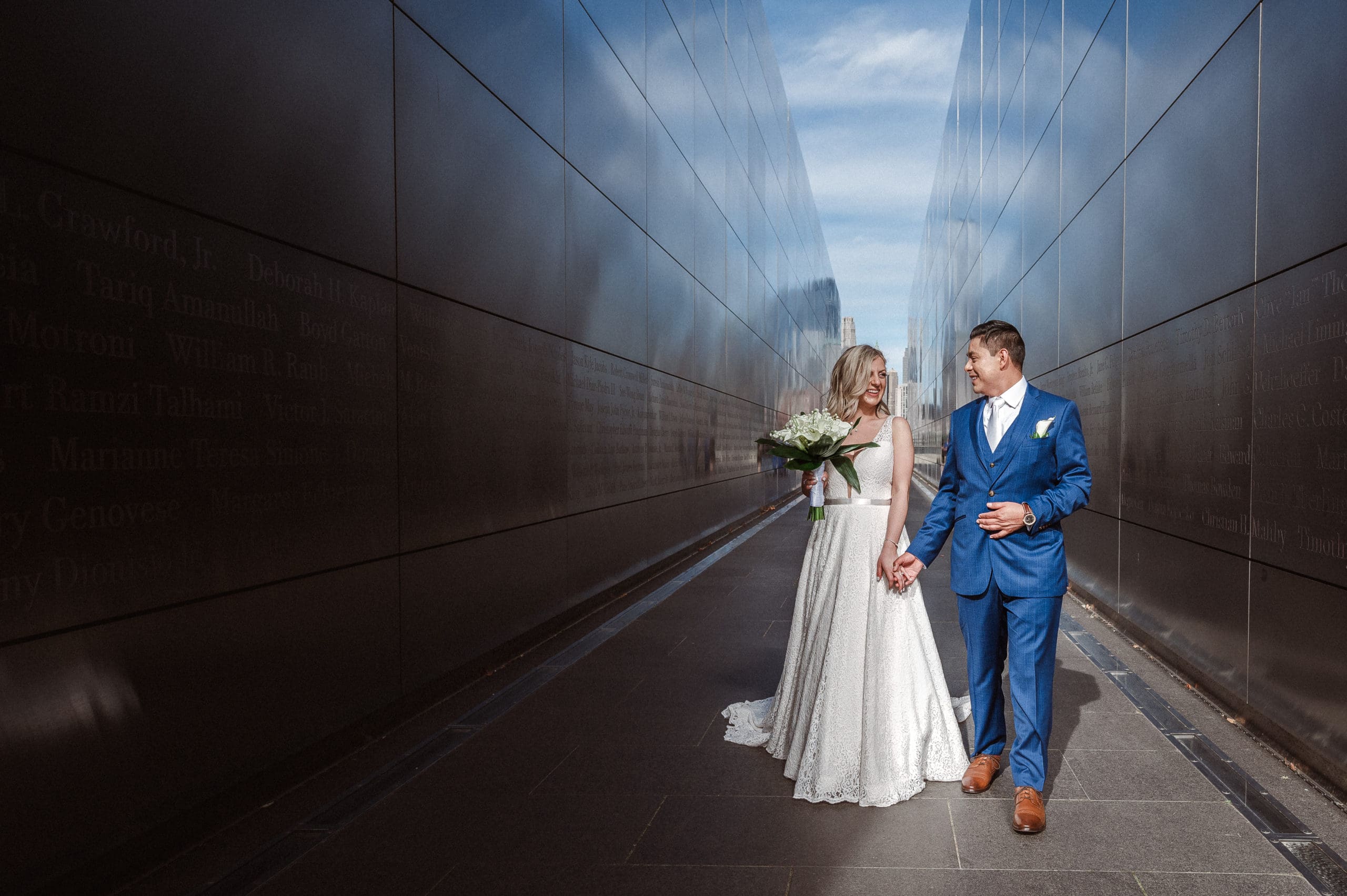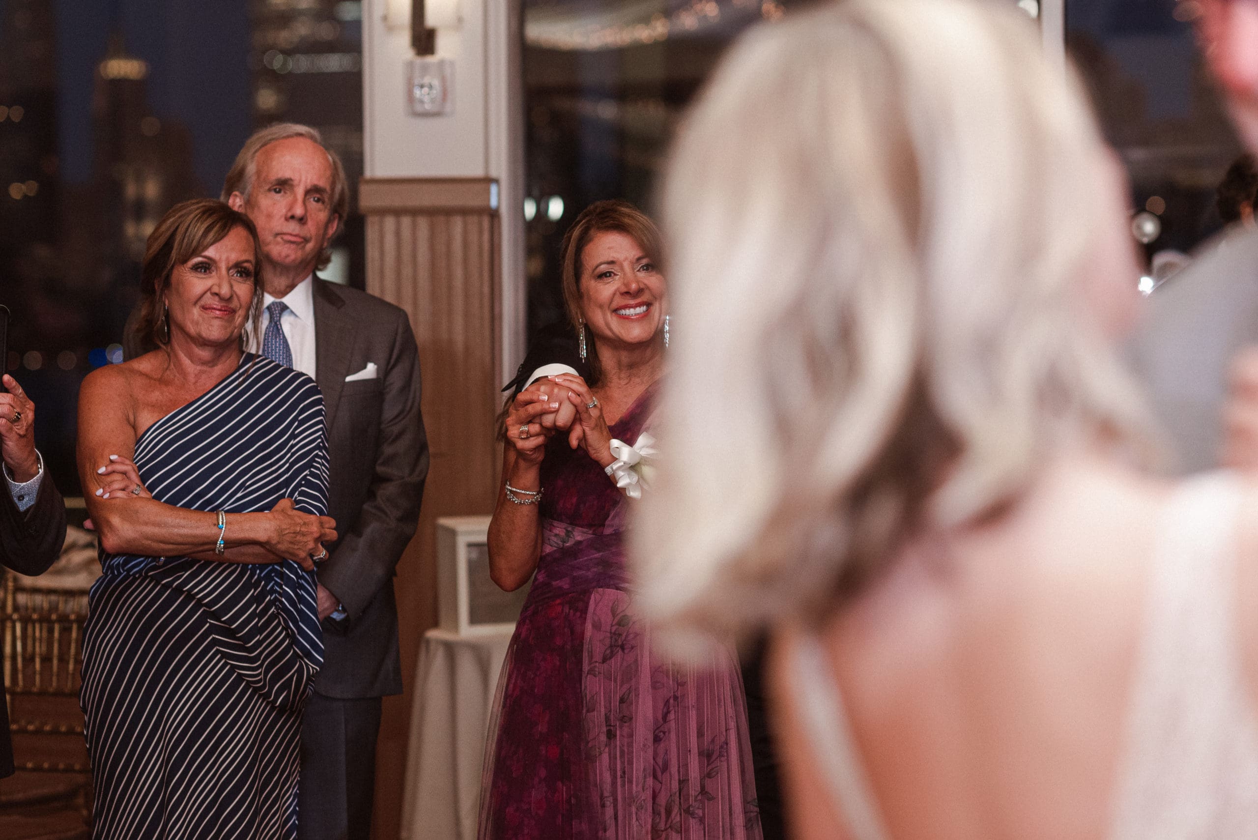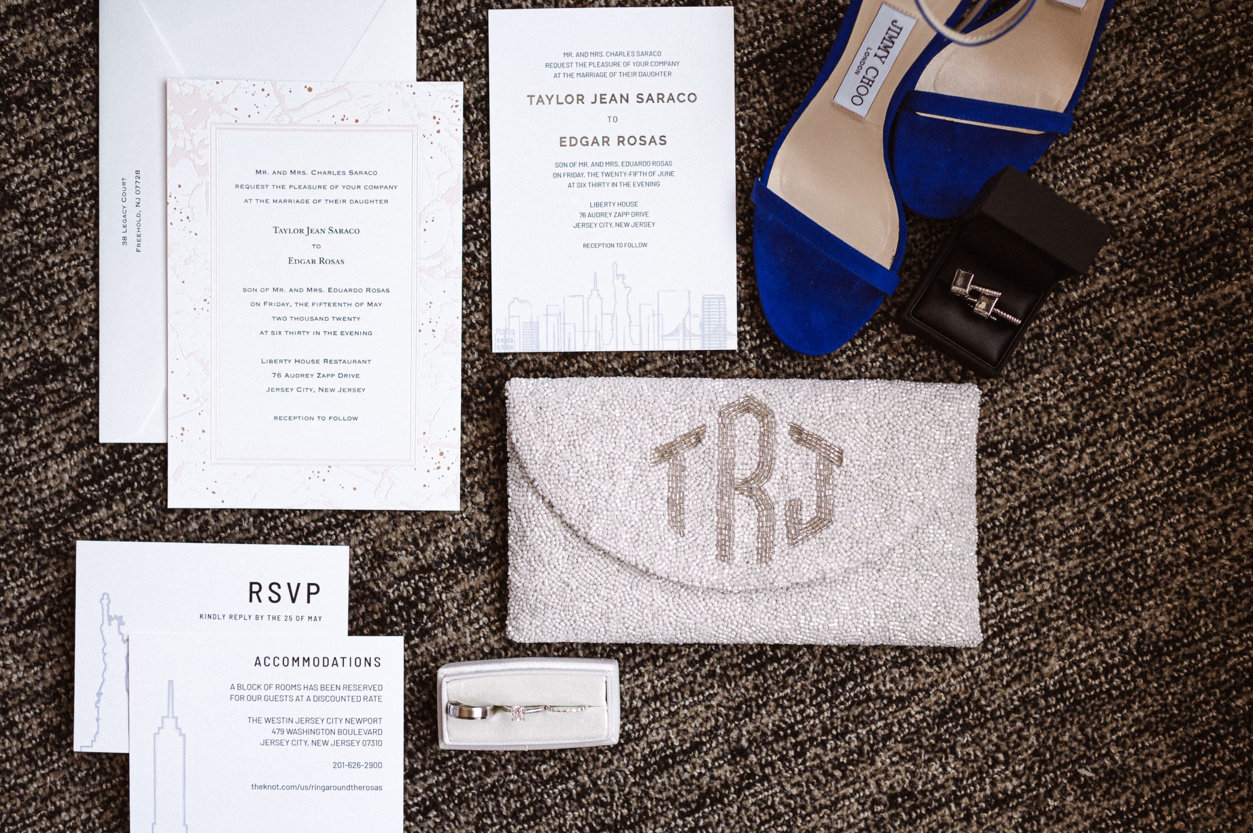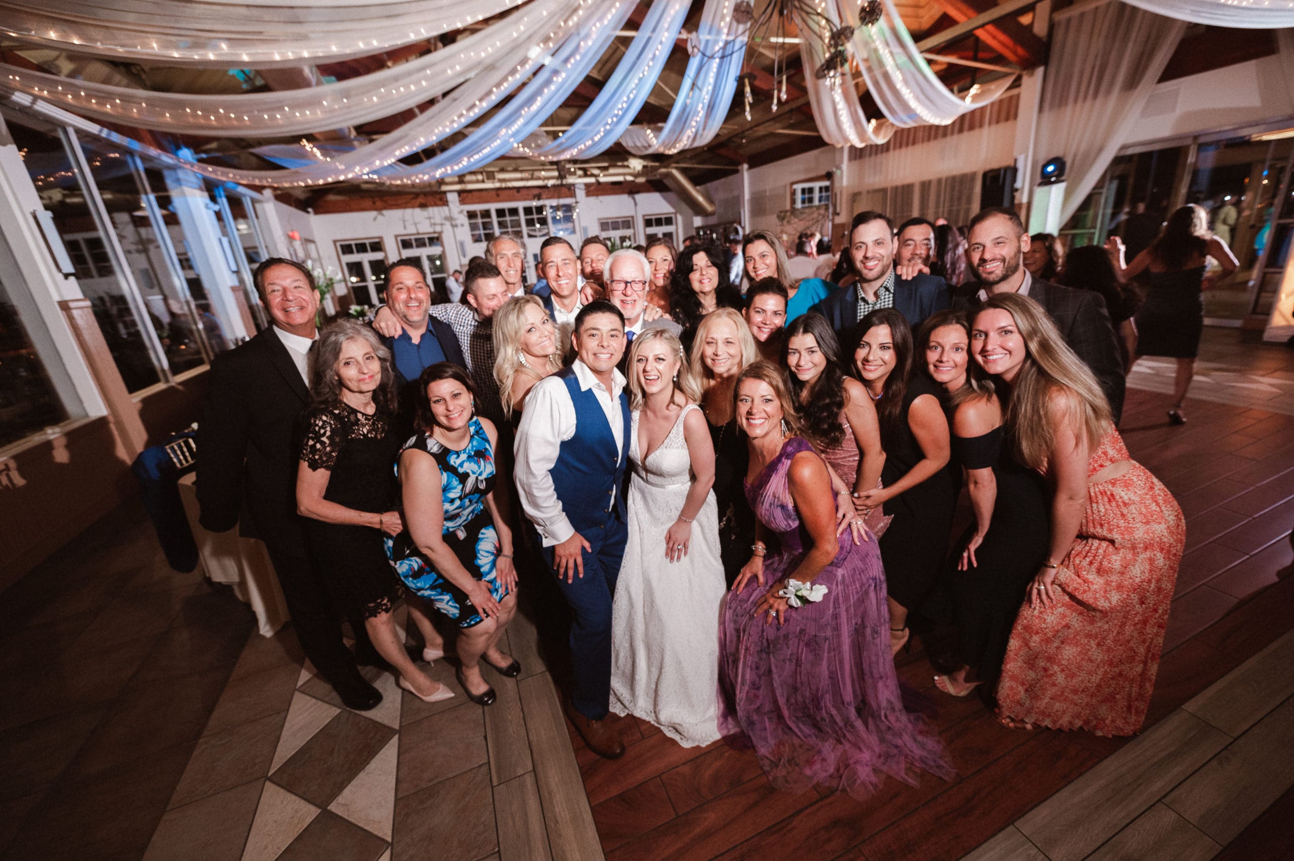This couple had postponed their wedding three times during the COVID-19 pandemic, and finally got a day to celebrate with about 200 of their friends and family members. My favorite parts of their wedding day were the bride prep first look with dad and witnessing mom crying in the background. I loved the first look of the bride and groom in front of the train station, followed by portraits around the 9/11 memorial in New Jersey. The ceremony was so beautiful, had great weather, and was filled with so much love. Everyone in the aisle wanted to take a photo of the beautiful bride coming down the aisle. As she walked down, even though her husband already saw her before the ceremony, he STILL CRIED!!! Epic. This couple had booked an incredible entertainment company with a DJ, emcee, lighting, ANDÂ a live drummer. INCREDIBLE ENERGY LASTED ALL NIGHT LONG. It just shows in their wedding photos at Liberty House Restaurant, New Jersey.