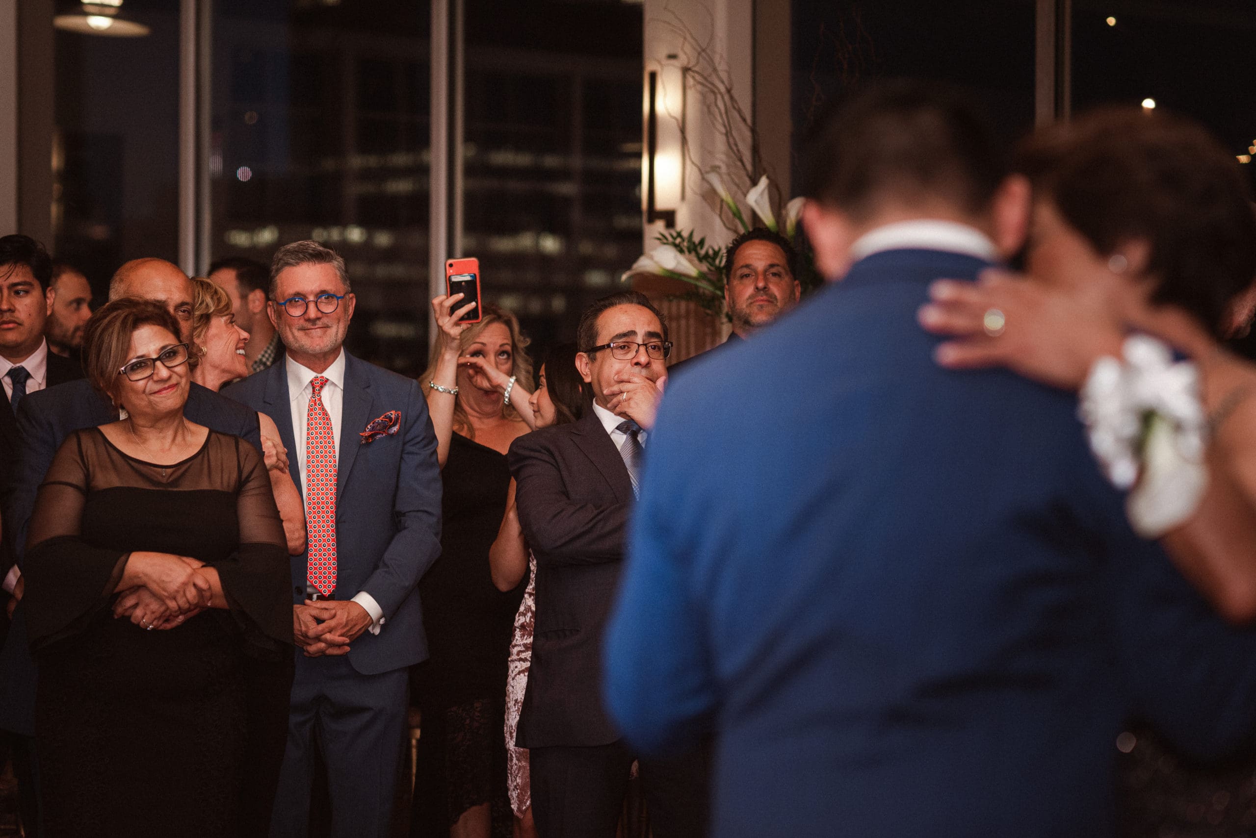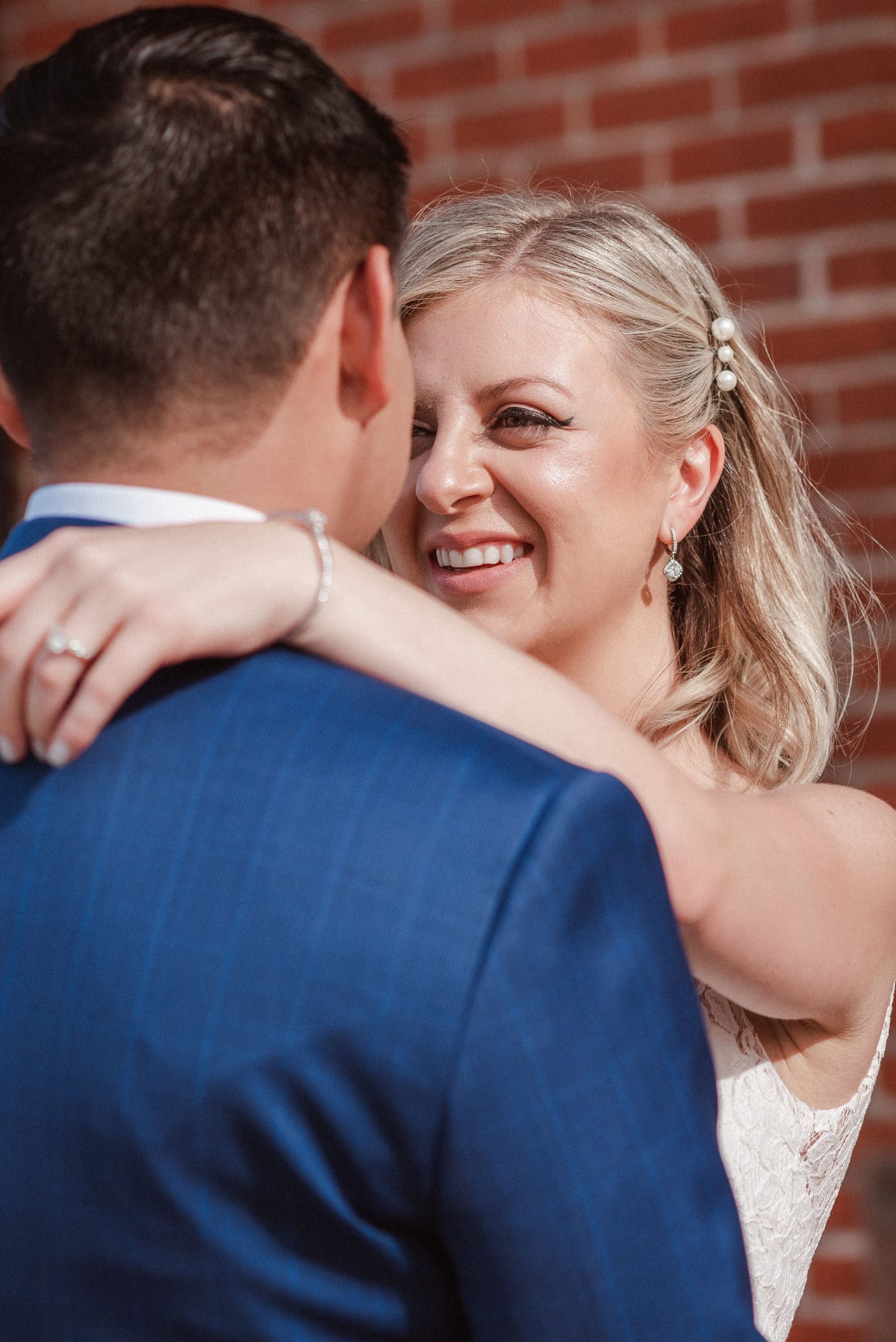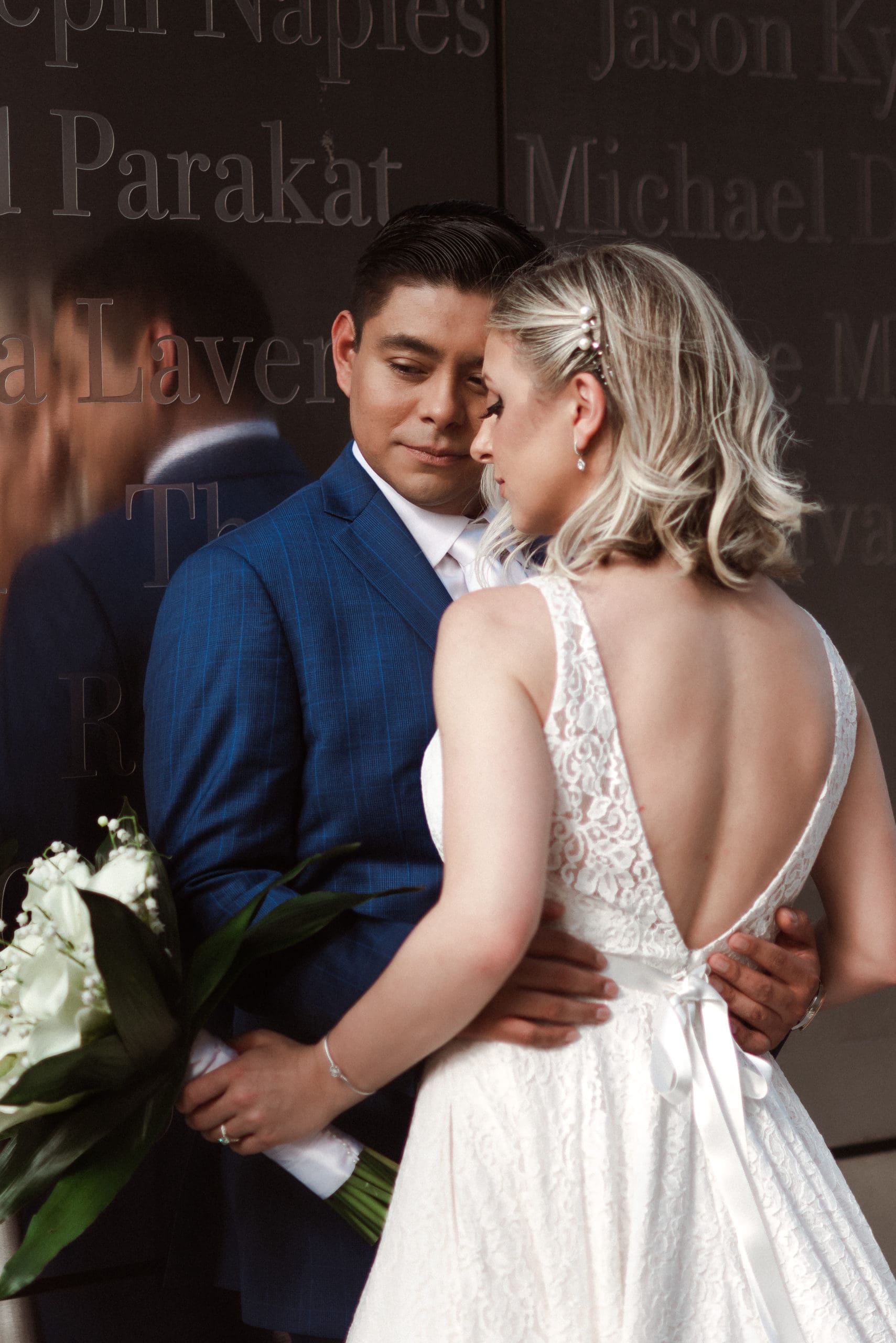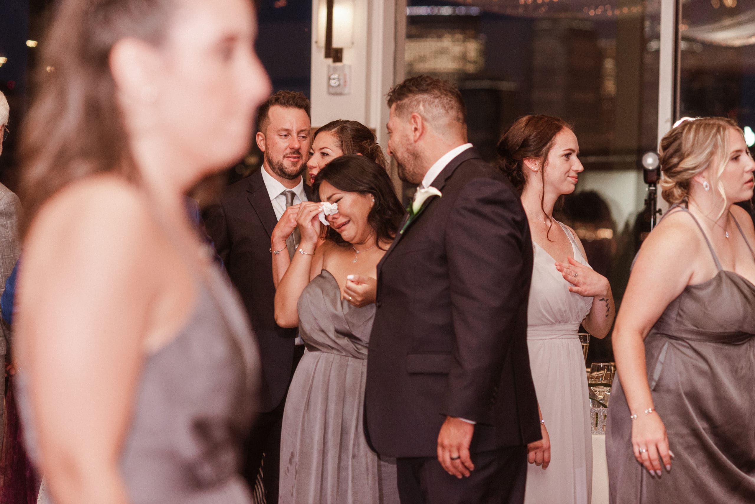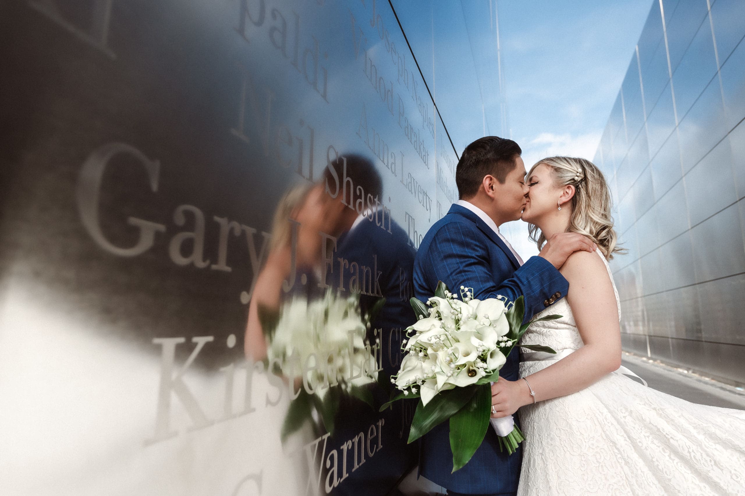 This couple had postponed their wedding three times during the COVID-19 pandemic, and finally got a day to celebrate with about 200 of their friends and family members. My favorite parts of their wedding day were the bride prep first look with dad and witnessing mom crying in the background. I loved the first look of the bride and groom in front of the train station, followed by portraits around the 9/11 memorial in New Jersey. The ceremony was so beautiful, had great weather, and was filled with so much love. Everyone in the aisle wanted to take a photo of the beautiful bride coming down the aisle. As she walked down, even though her husband already saw her before the ceremony, he STILL CRIED!!! Epic. This couple had booked an incredible entertainment company with a DJ, emcee, lighting, ANDÂ a live drummer. INCREDIBLE ENERGY LASTED ALL NIGHT LONG. It just shows in their wedding photos at Liberty House Restaurant, New Jersey.
