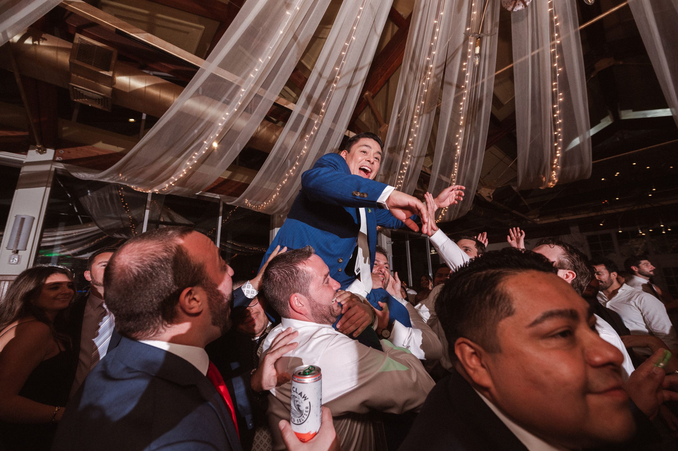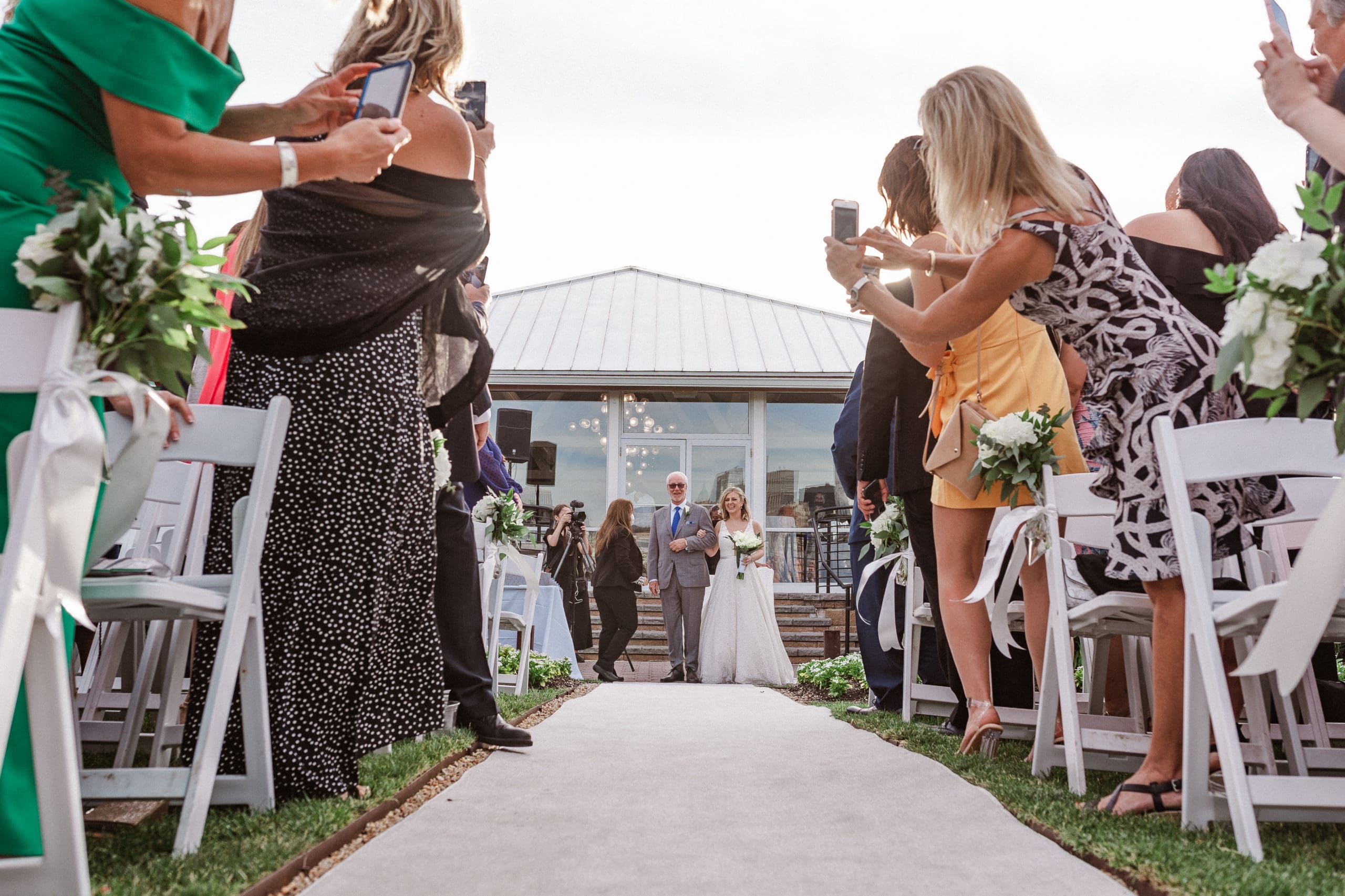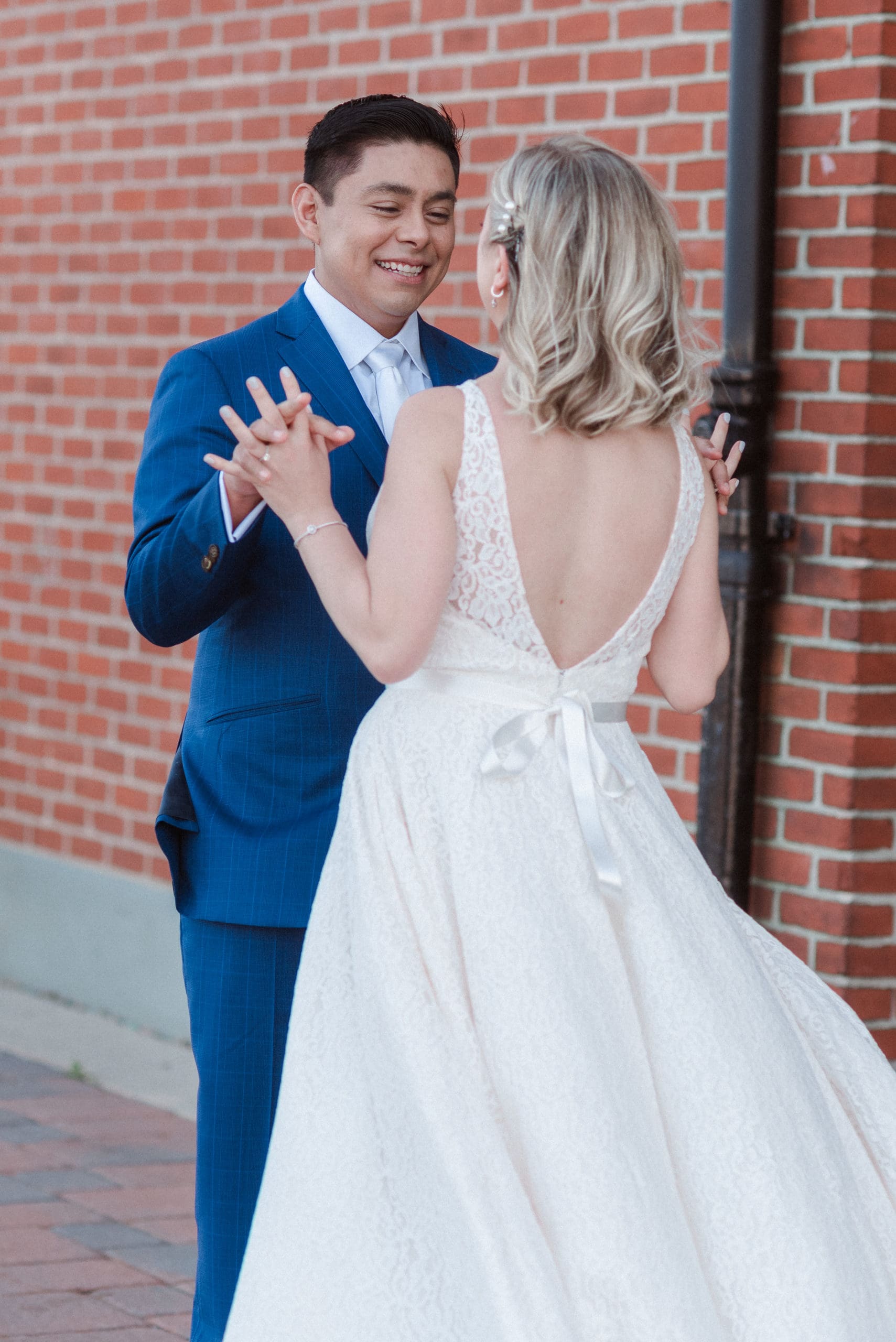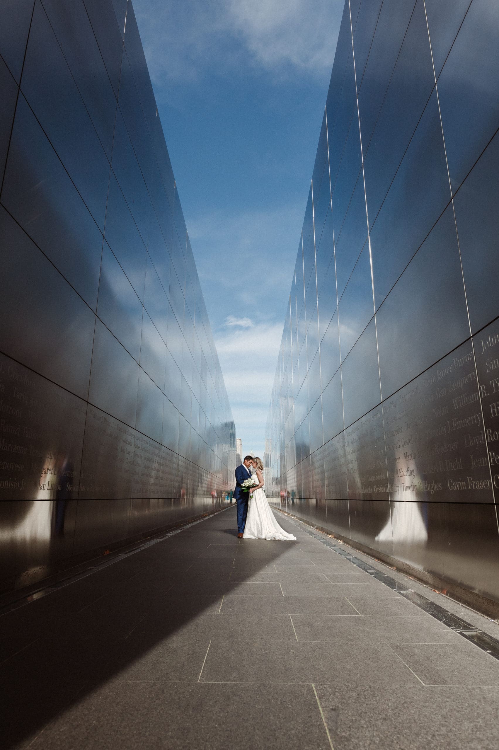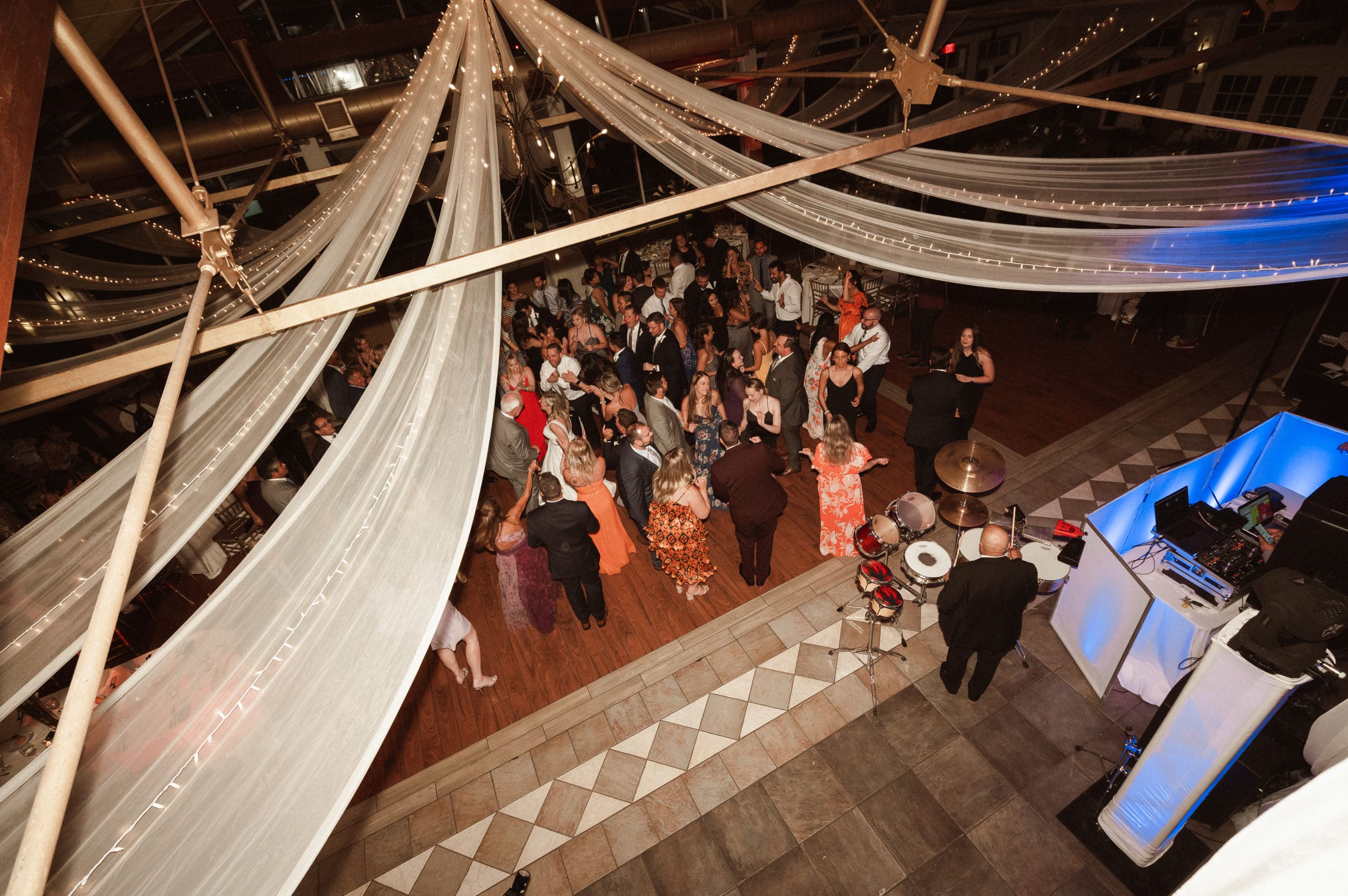 This couple had postponed their wedding three times during the COVID-19 pandemic, and finally got a day to celebrate with about 200 of their friends and family members. My favorite parts of their wedding day were the bride prep first look with dad and witnessing mom crying in the background. I loved the first look of the bride and groom in front of the train station, followed by portraits around the 9/11 memorial in New Jersey. The ceremony was so beautiful, had great weather, and was filled with so much love. Everyone in the aisle wanted to take a photo of the beautiful bride coming down the aisle. As she walked down, even though her husband already saw her before the ceremony, he STILL CRIED!!! Epic. This couple had booked an incredible entertainment company with a DJ, emcee, lighting, ANDÂ a live drummer. INCREDIBLE ENERGY LASTED ALL NIGHT LONG. It just shows in their wedding photos at Liberty House Restaurant, New Jersey.