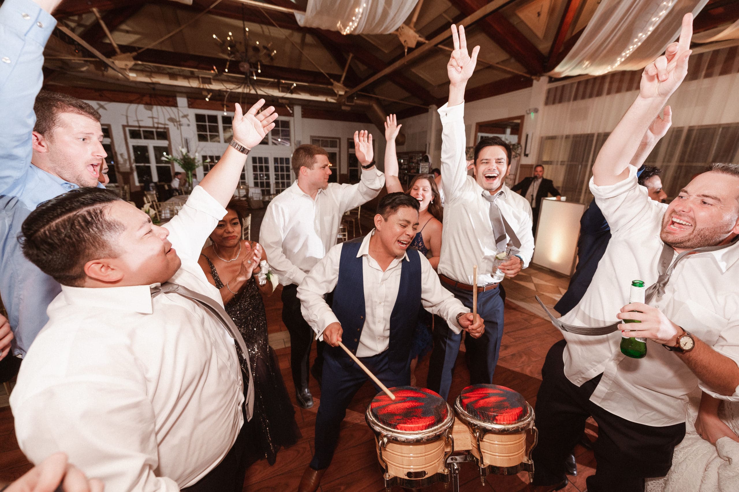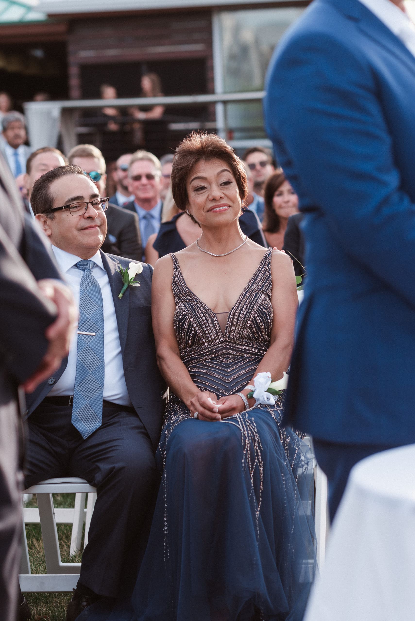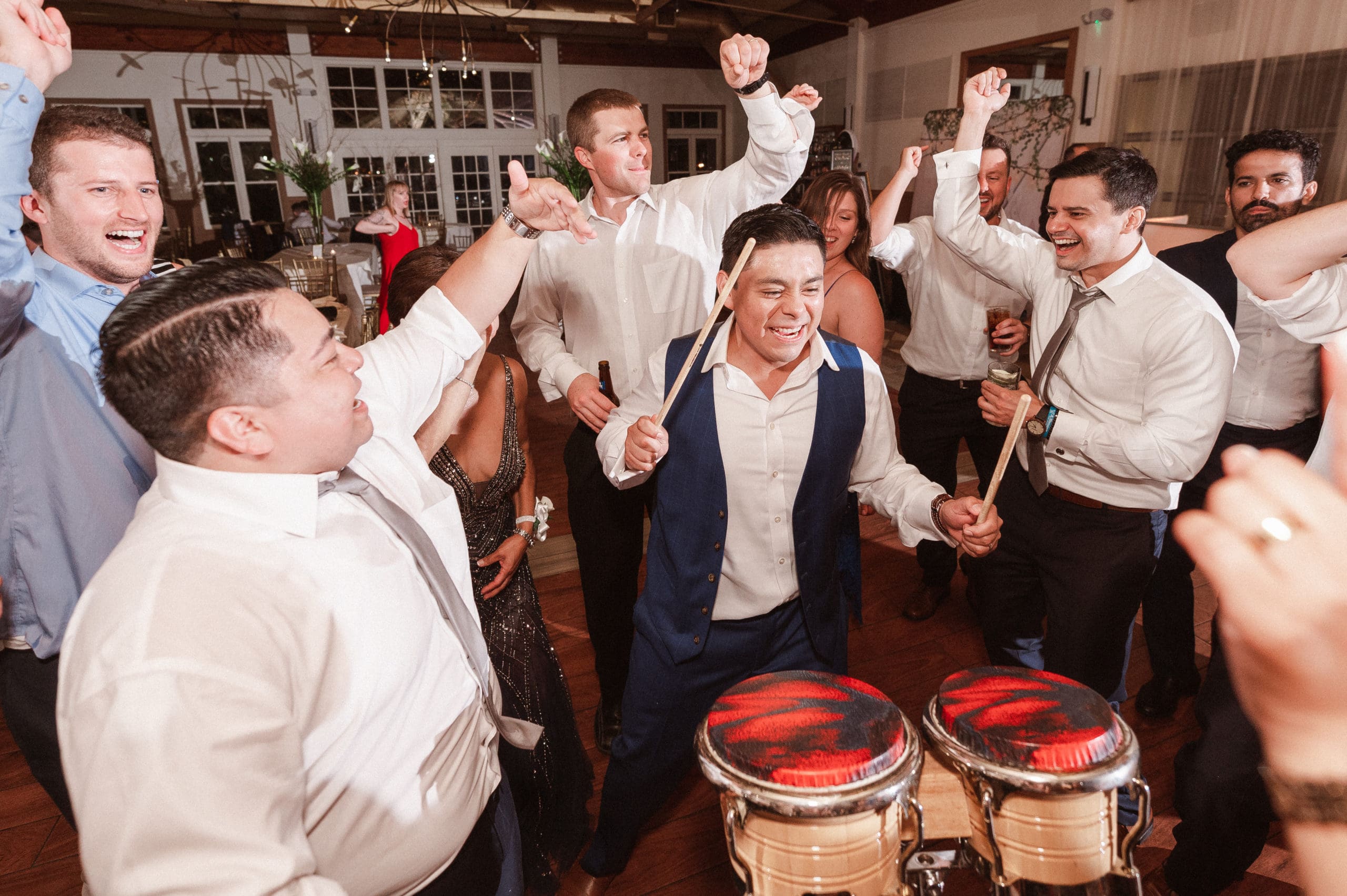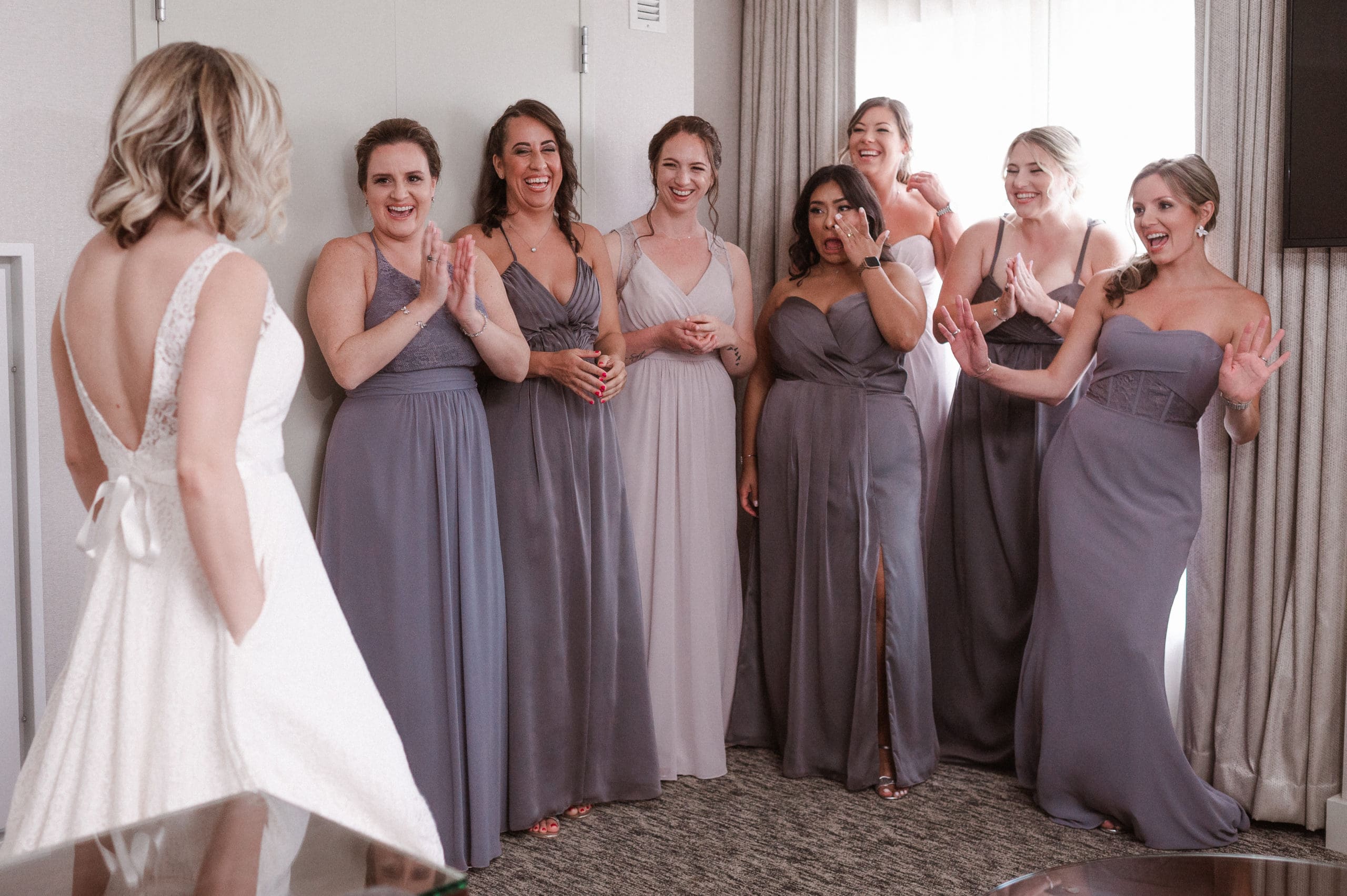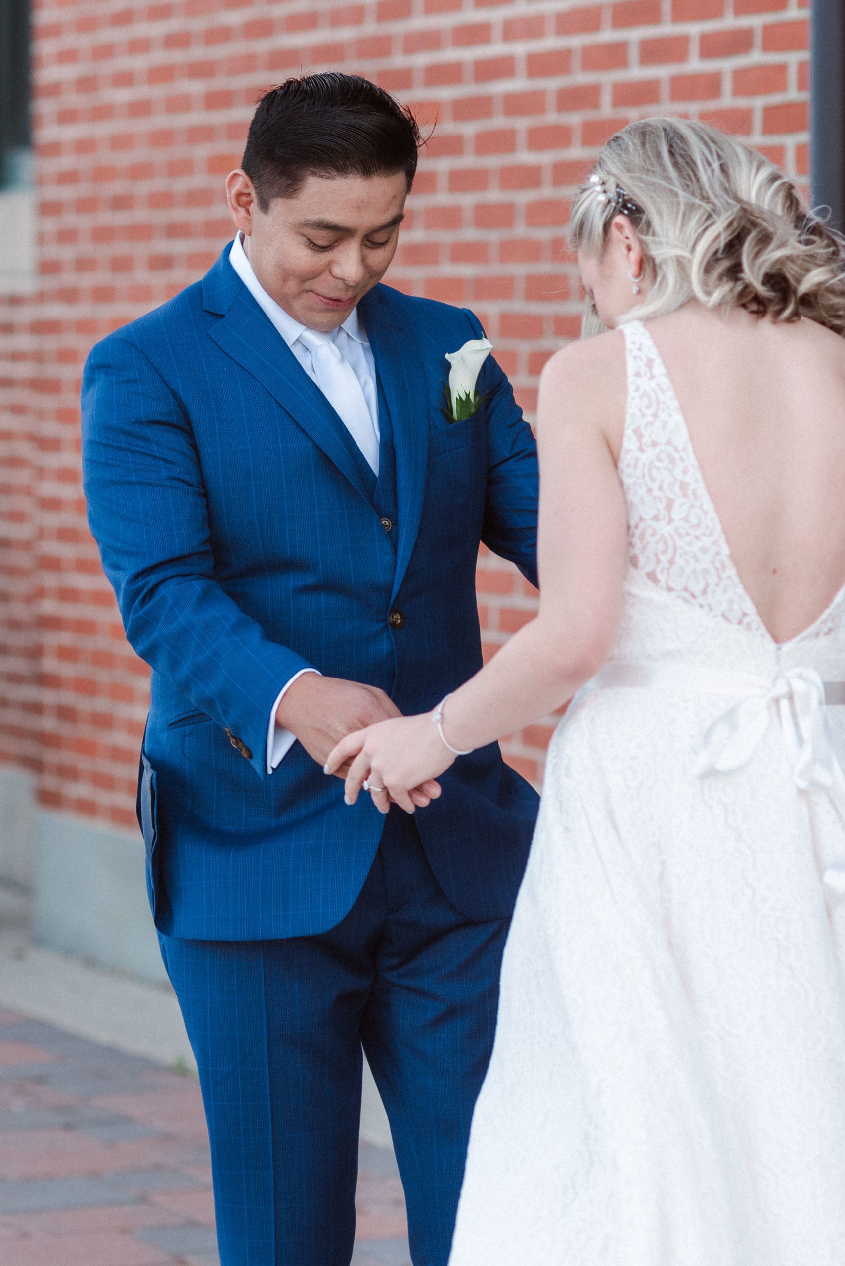This couple had postponed their wedding three times during the COVID-19 pandemic, and finally got a day to celebrate with about 200 of their friends and family members. My favorite parts of their wedding day were the bride prep first look with dad and witnessing mom crying in the background. I loved the first look of the bride and groom in front of the train station, followed by portraits around the 9/11 memorial in New Jersey. The ceremony was so beautiful, had great weather, and was filled with so much love. Everyone in the aisle wanted to take a photo of the beautiful bride coming down the aisle. As she walked down, even though her husband already saw her before the ceremony, he STILL CRIED!!! Epic. This couple had booked an incredible entertainment company with a DJ, emcee, lighting, ANDÂ a live drummer. INCREDIBLE ENERGY LASTED ALL NIGHT LONG. It just shows in their wedding photos at Liberty House Restaurant, New Jersey.