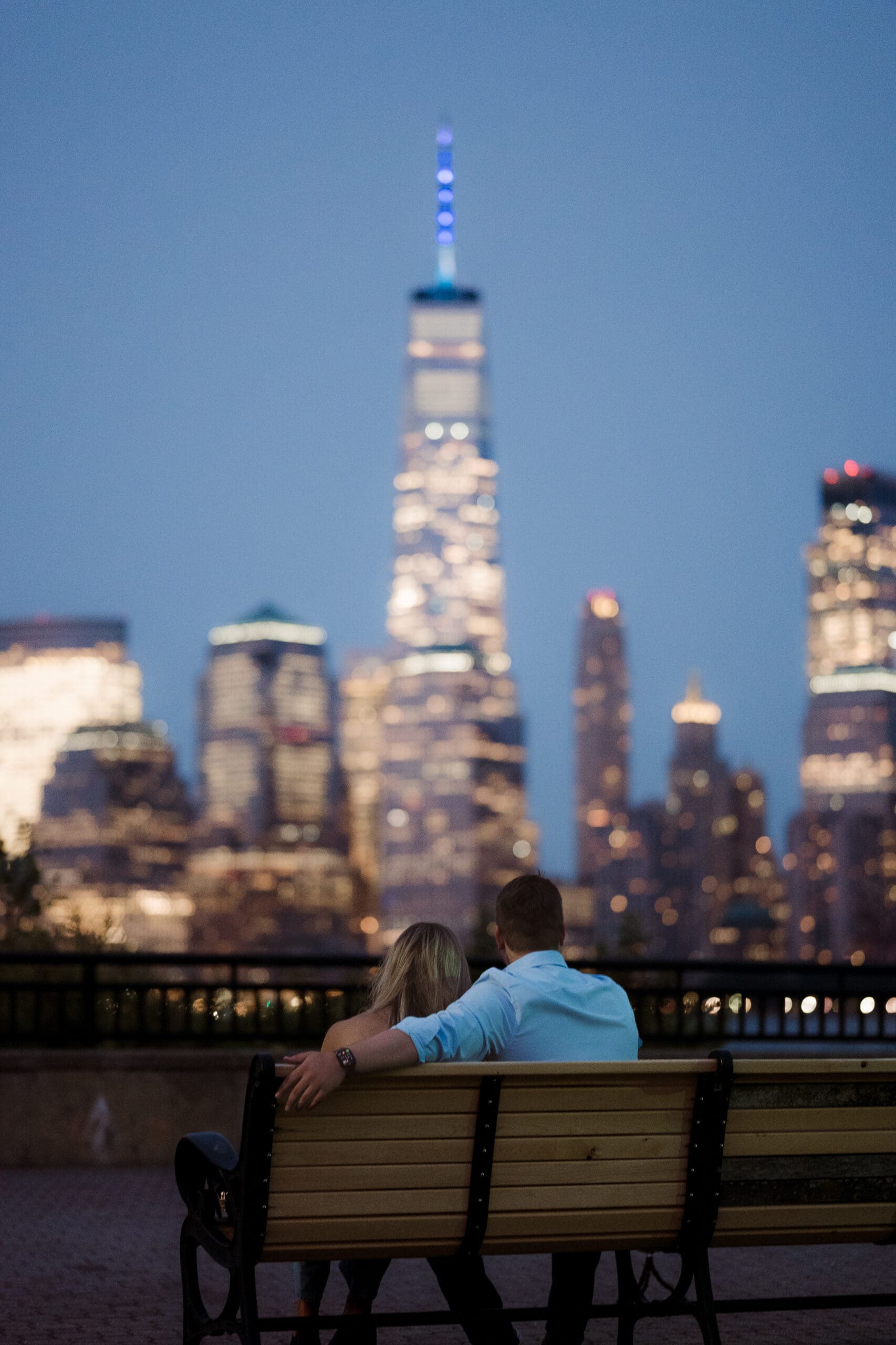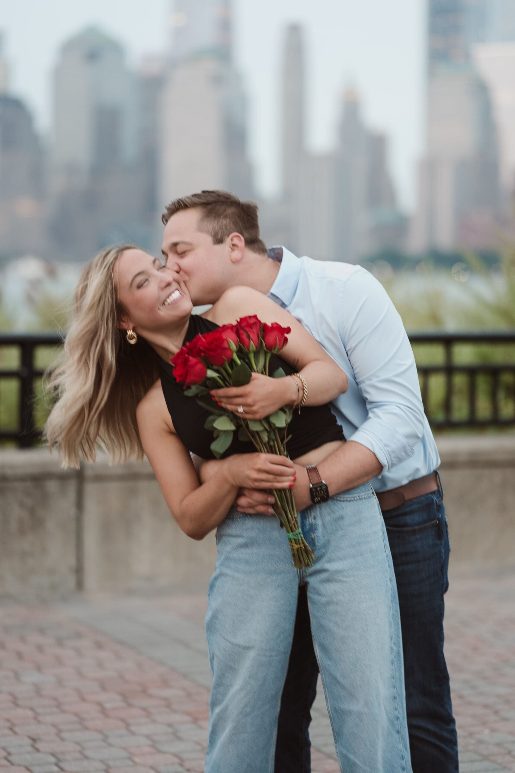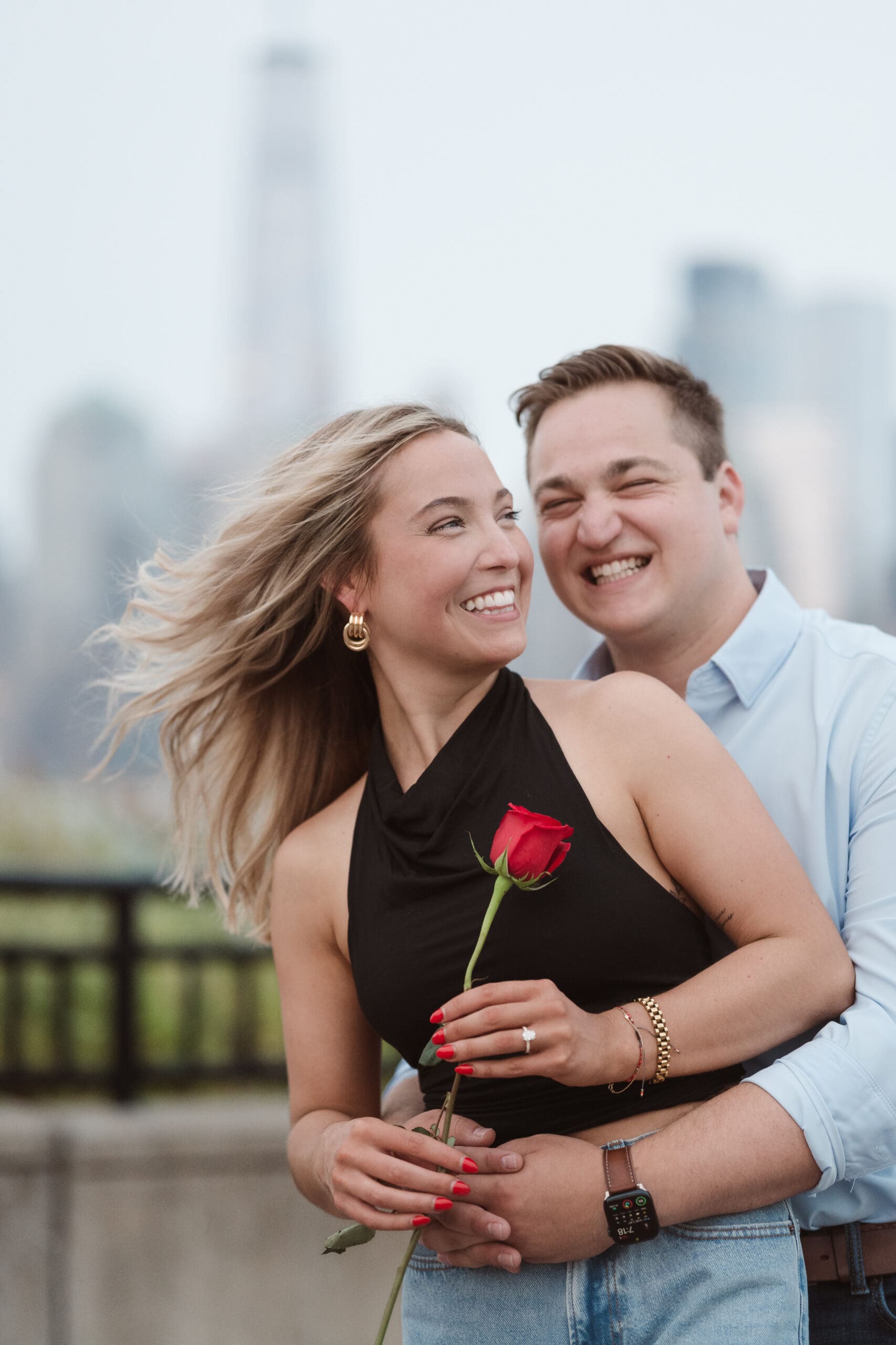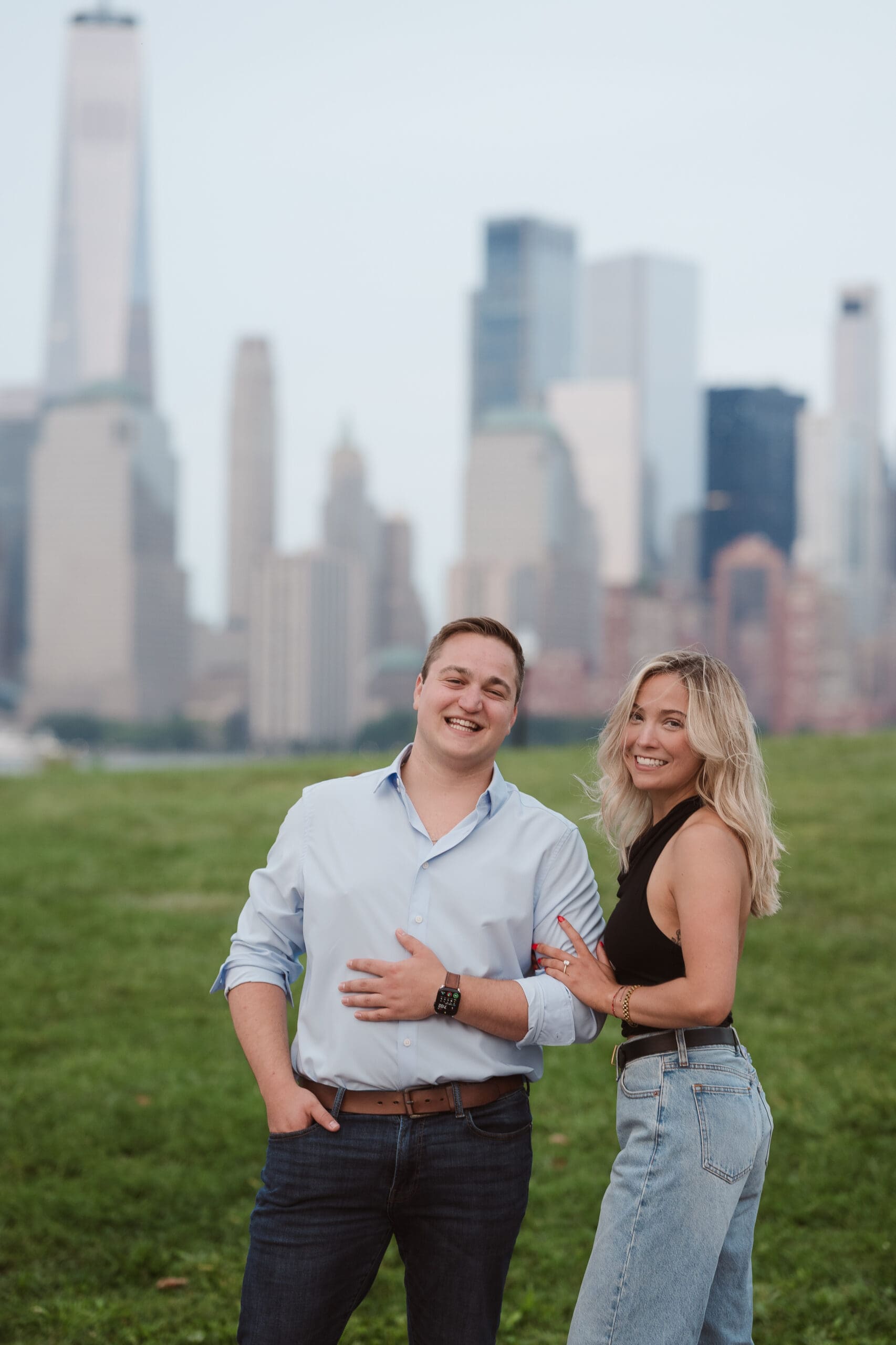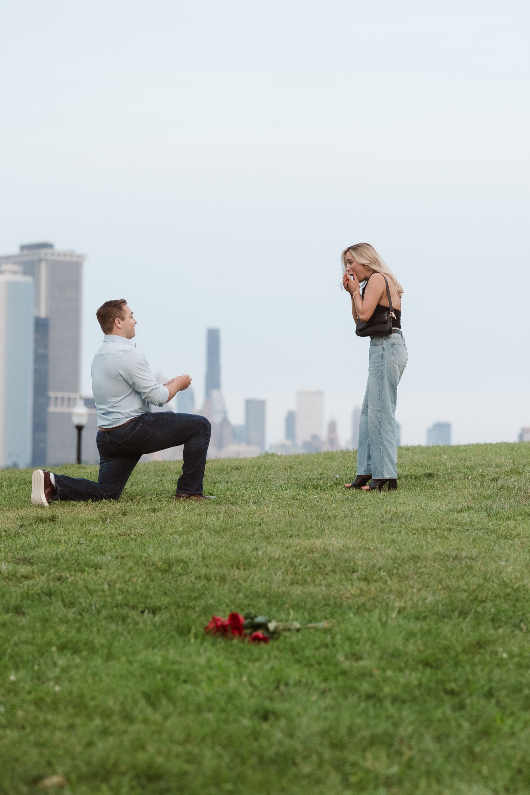 A collection of romantic proposal photos with an epic NYC skyline at Liberty State Park in Jersey City!