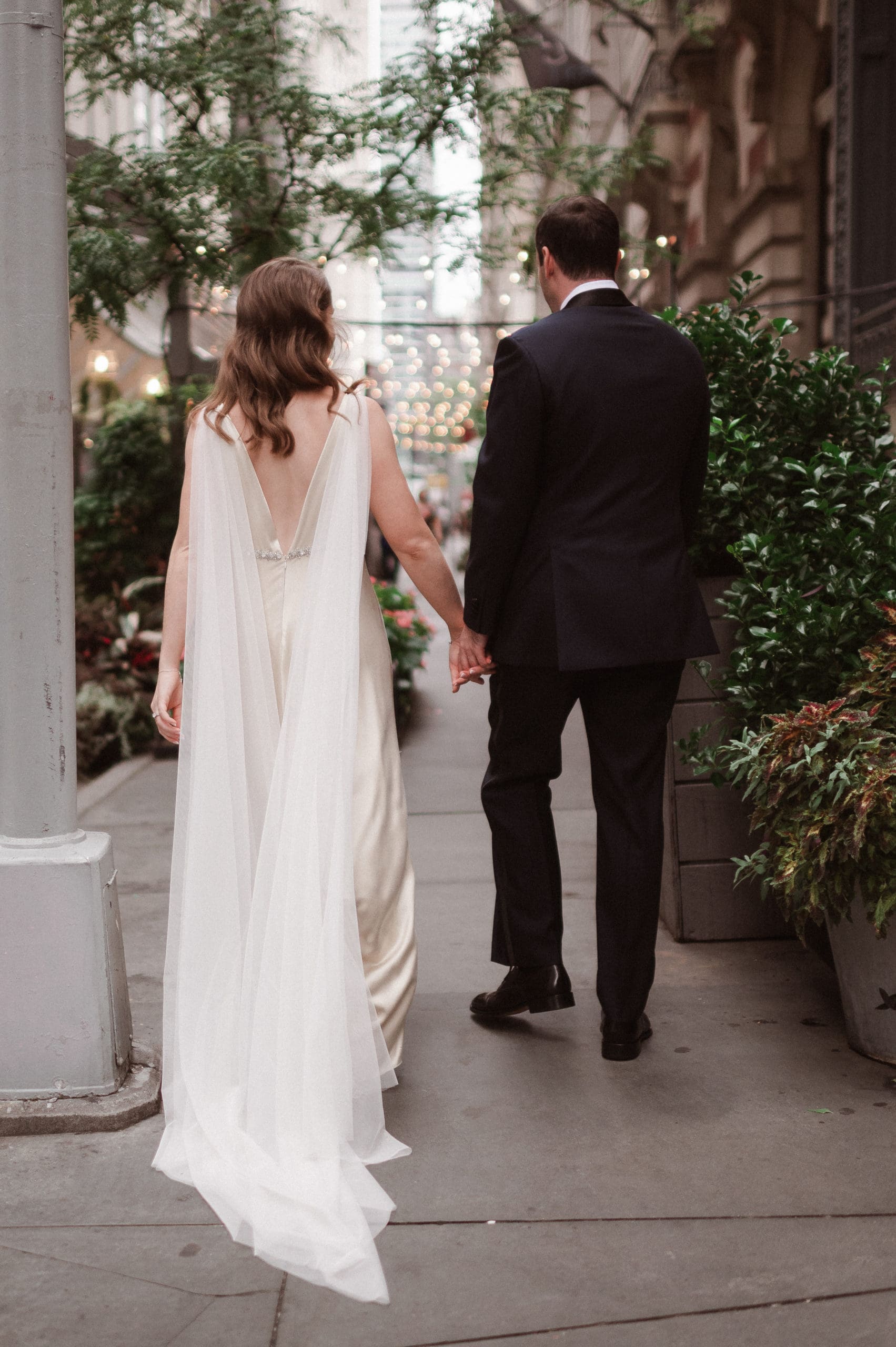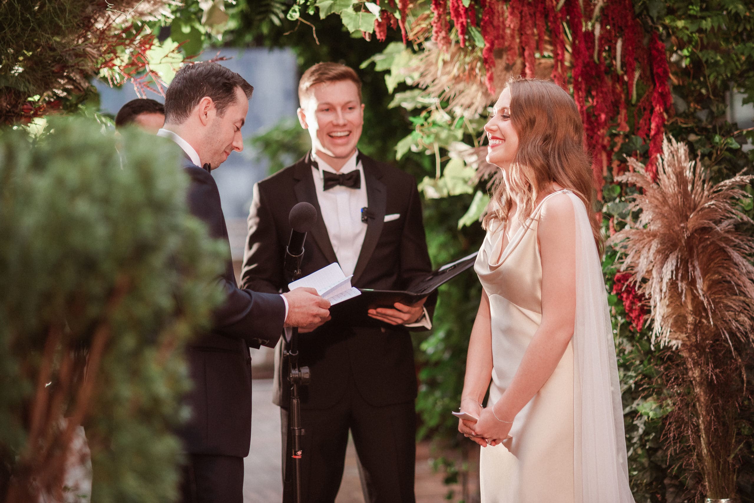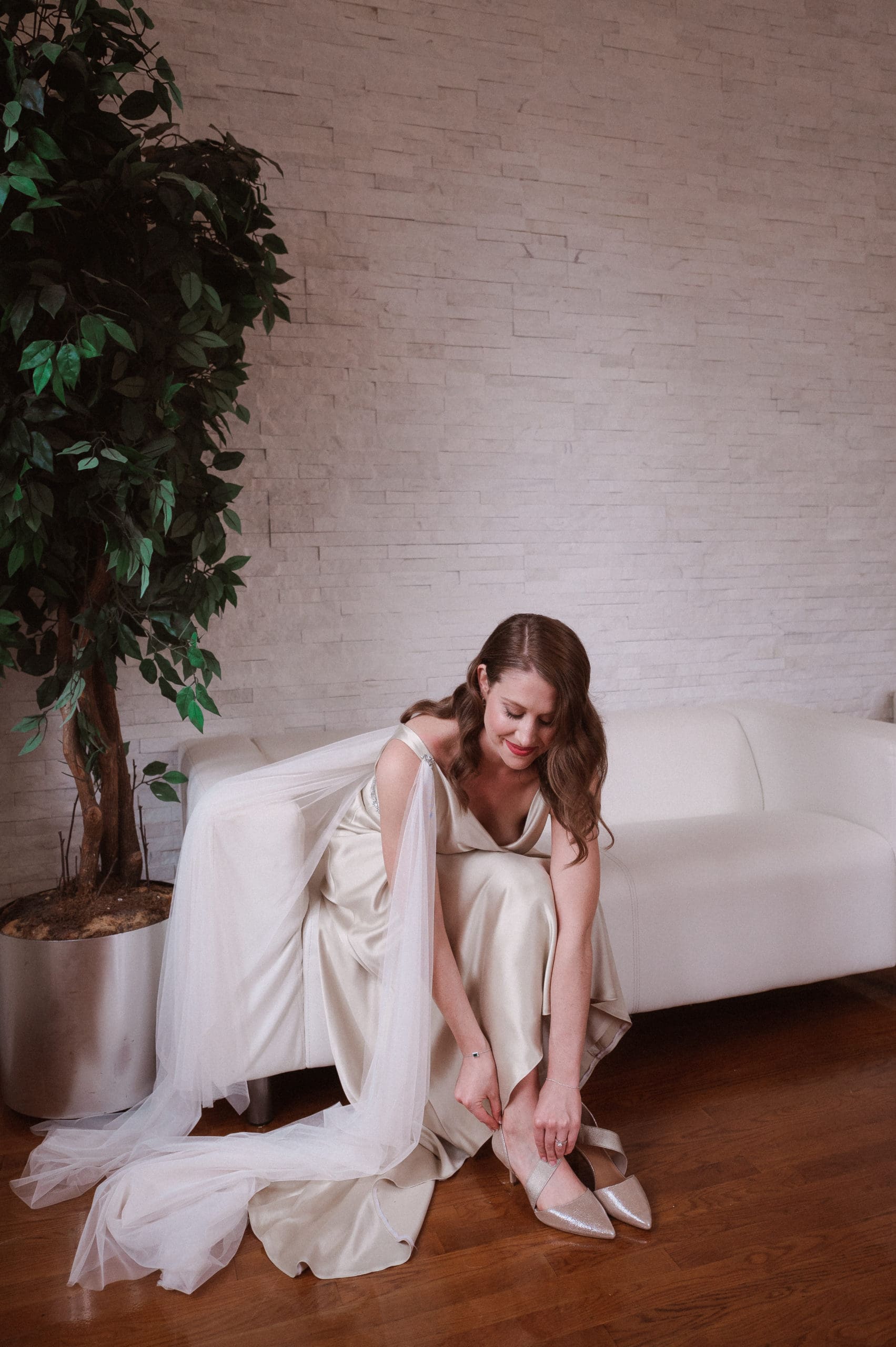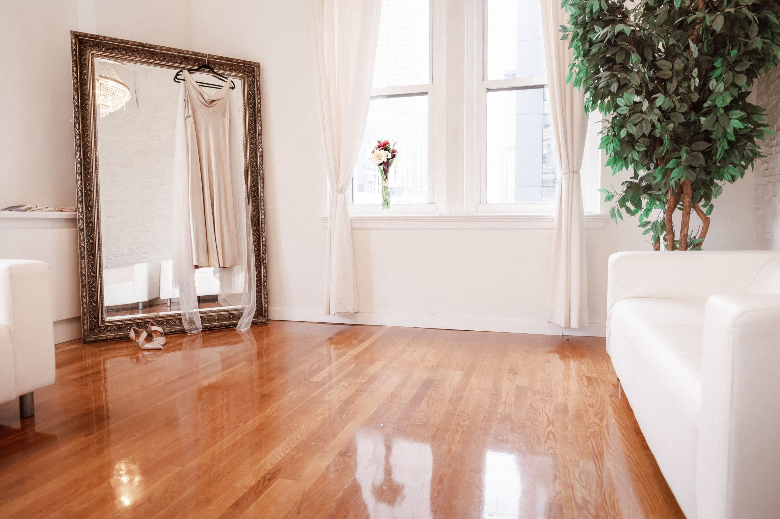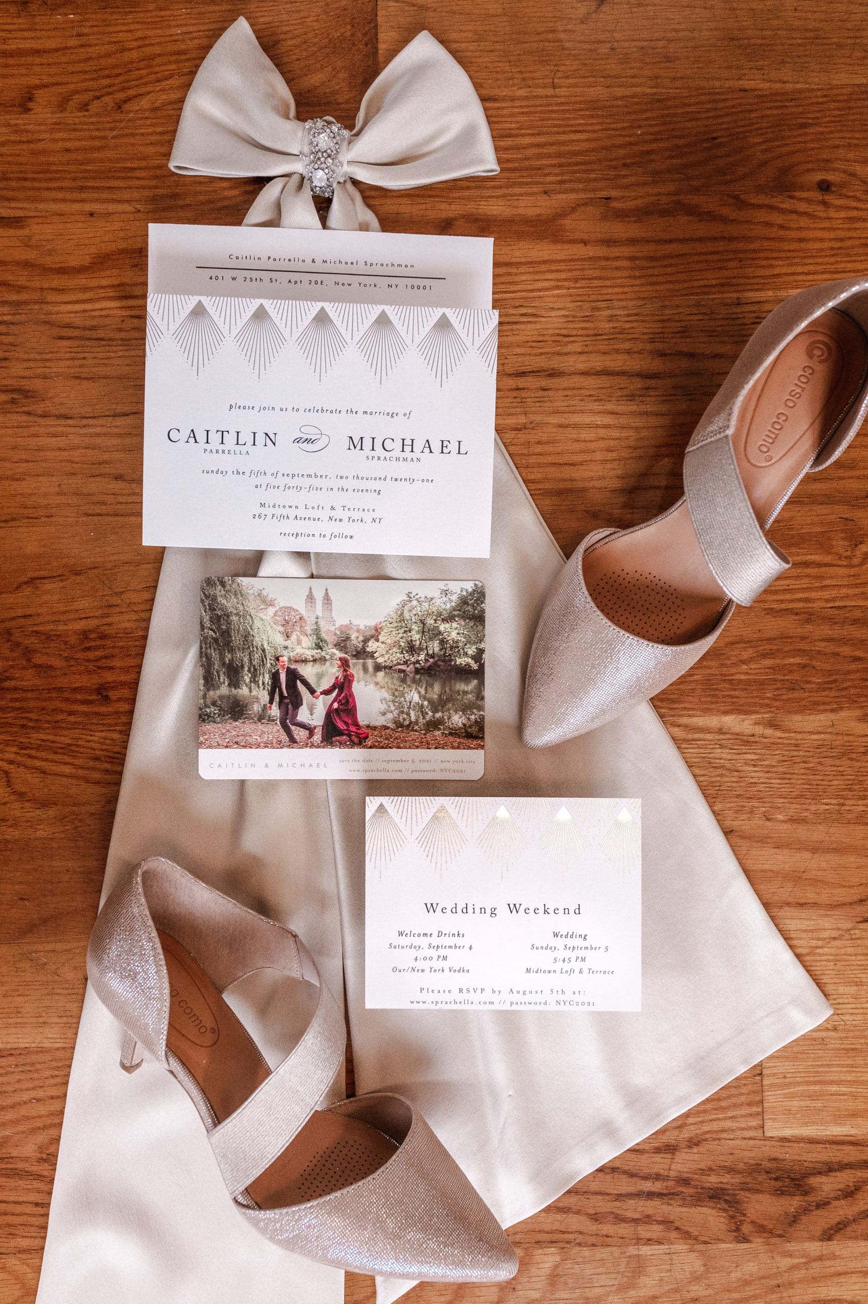 A collection of wedding photos at Midtown Loft and Terrace in Manhattan (NYC). The wedding took place in September, the weather was cooperating and we worked well around the foot traffic during the portrait sessions around 5th avenue. I loved how at this wedding, this couple did not stick with traditional things. Like, the bride wore a custom beautiful satin-textured champagne color dress by @designerloft_Bridal . There’s more about this day I loved, like how they invited their fur baby, Pickles, for photos! The wedding took place all at one location, which made the guests’/vendors lives easier so there’s no need to commute around NYC in order to get to the next location on time. I also loved the fact that they wrote vows and brought engraved 2020 wedding decorations/magnum champagne bottles to incorporate in their 2nd wedding date in 2021.