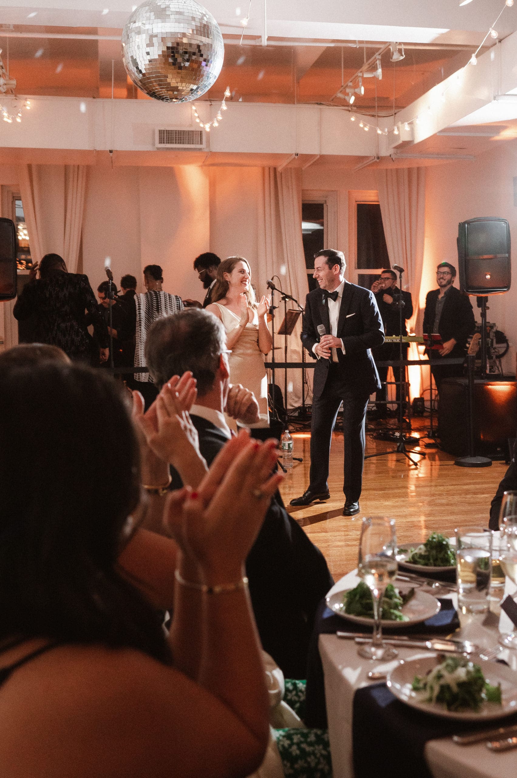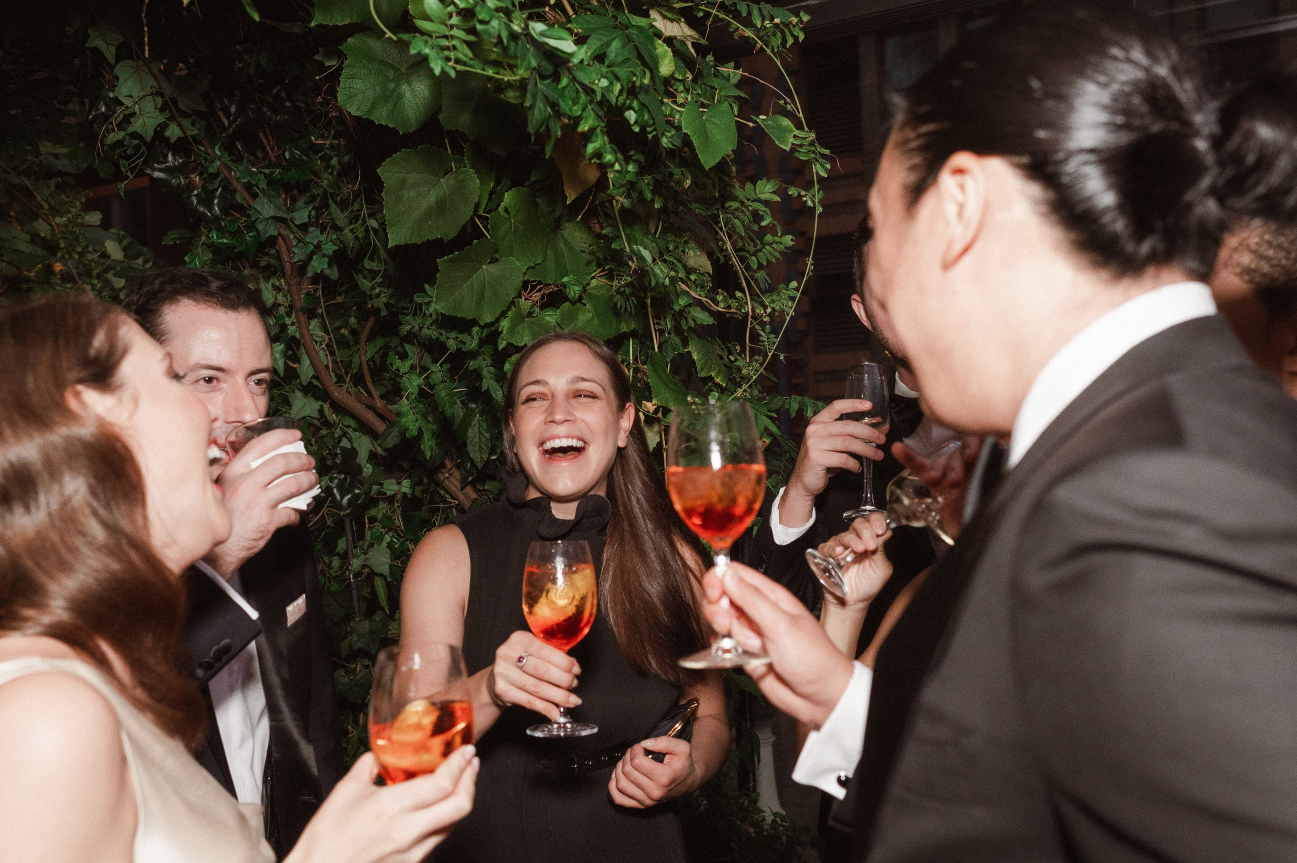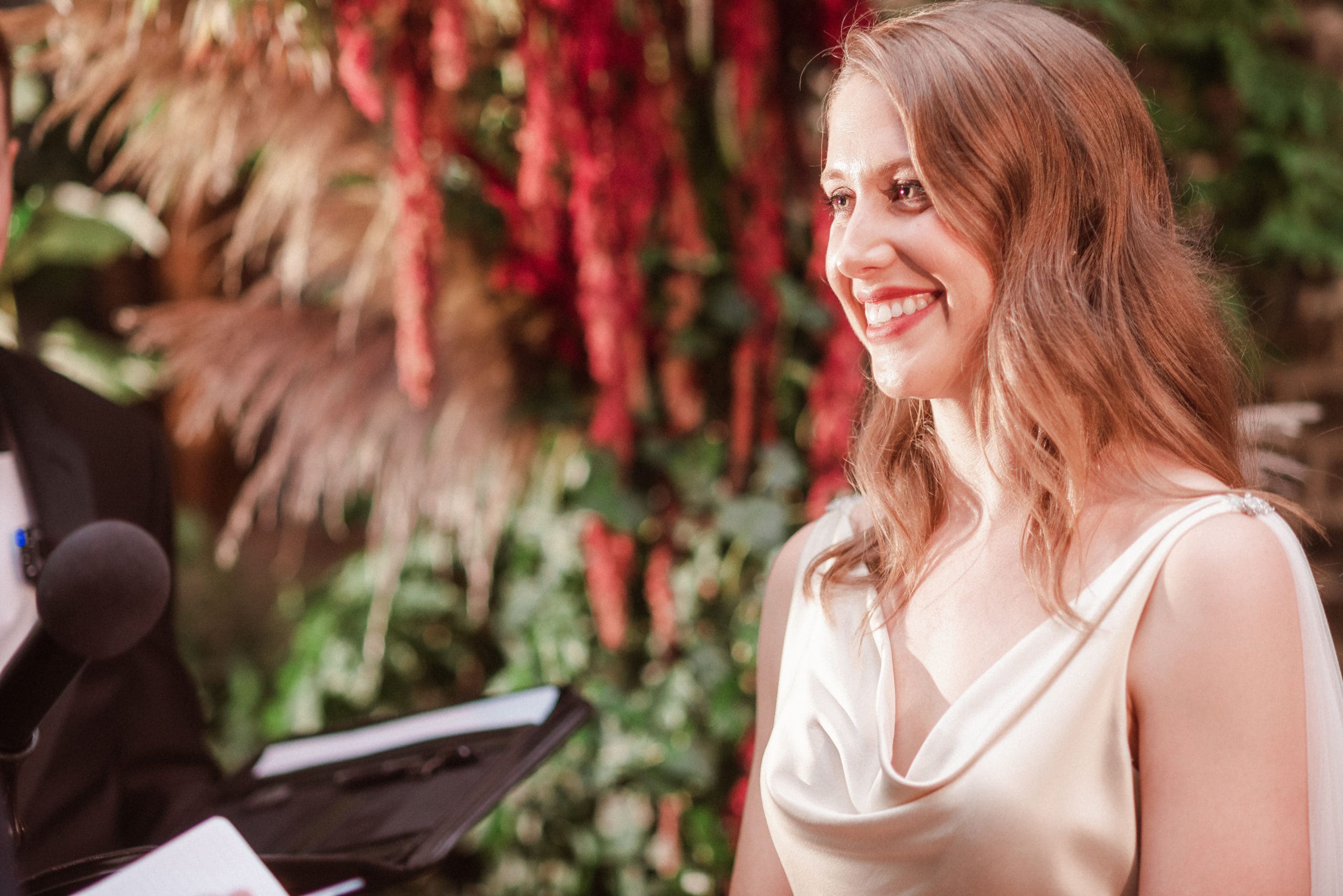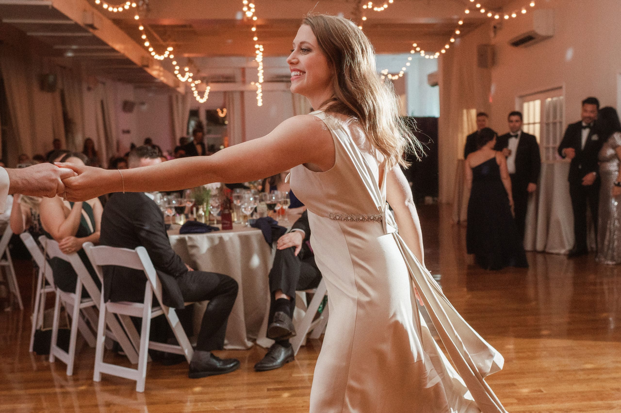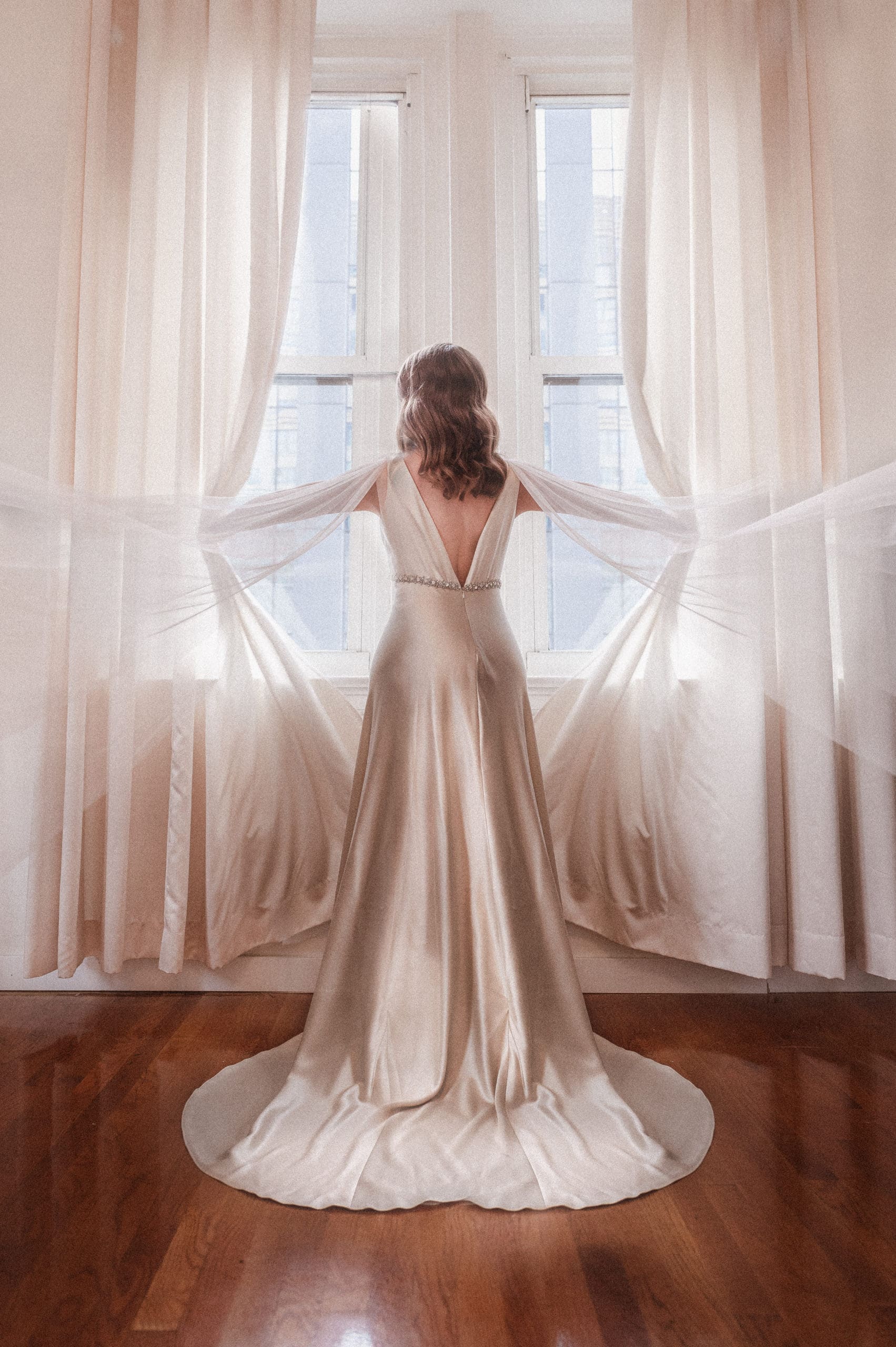 A collection of wedding photos at Midtown Loft and Terrace in Manhattan (NYC). The wedding took place in September, the weather was cooperating and we worked well around the foot traffic during the portrait sessions around 5th avenue. I loved how at this wedding, this couple did not stick with traditional things. Like, the bride wore a custom beautiful satin-textured champagne color dress by @designerloft_Bridal . There’s more about this day I loved, like how they invited their fur baby, Pickles, for photos! The wedding took place all at one location, which made the guests’/vendors lives easier so there’s no need to commute around NYC in order to get to the next location on time. I also loved the fact that they wrote vows and brought engraved 2020 wedding decorations/magnum champagne bottles to incorporate in their 2nd wedding date in 2021.