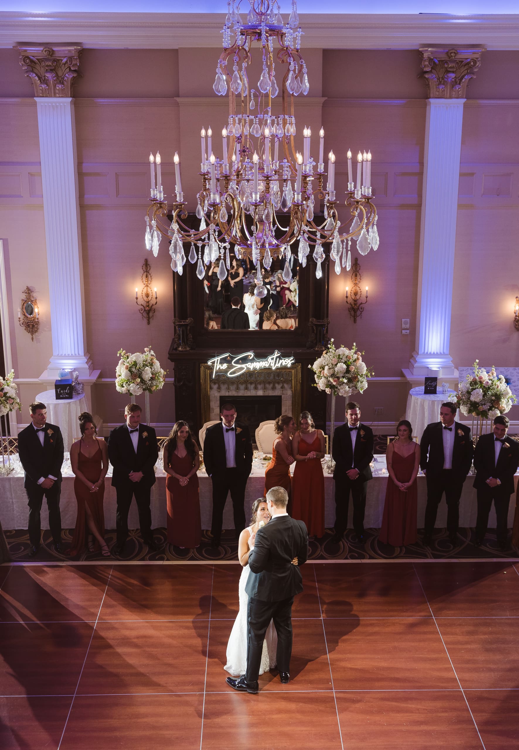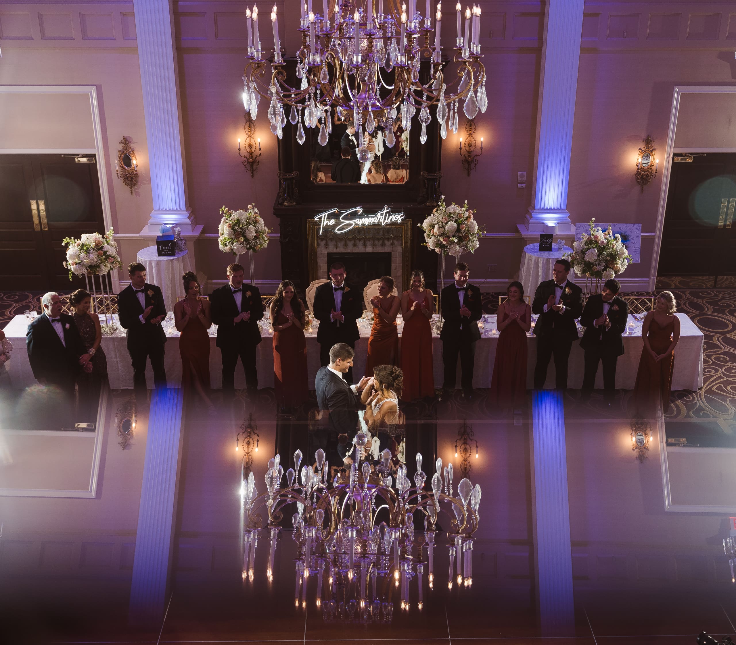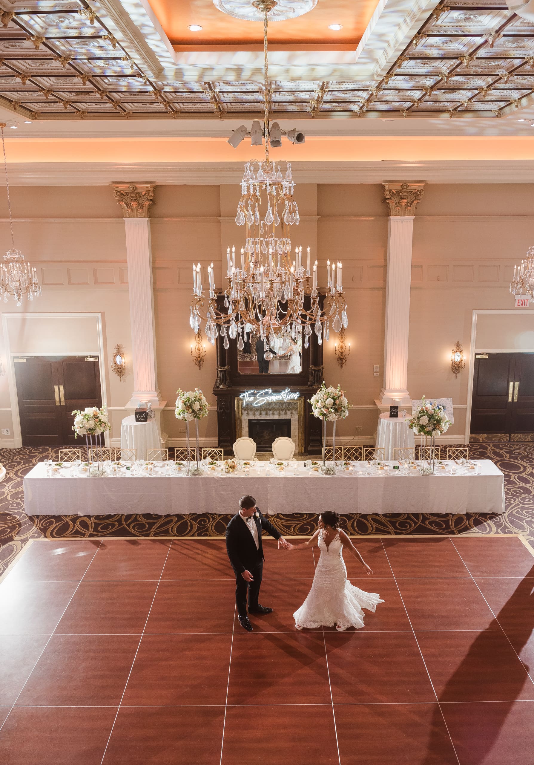 The reception ballroom was absolutely stunning! I loved that there was a balcony where a photographer or videographer could set up and capture all the fun from above. It really adds a unique perspective to the celebrations!