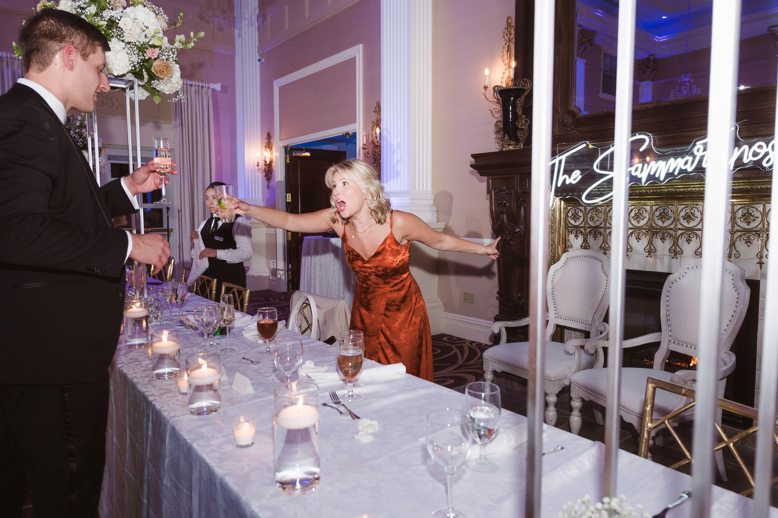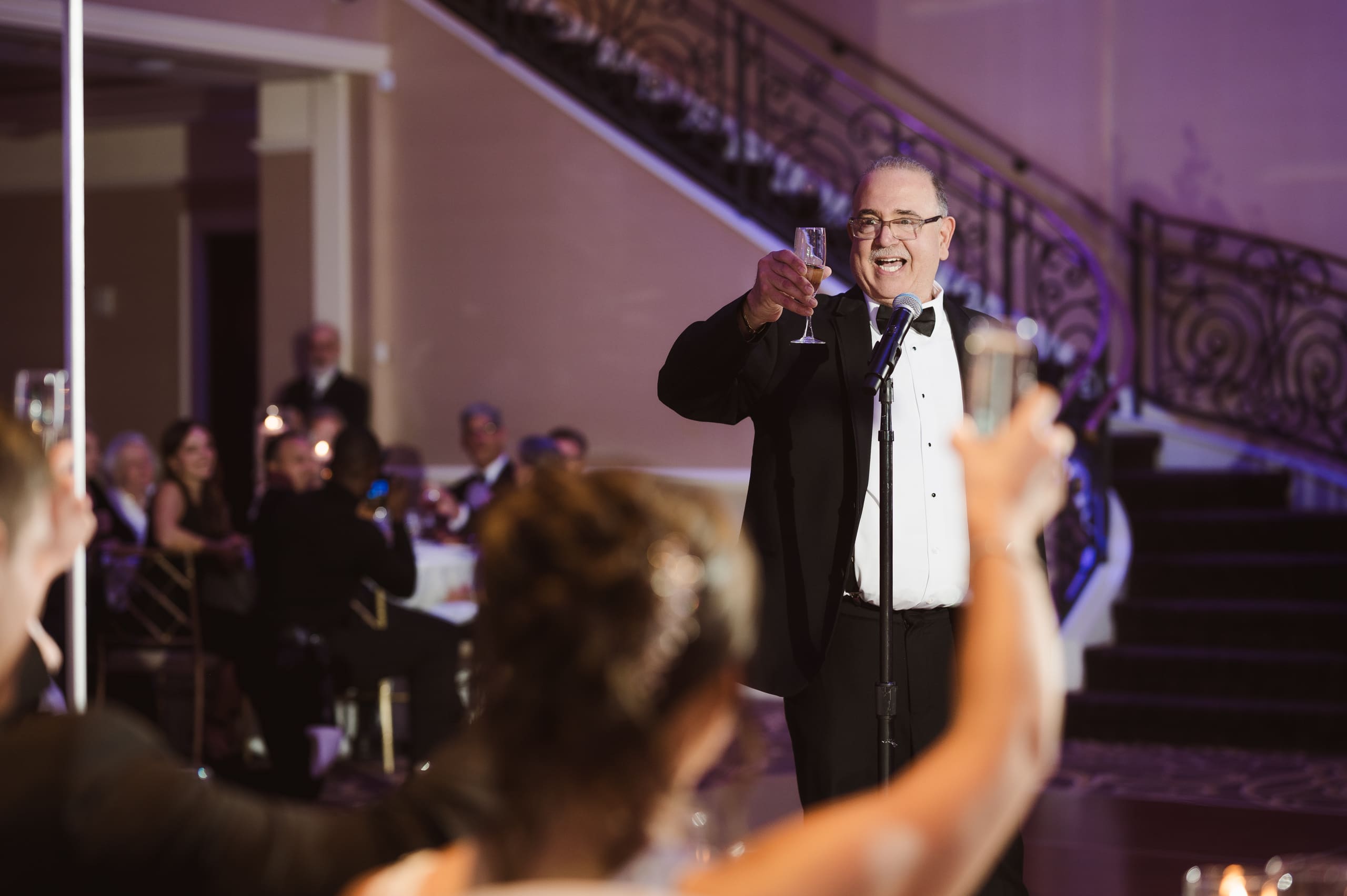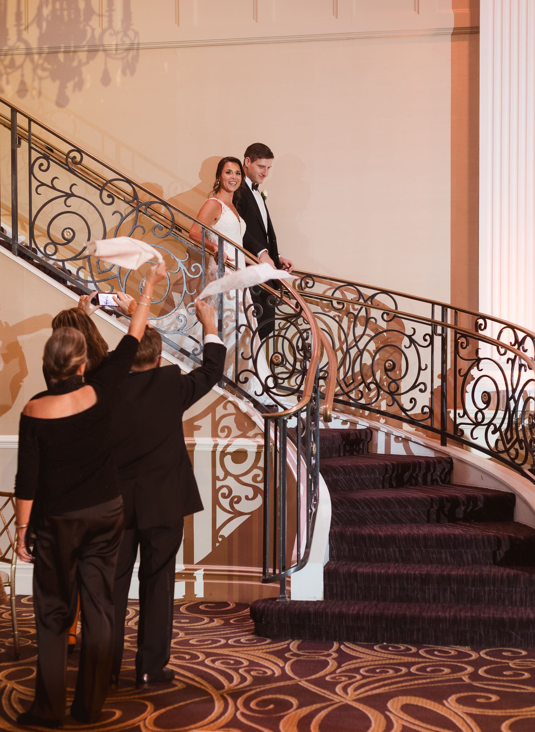 The reception ballroom was absolutely stunning! I loved that there was a balcony where a photographer or videographer could set up and capture all the fun from above. It really adds a unique perspective to the celebrations!