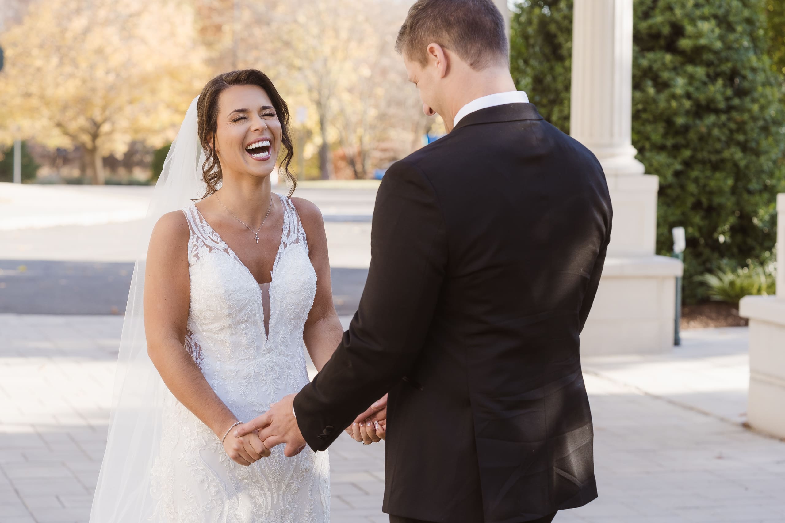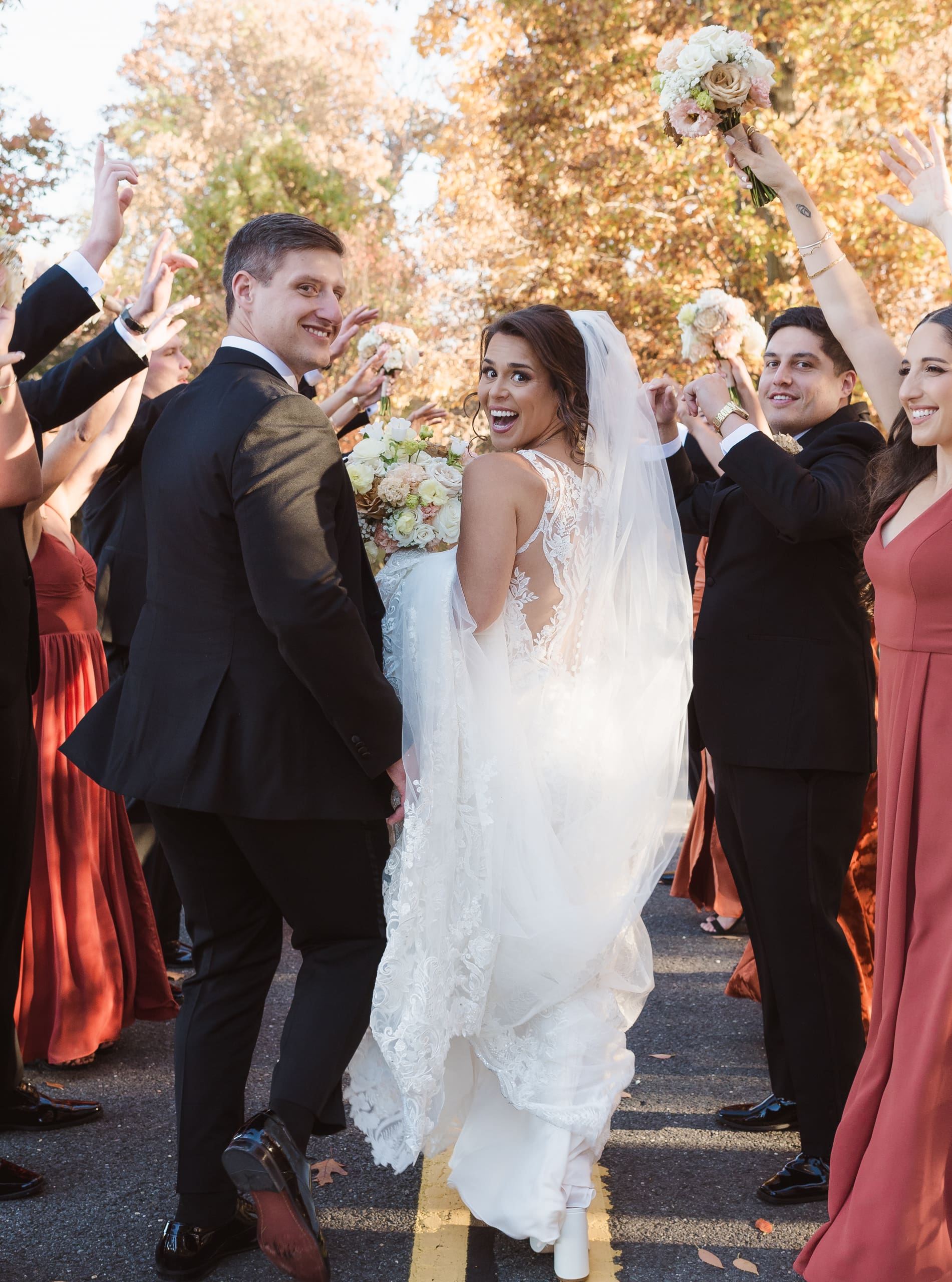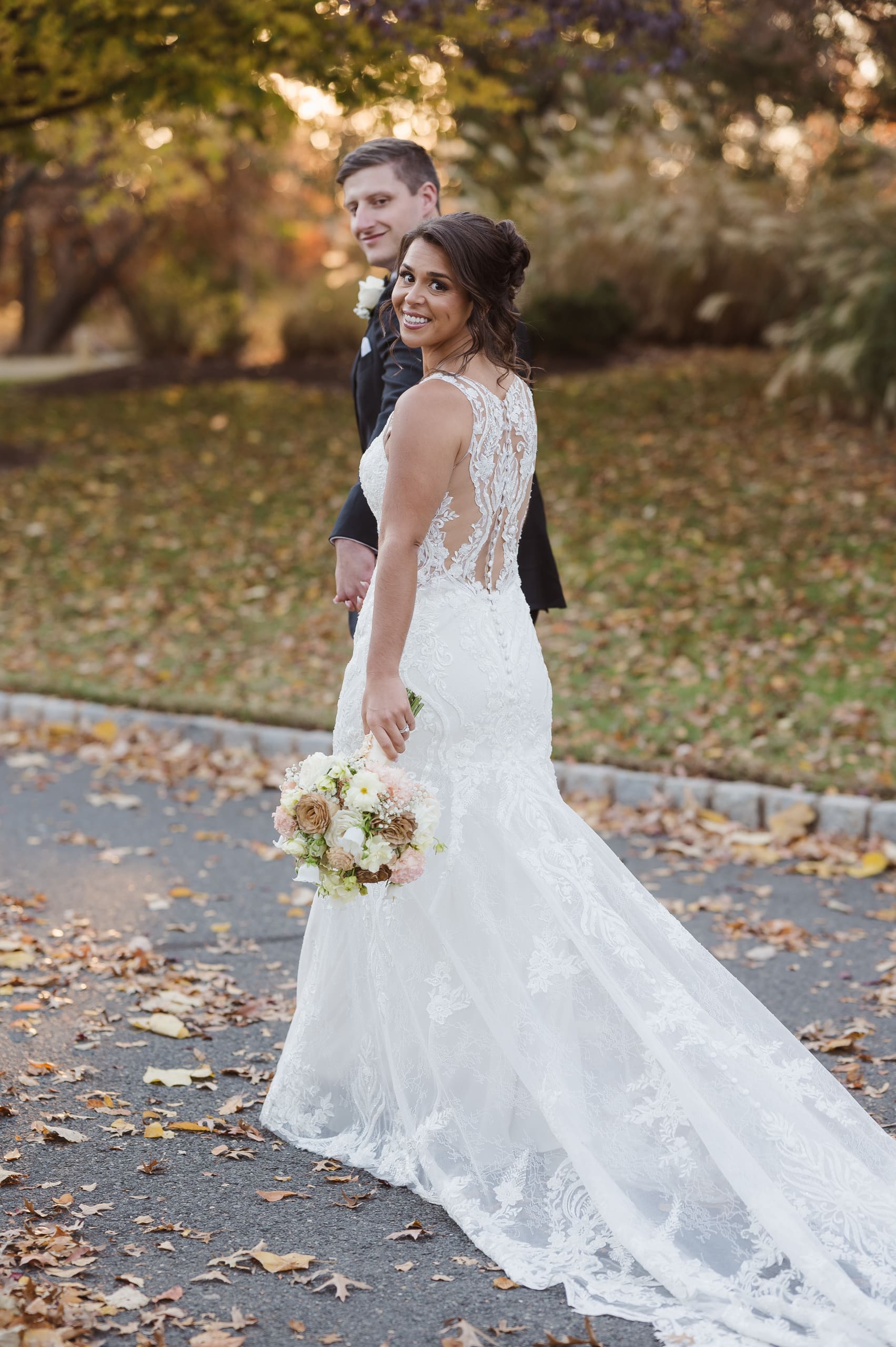 Fall time wedding photos at the Palace at Somerset Park (west wing) in NJ by Suess Moments photographer.