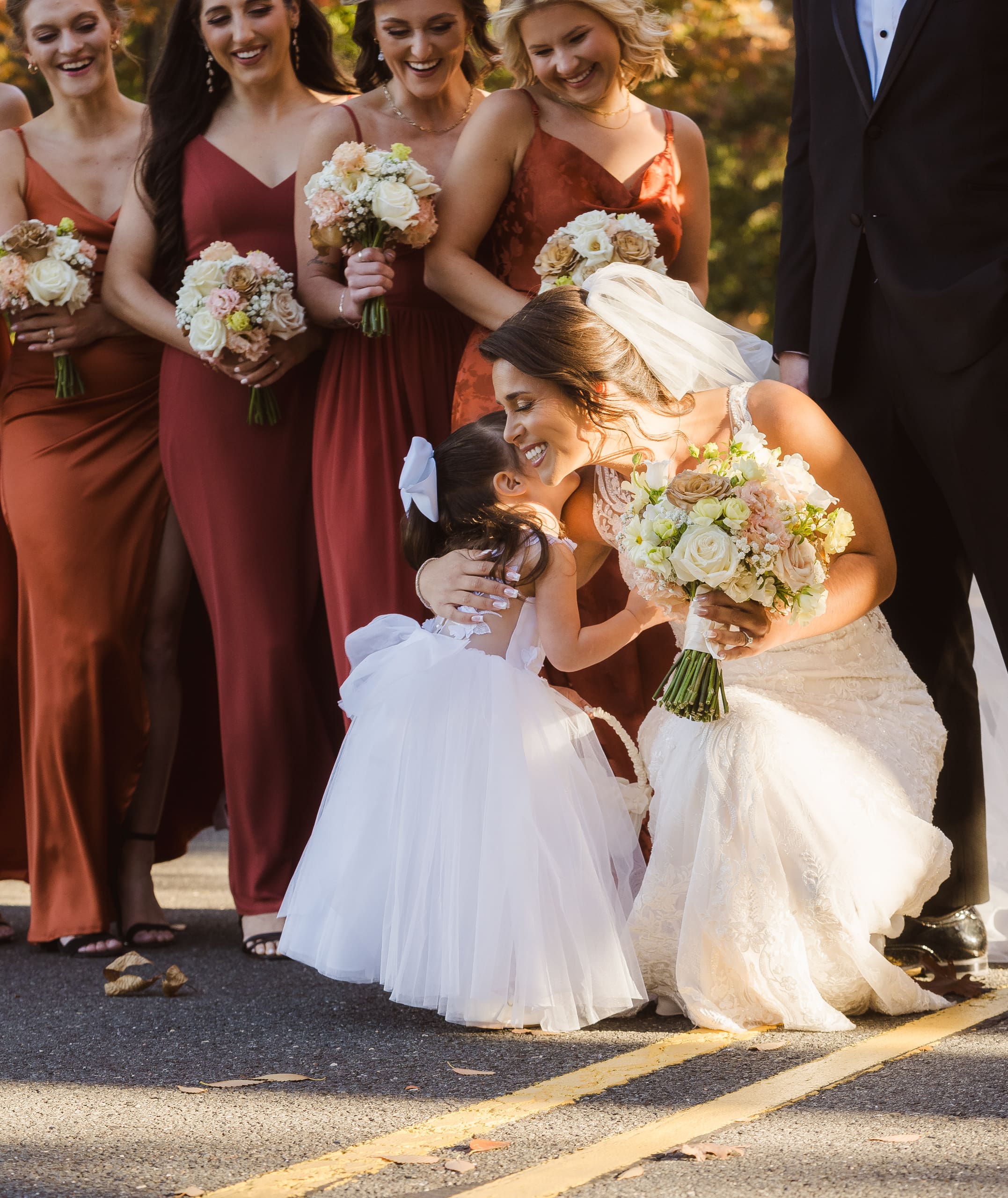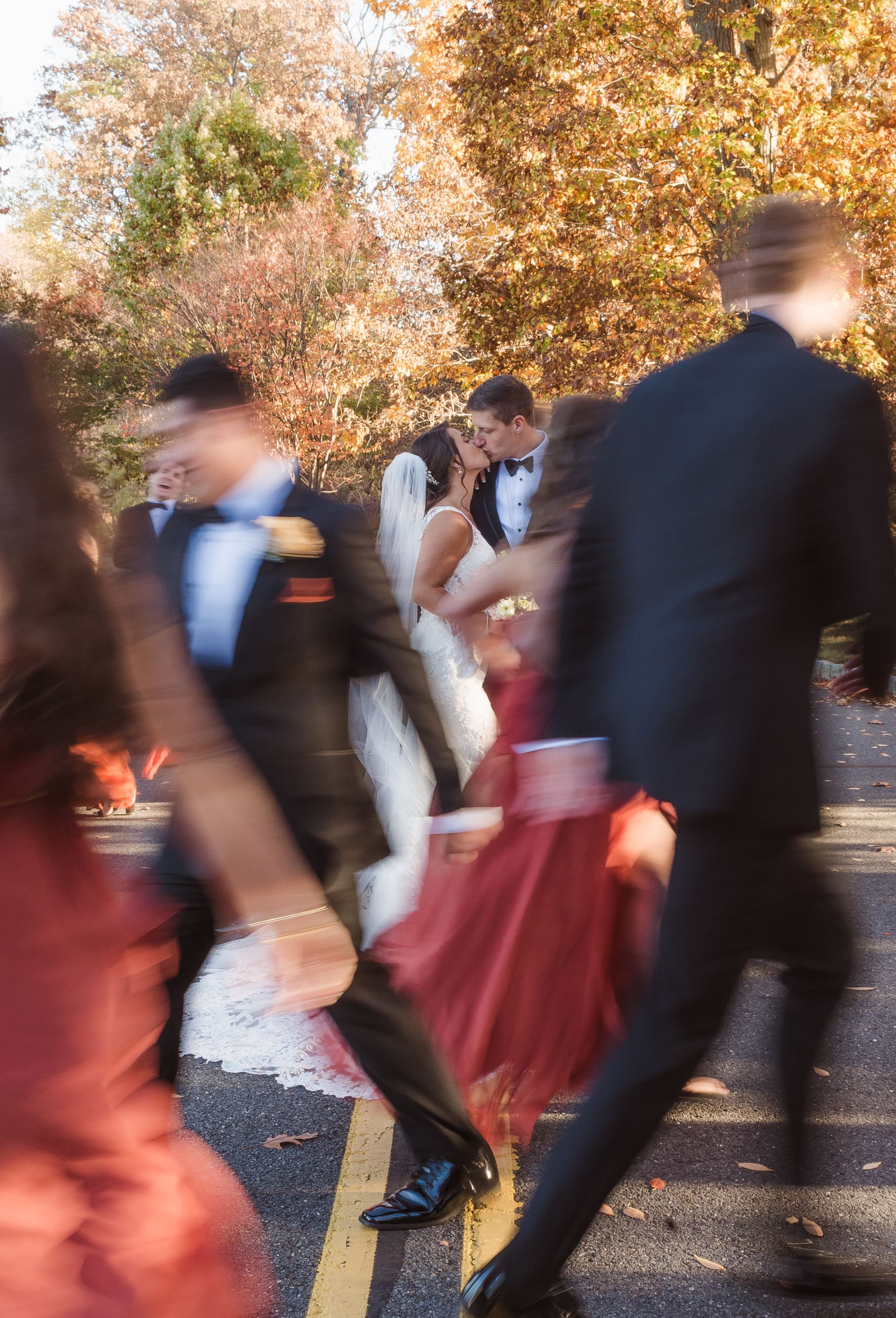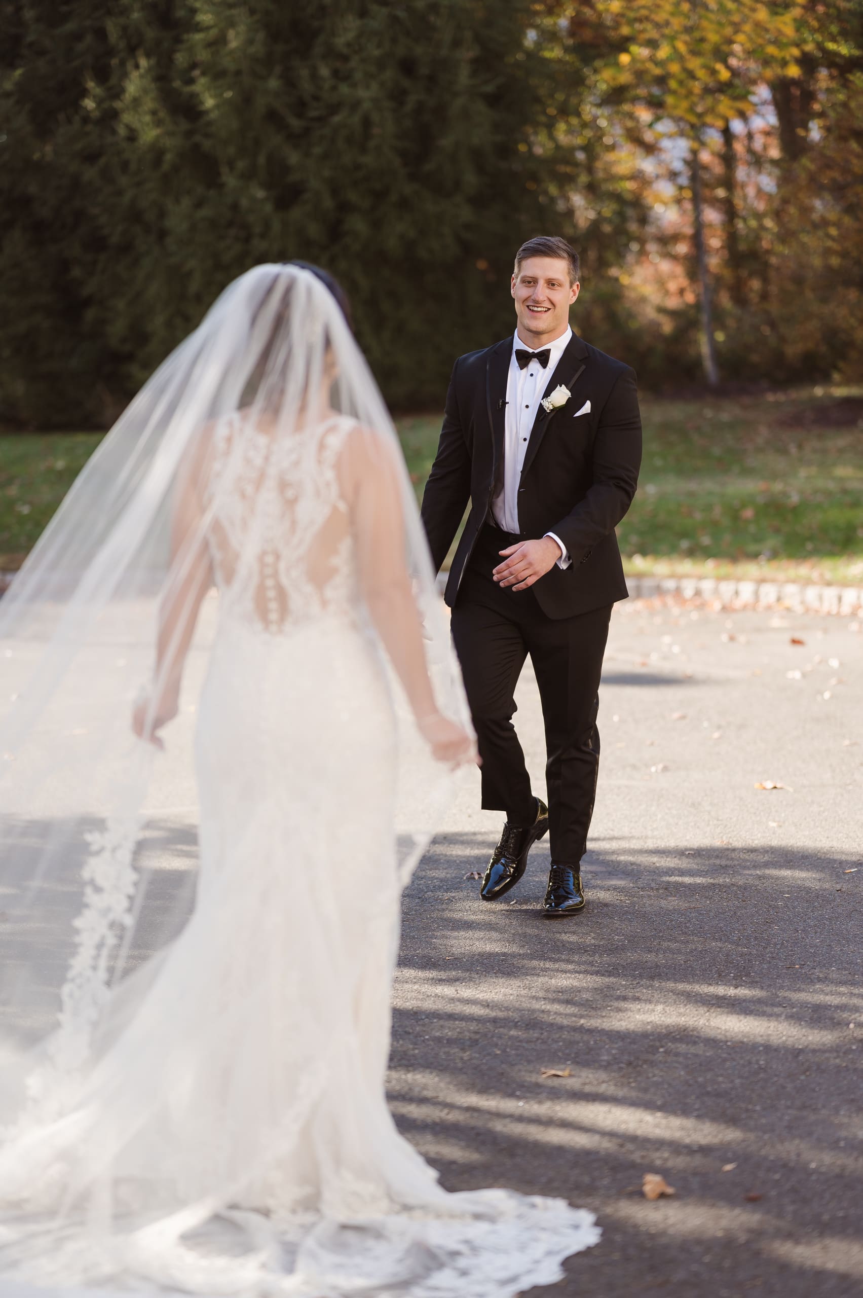 The wedding was held on October 26th during the beautiful fall season, with the parking lot surrounded by stunning autumn foliage. While the Palace at Somerset Park has limited outdoor photo spots, mainly around the entryways and indoors, this gives photographers a chance to get creative in capturing special moments. With another wedding happening that same day, our options were a bit more limited, but we made the most of it!