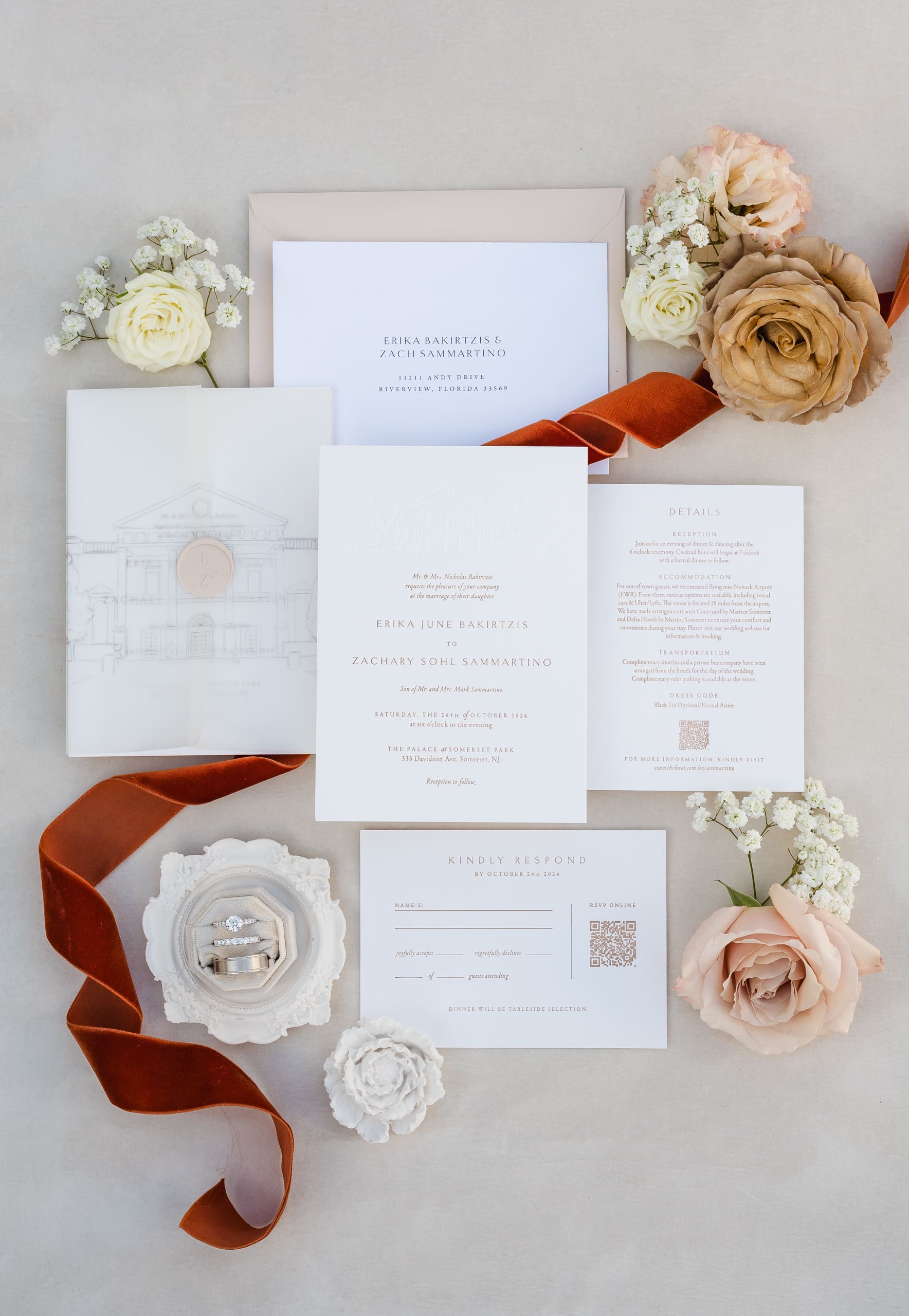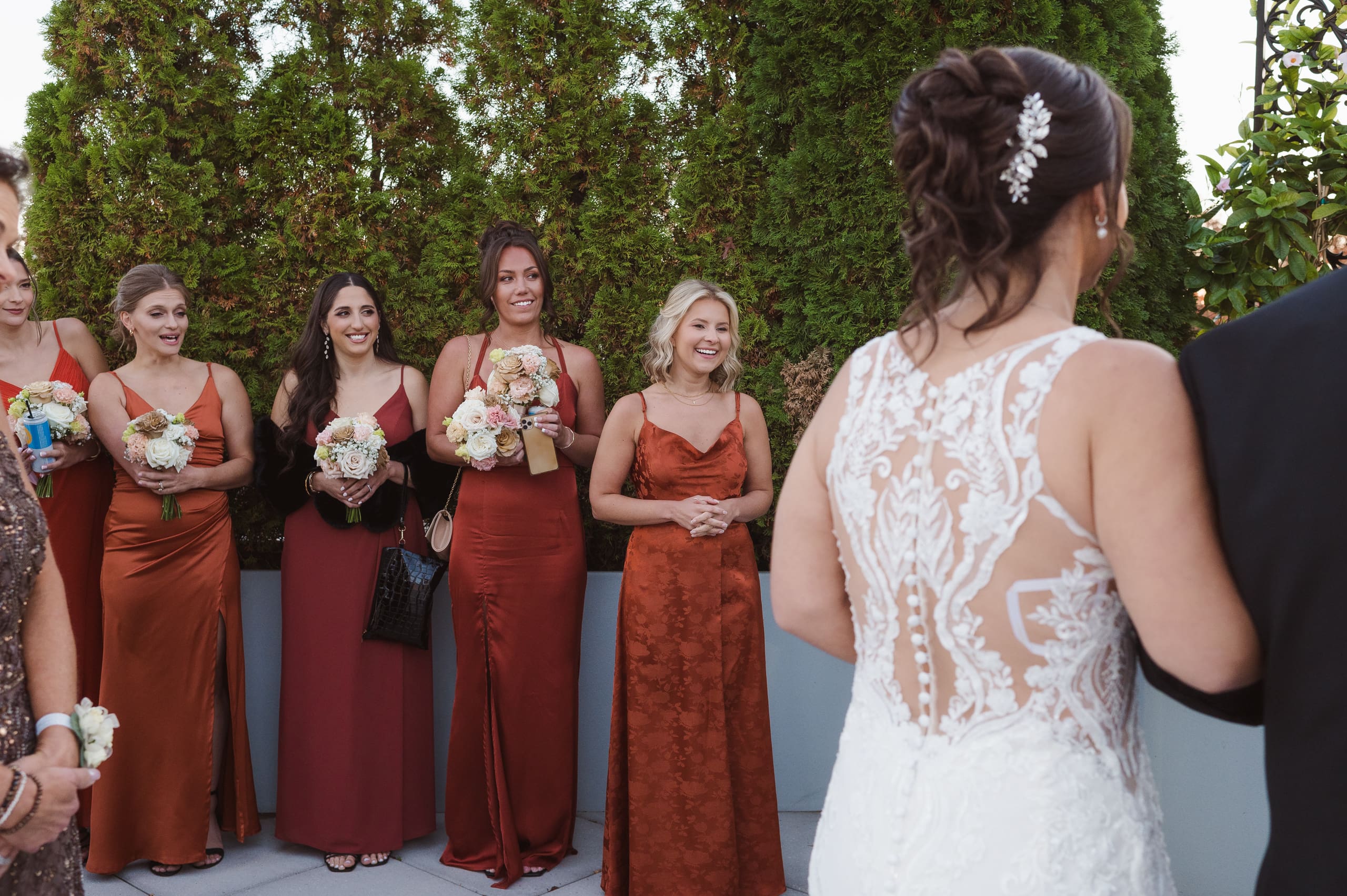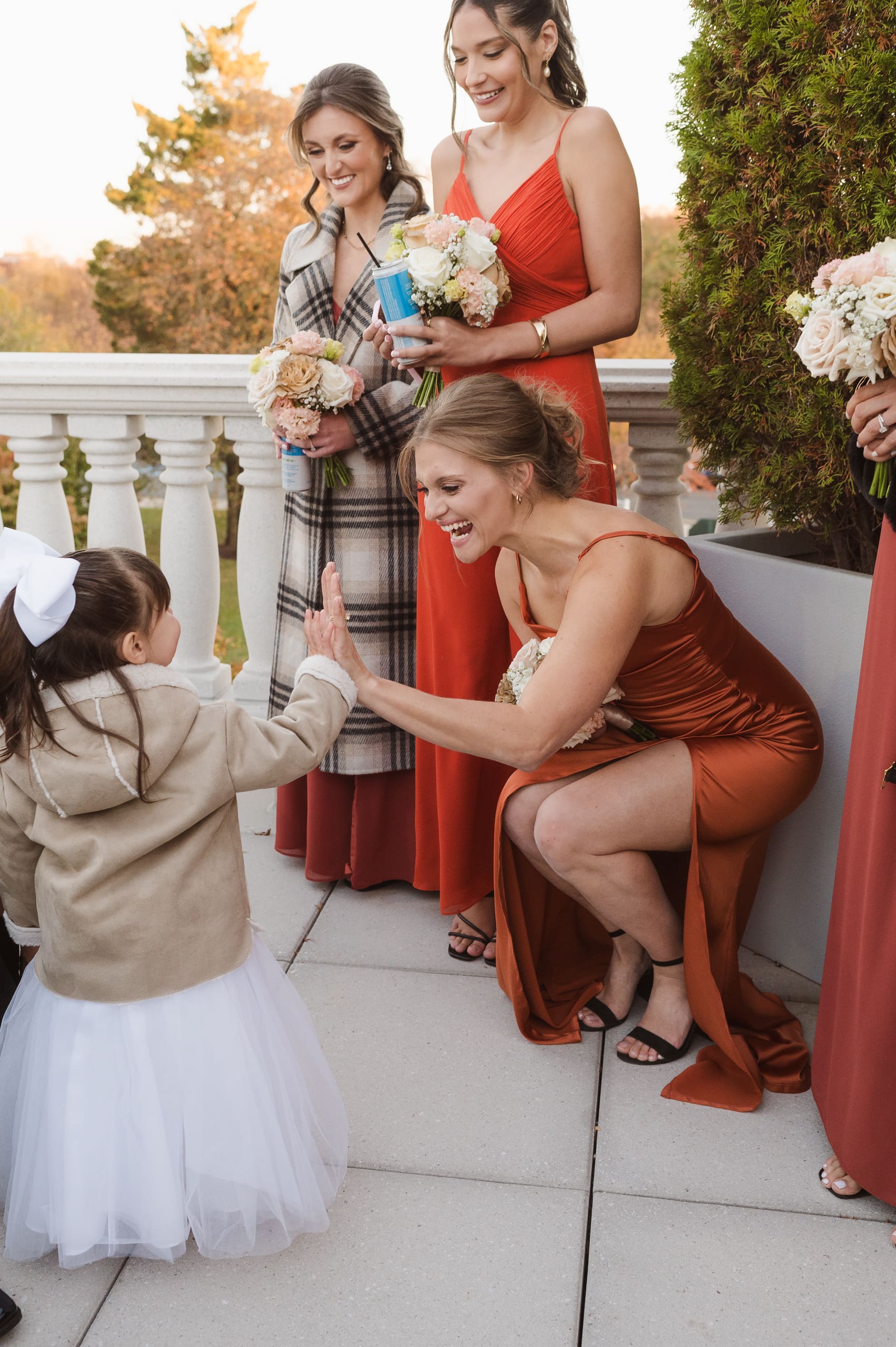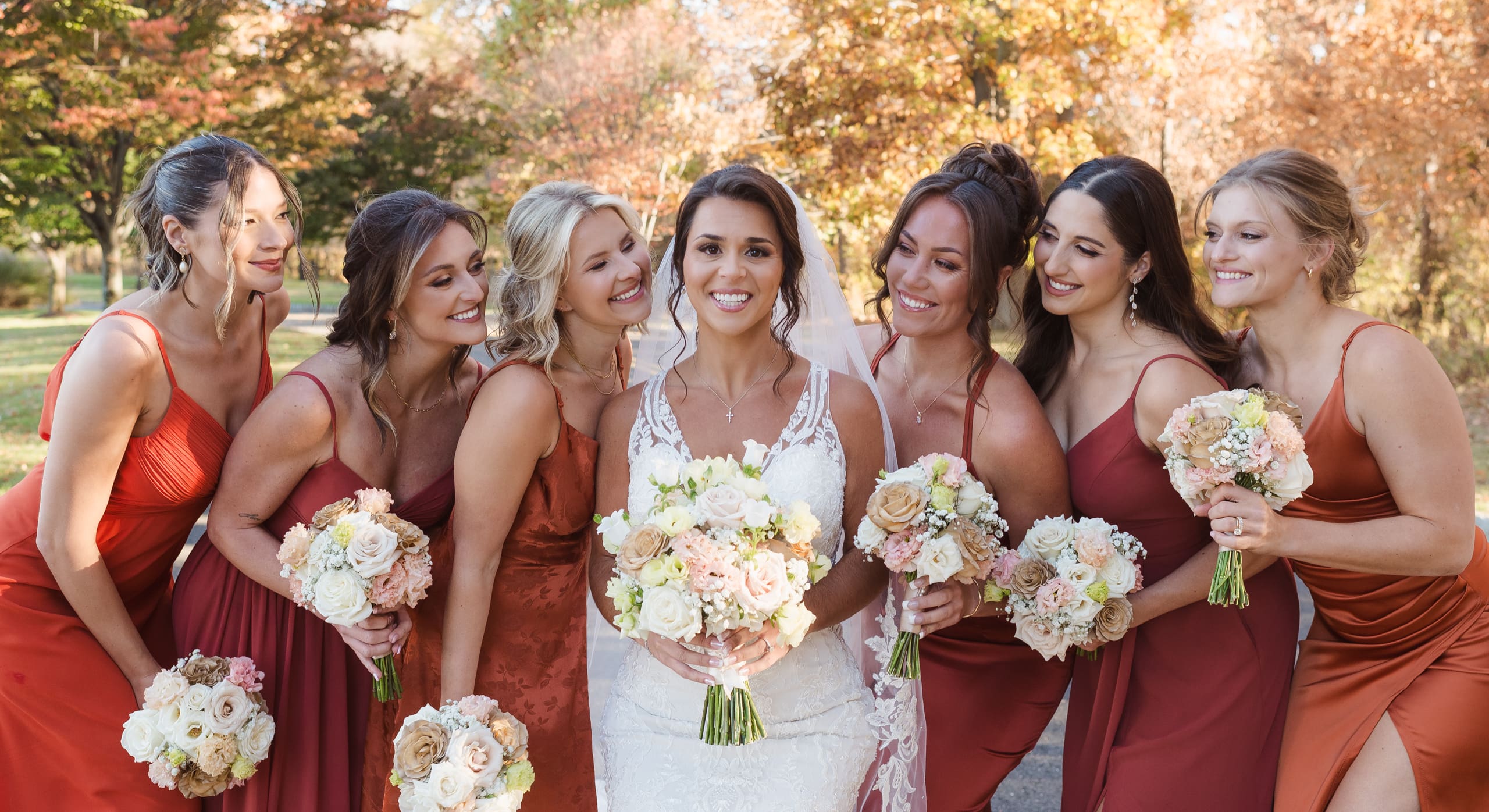The wedding was held on October 26th during the beautiful fall season, with the parking lot surrounded by stunning autumn foliage. While the Palace at Somerset Park has limited outdoor photo spots, mainly around the entryways and indoors, this gives photographers a chance to get creative in capturing special moments. With another wedding happening that same day, our options were a bit more limited, but we made the most of it!