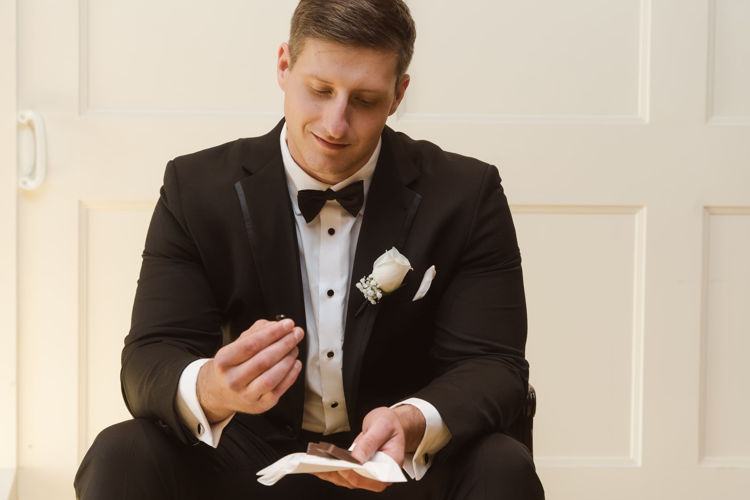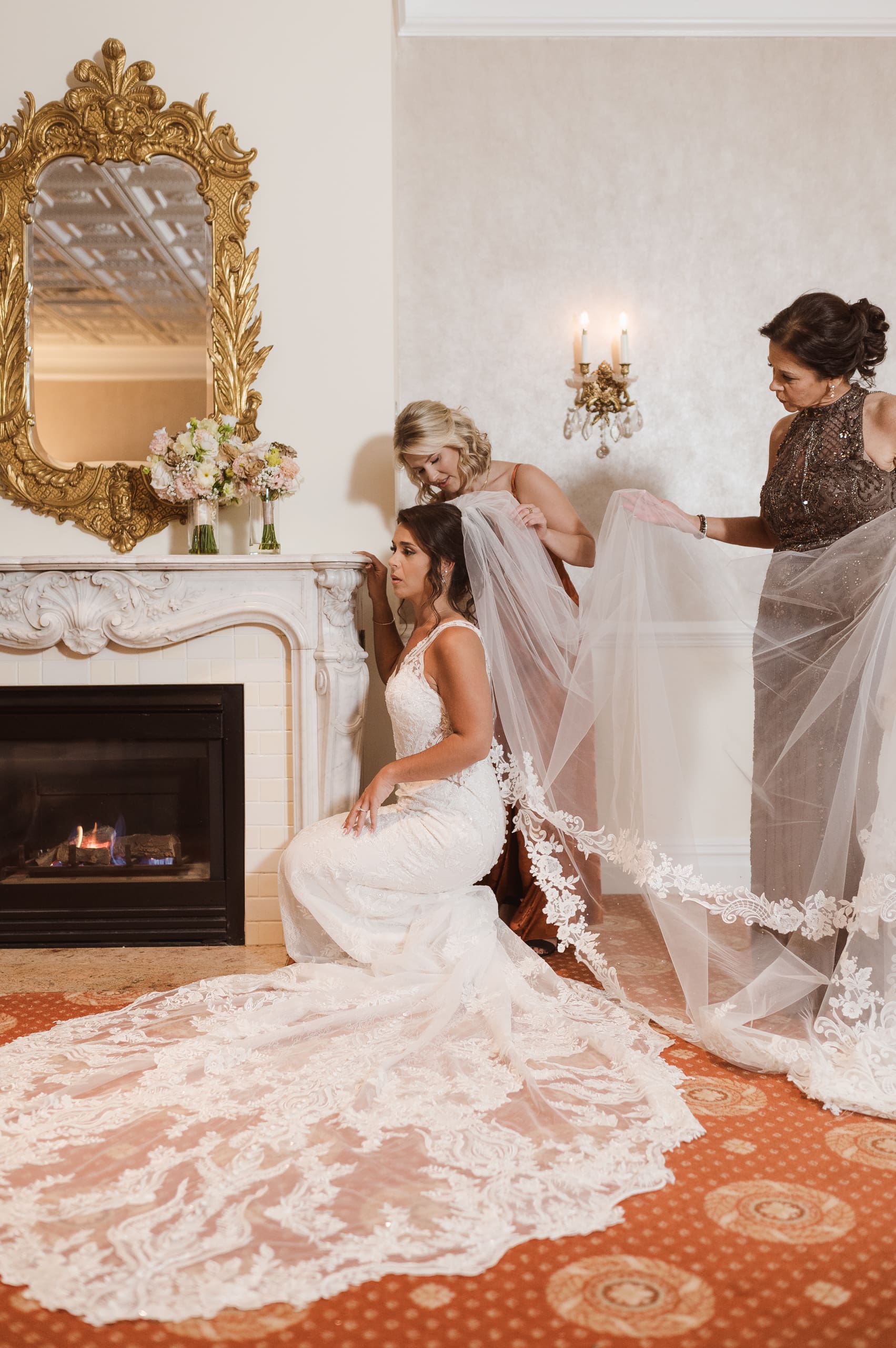 The bride and groom’s suite didn’t have any windows, so we took all the preparation photos inside using flash photography. As a professional photographer in New Jersey, I was totally up for the challenge!