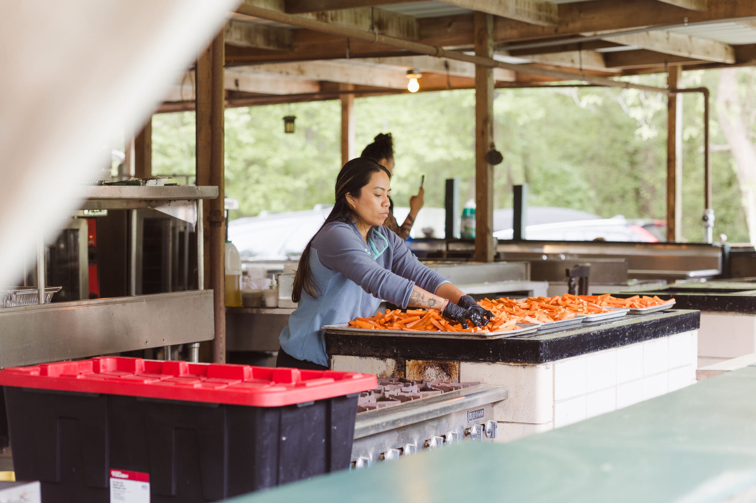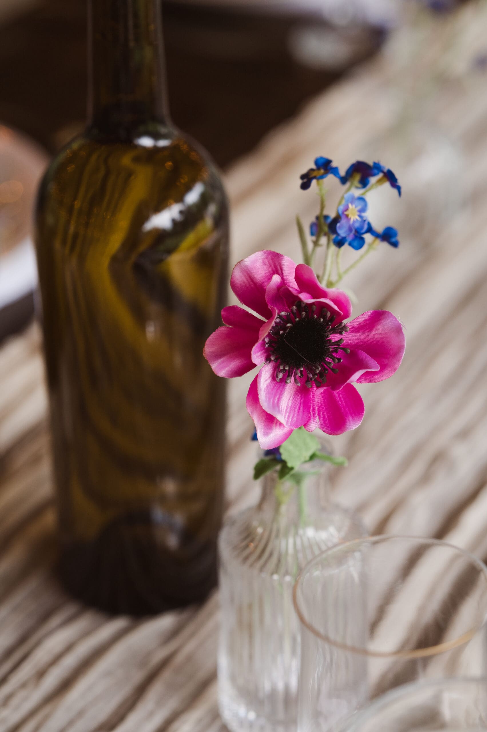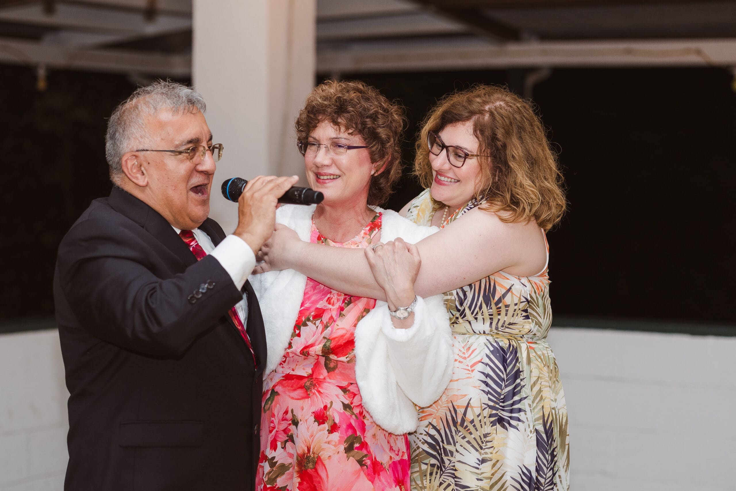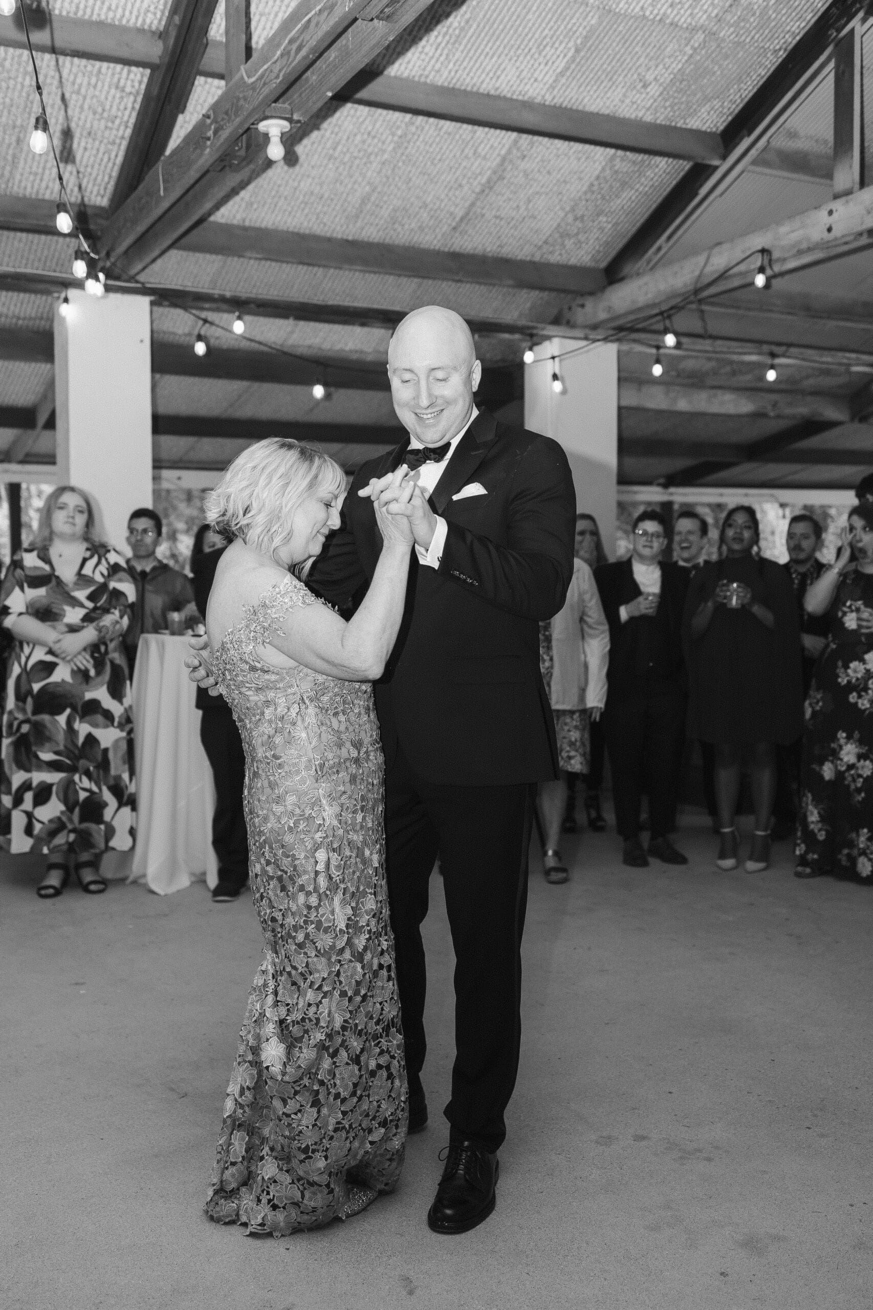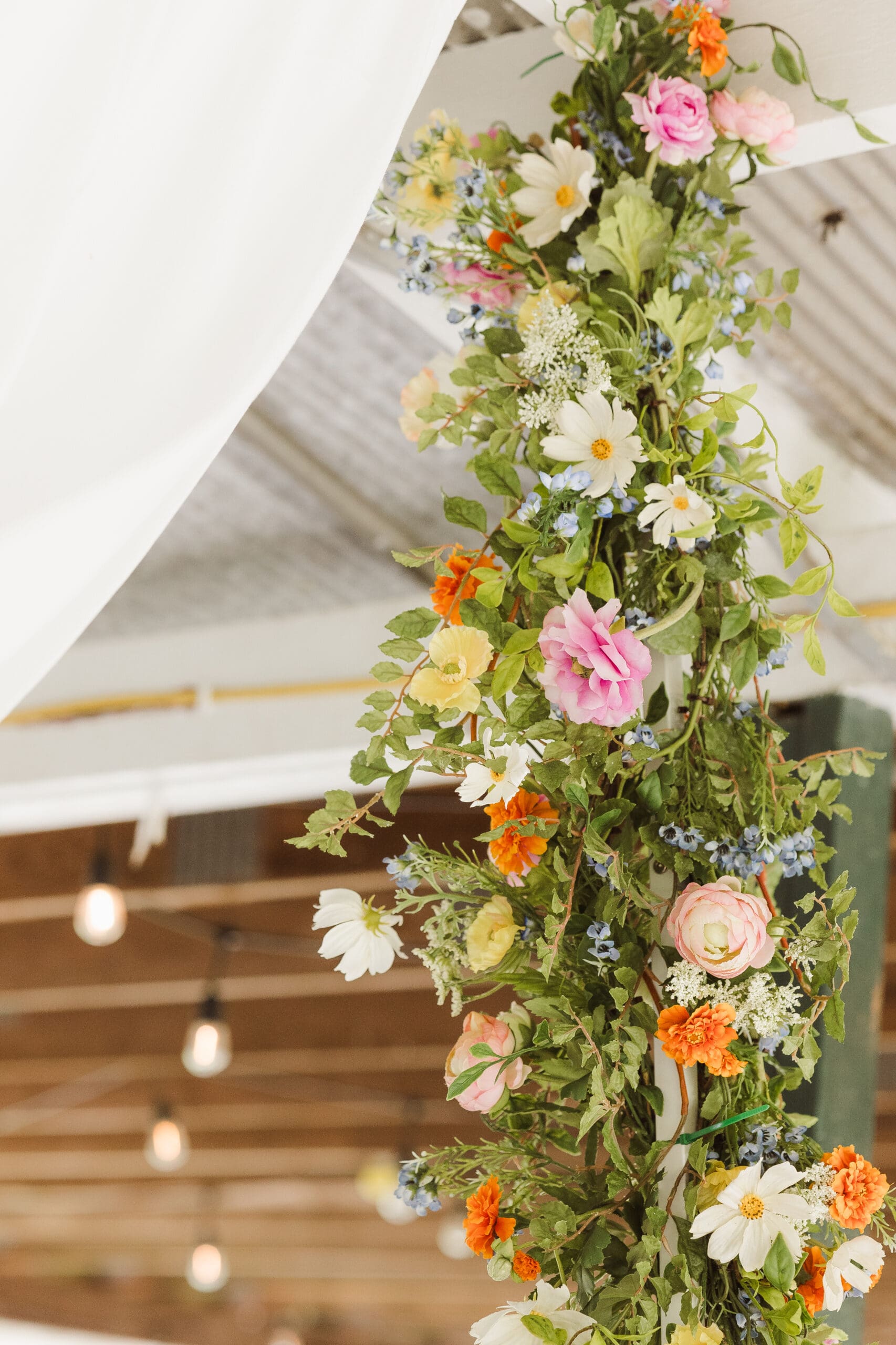 We began with a first look, followed by portraits of just the bride and groom wearing their wedding bands. We then took photos of the wedding party (bridesmaids and groomsmen) and family. We had about 45 minutes to spare to prepare and chill out before the ceremony and the guests’ arrival. It rained during their ceremony, but we continued despite the drizzle not dampening our mood. Afterward, we celebrated with food, dancing, and an open bar under the glow of Pat’s 30 Acre’s Edison bulbs all night long.