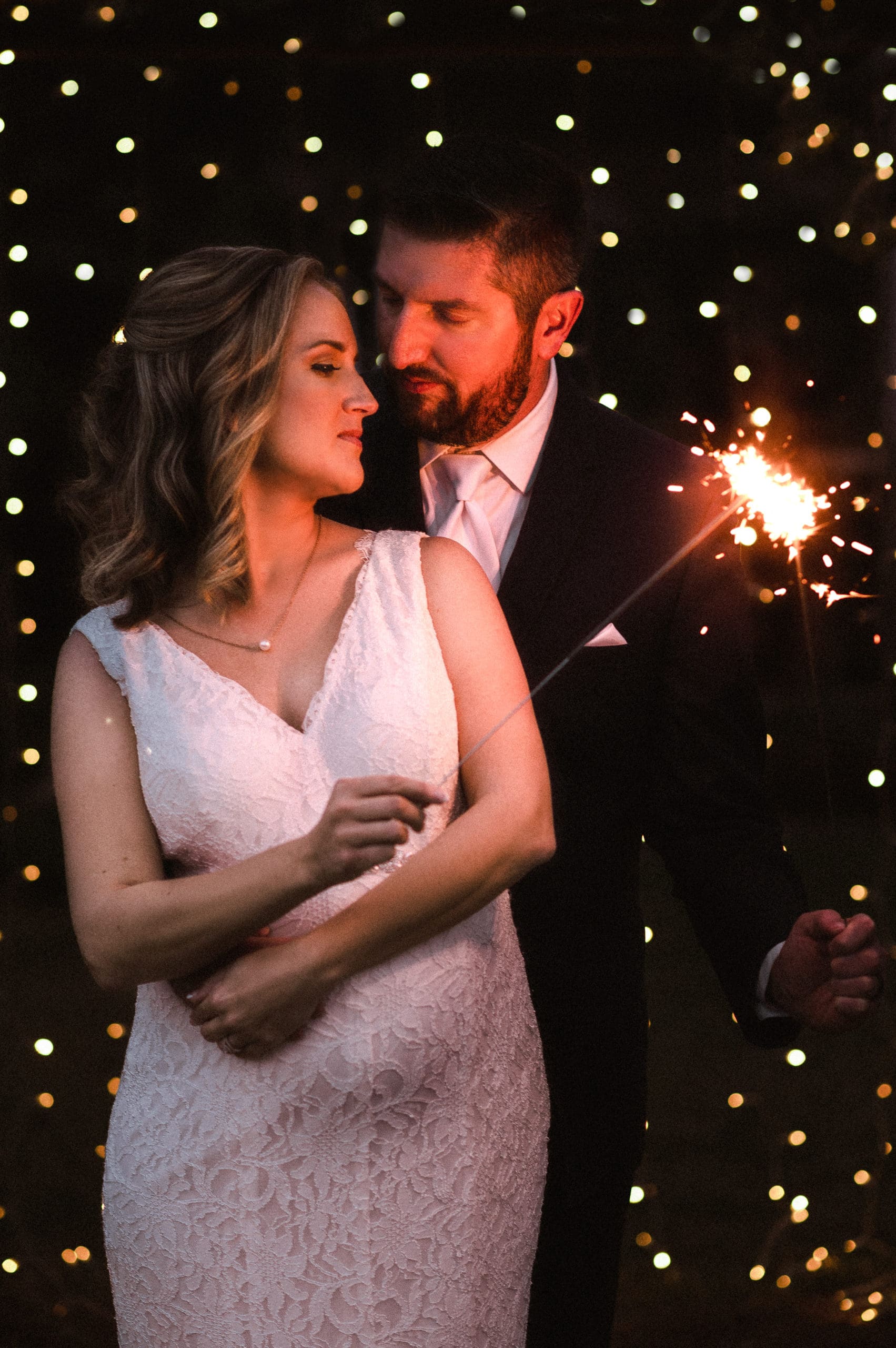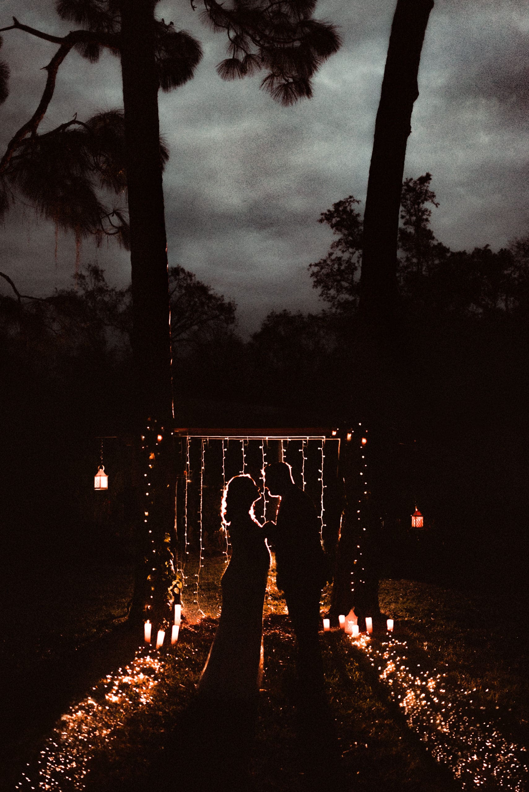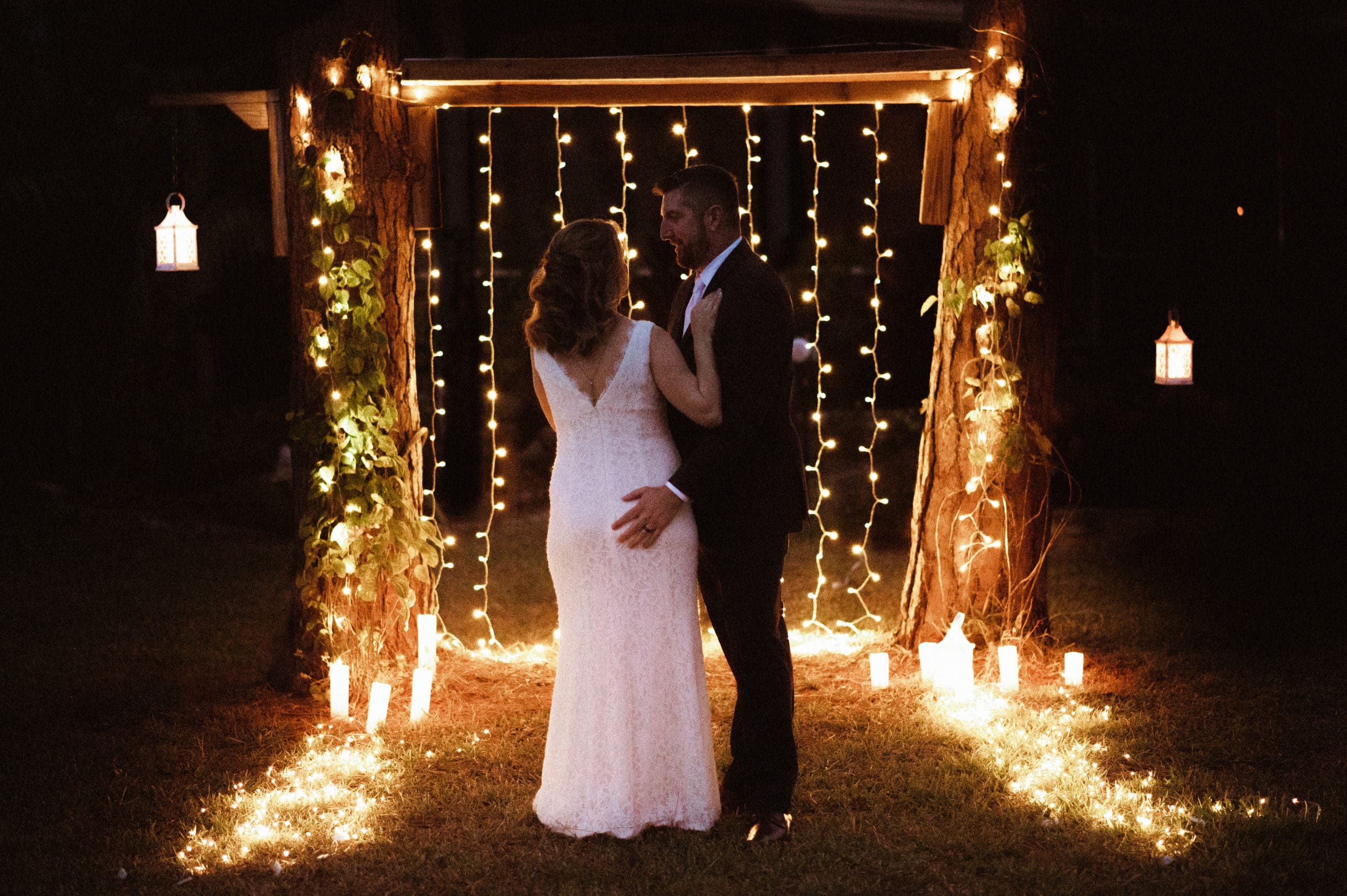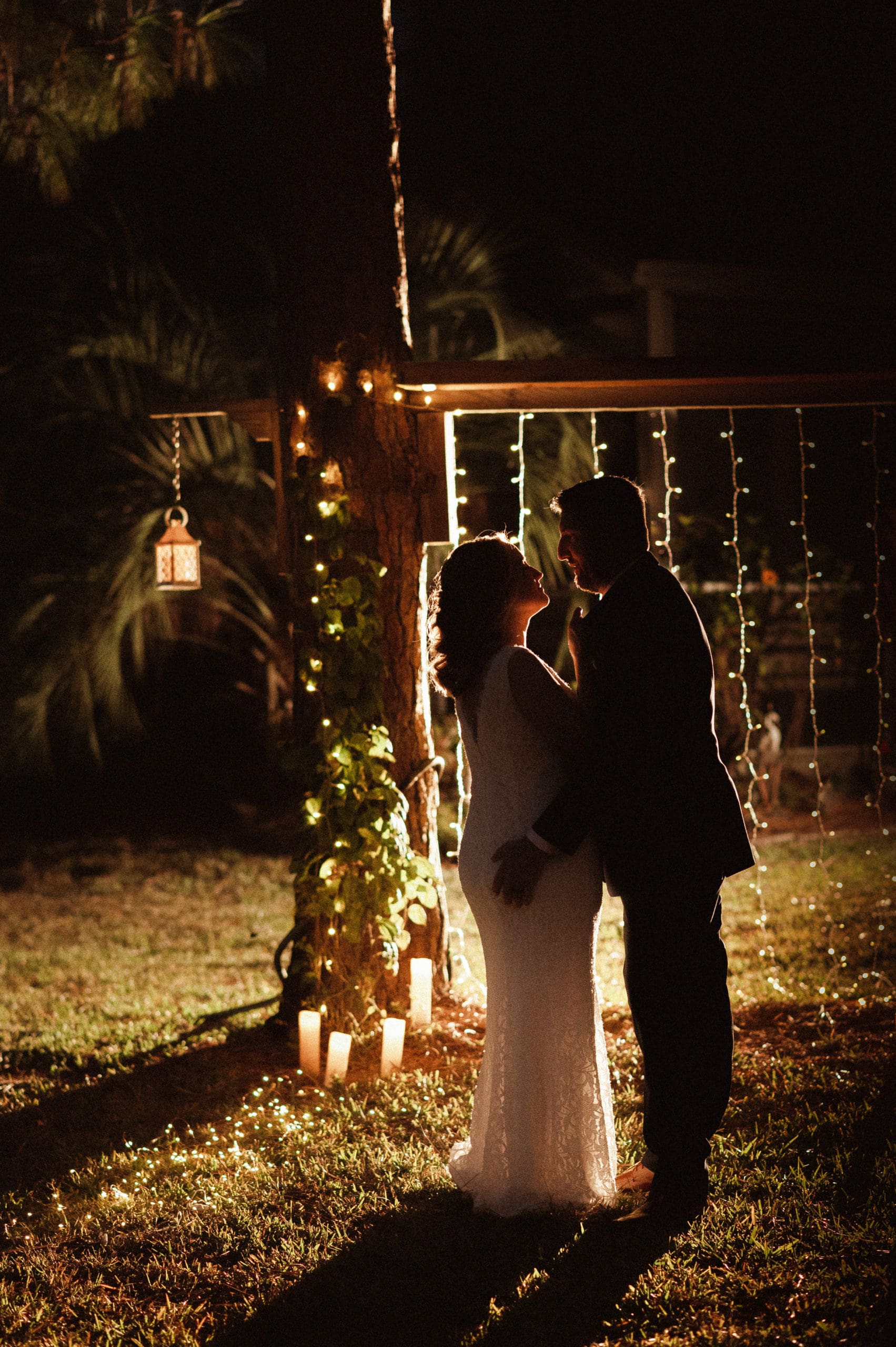 The day after their wedding, we planned to meet at their parent’s home for nighttime magical fine art photos. The couple had set up a fairy light curtain with warm lights and battery-operated candles. I brought a large pack of my own string battery-operated fairy lights as well to get creative.