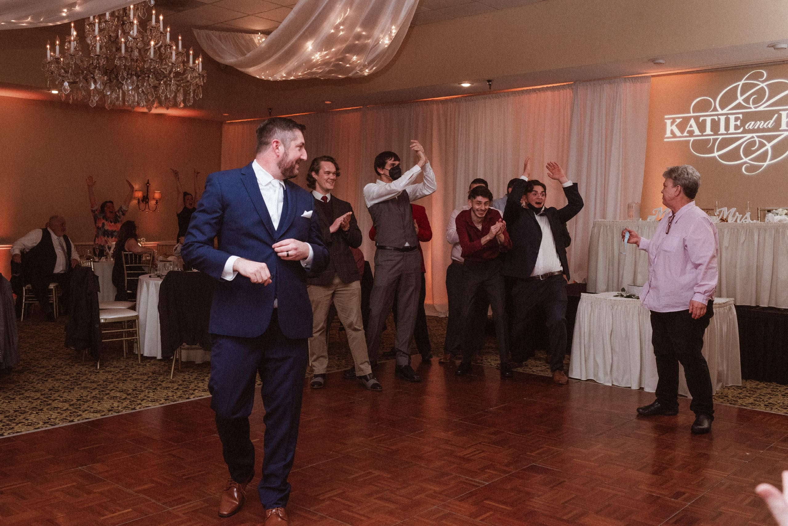 The bride had pre-planned the family photos with note cards and numbers so each grouping knew when they were ready for their set of portraits. I like to speed through family photos as fast as possible just so the family and couple can relax and eat/mingle before the party at the reception. At Spartan Manor, there’s a large dedicated and well-furnished room just for the wedding party to relax near the reception. Before the grand entry, the couple wanted to sneak in a photo on the grand piano too.