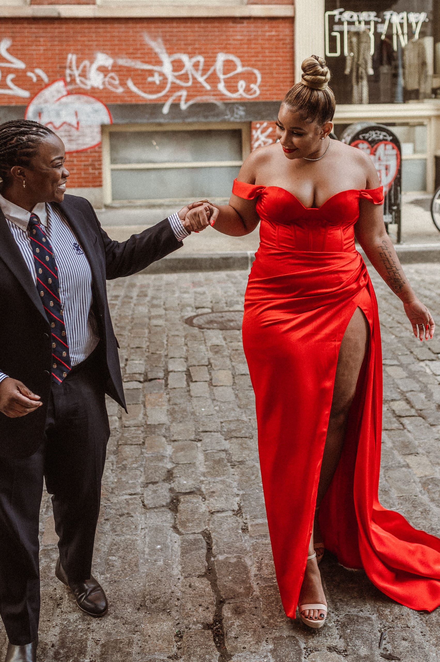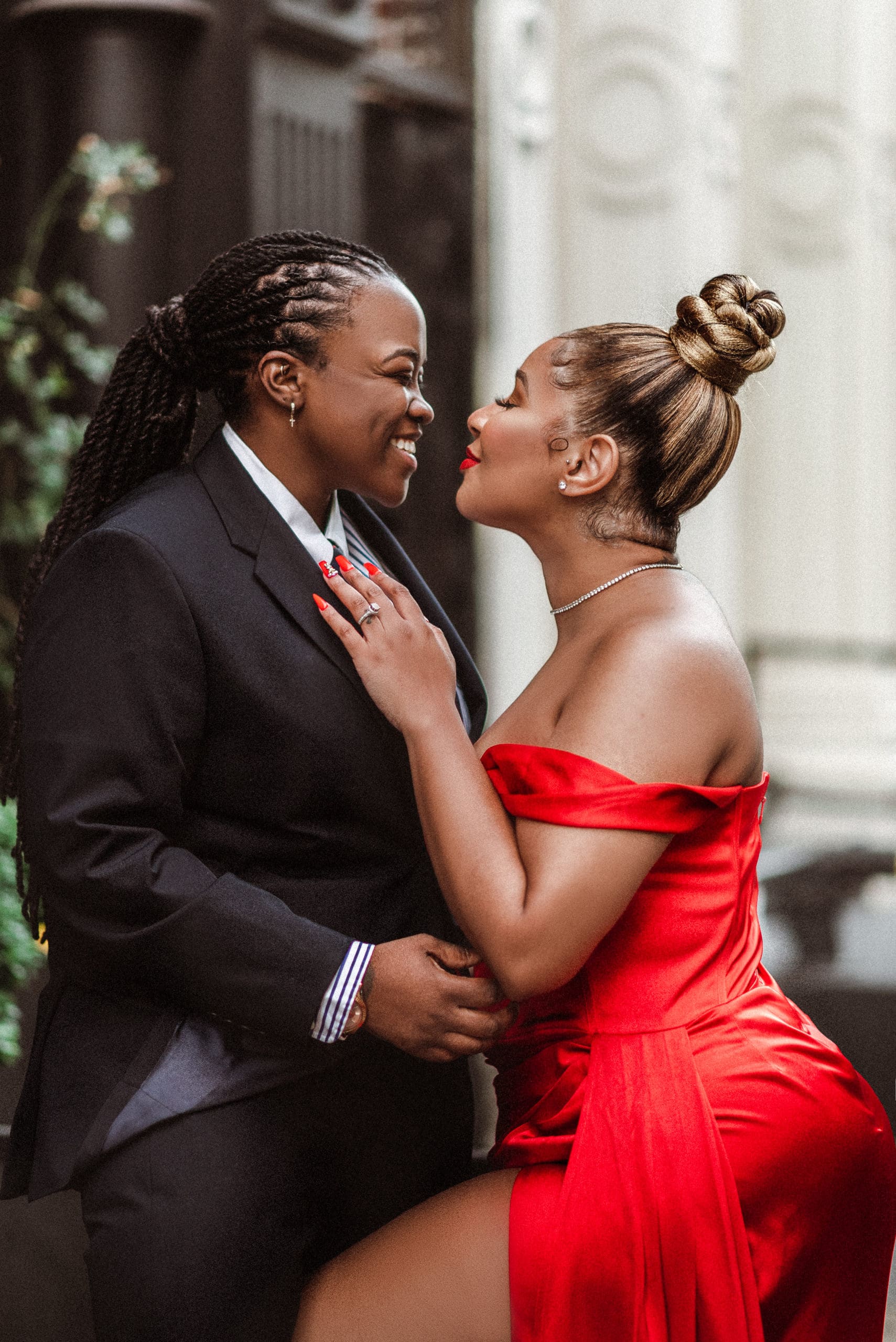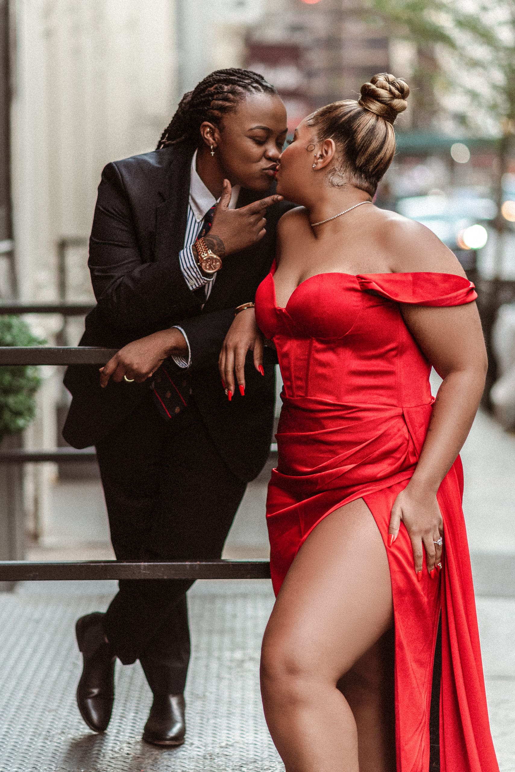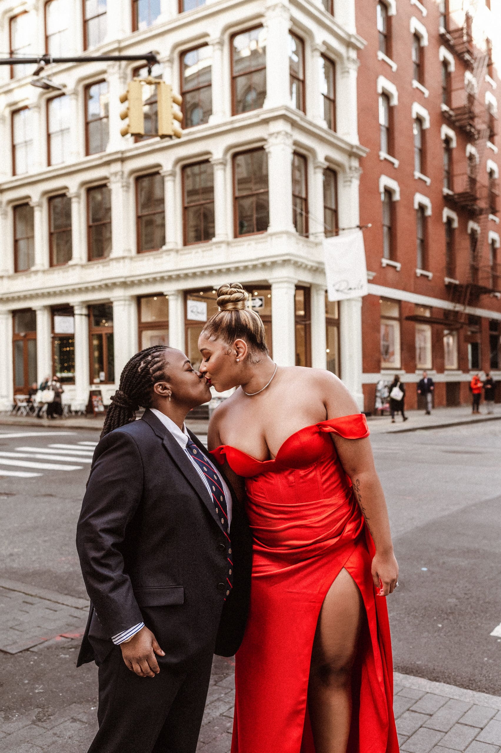 This beautiful LGBQT + (lesbian) couple chose an engagement photoshoot in SoHo NYC because it’s the city of where they started their relationship. They live in Maryland and traveled just to do their photos for their save-the-date and wedding website!