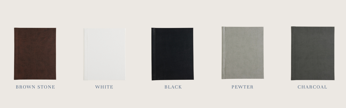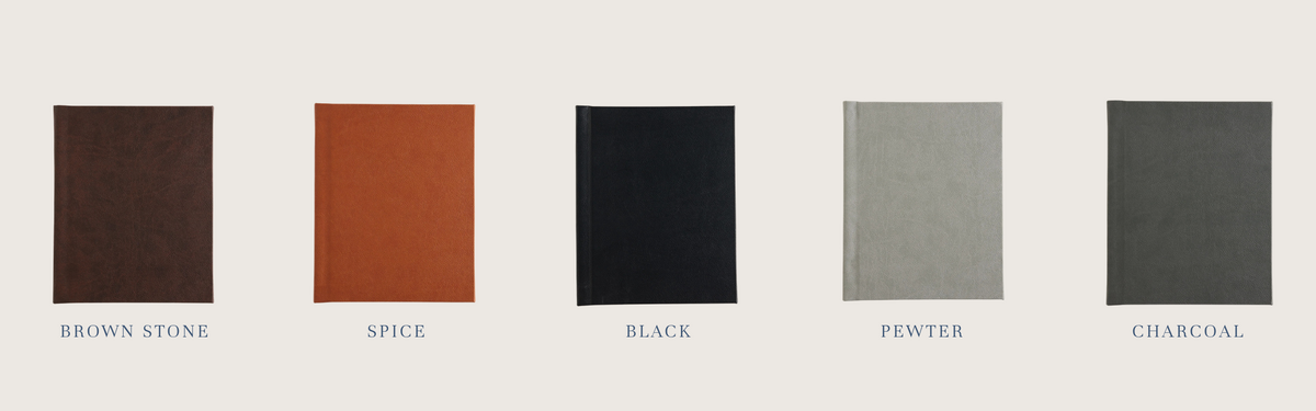 Each vegan storybook album includes 22 pages (11 layflat spreads), custom leather color, embossing foil with two lines of text, and a professional storytelling layout by Miranda. You’ll have unlimited design revisions until it feels like the perfect storybook of your wedding day.