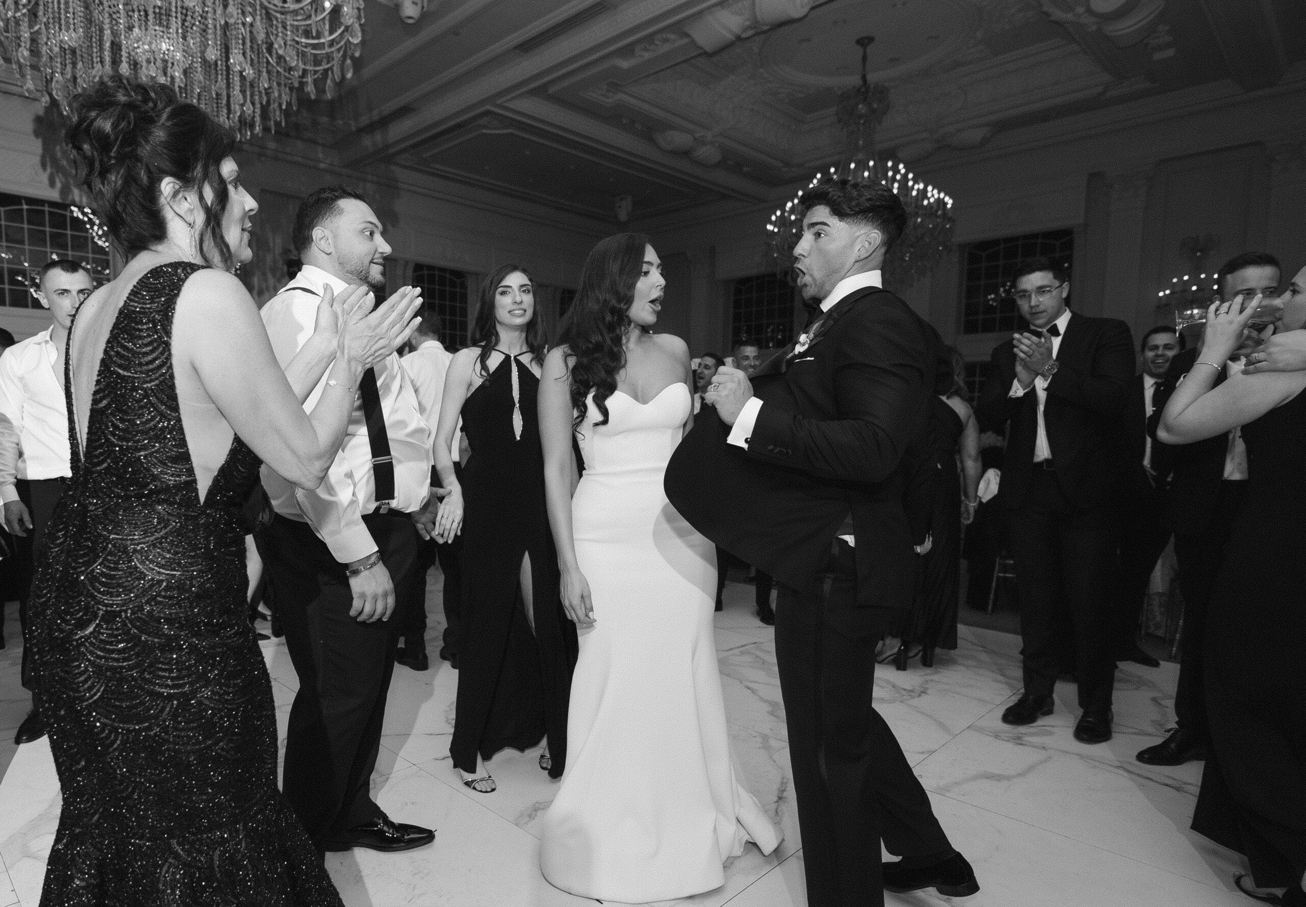 The Estate at Florentine Gardens features a beautiful, elegant ballroom complete with chandeliers and a white marble dance floor. The wedding had an incredible band that kept the dance floor packed all night long! There were plenty of laughs, tears, and dancing throughout the evening. We managed to capture some group shots, but we primarily focused on candid-style wedding photography.