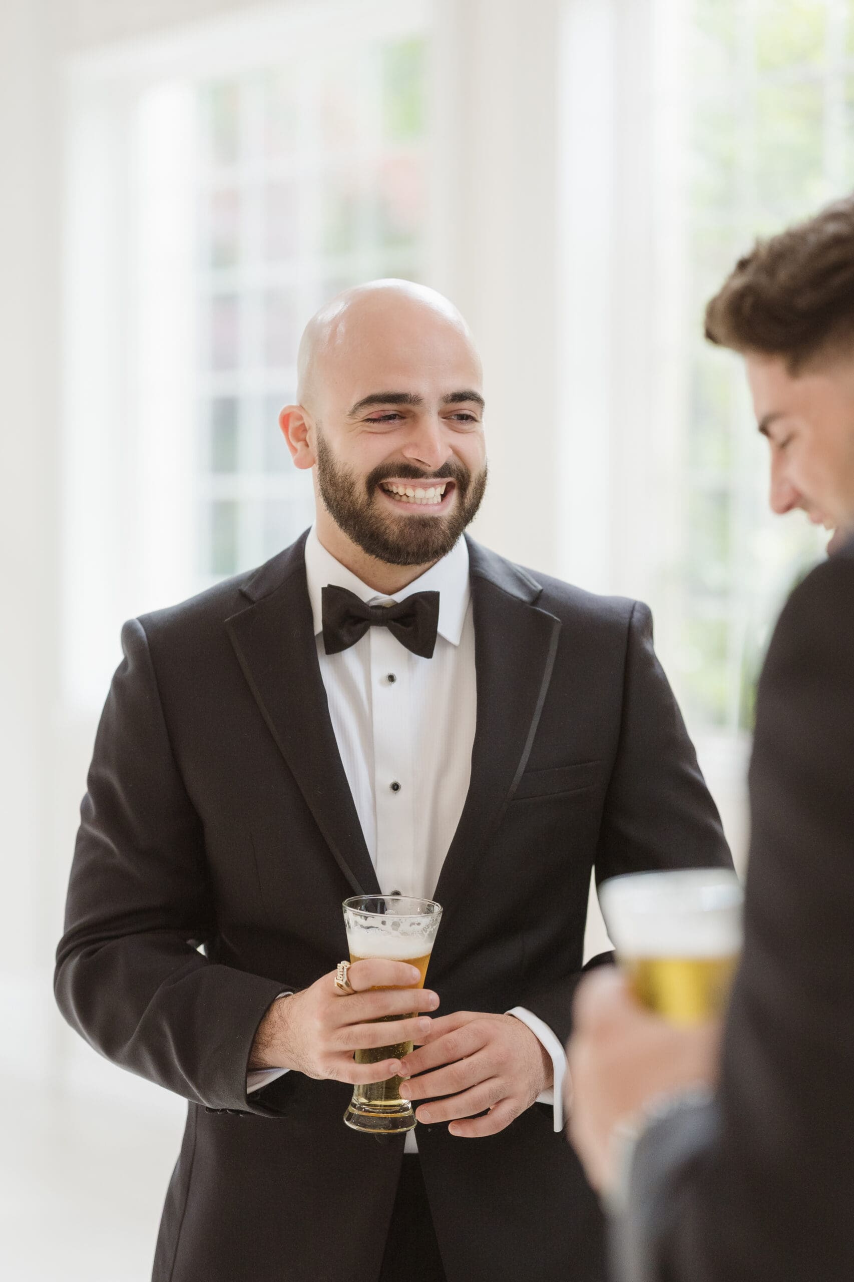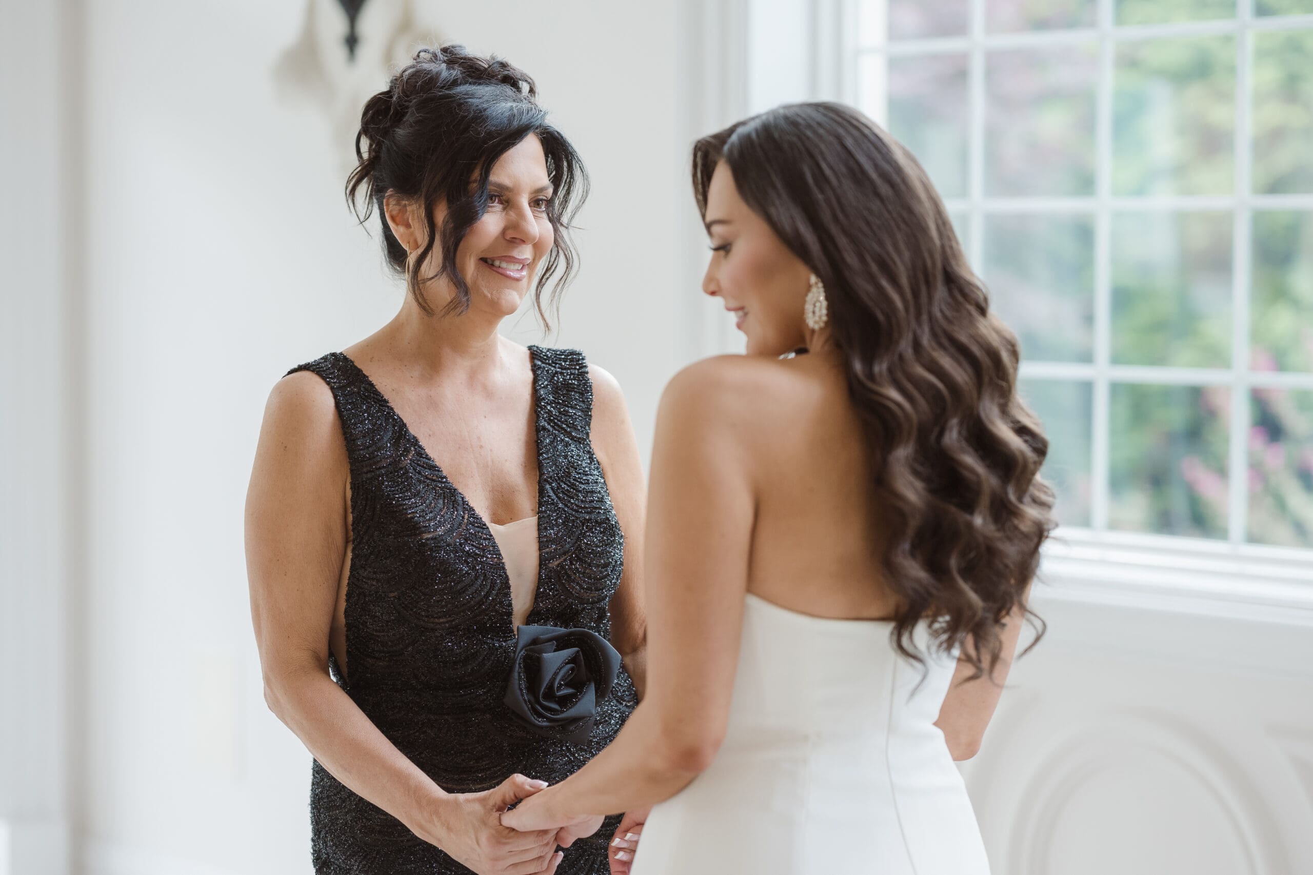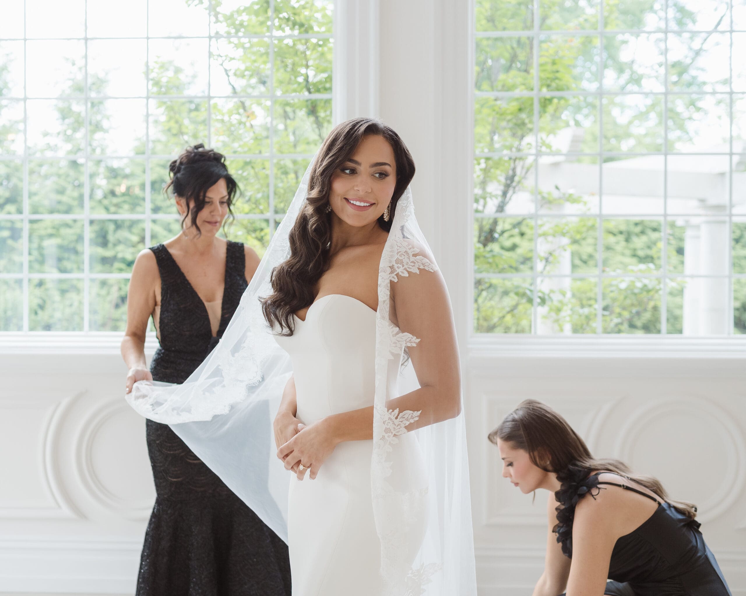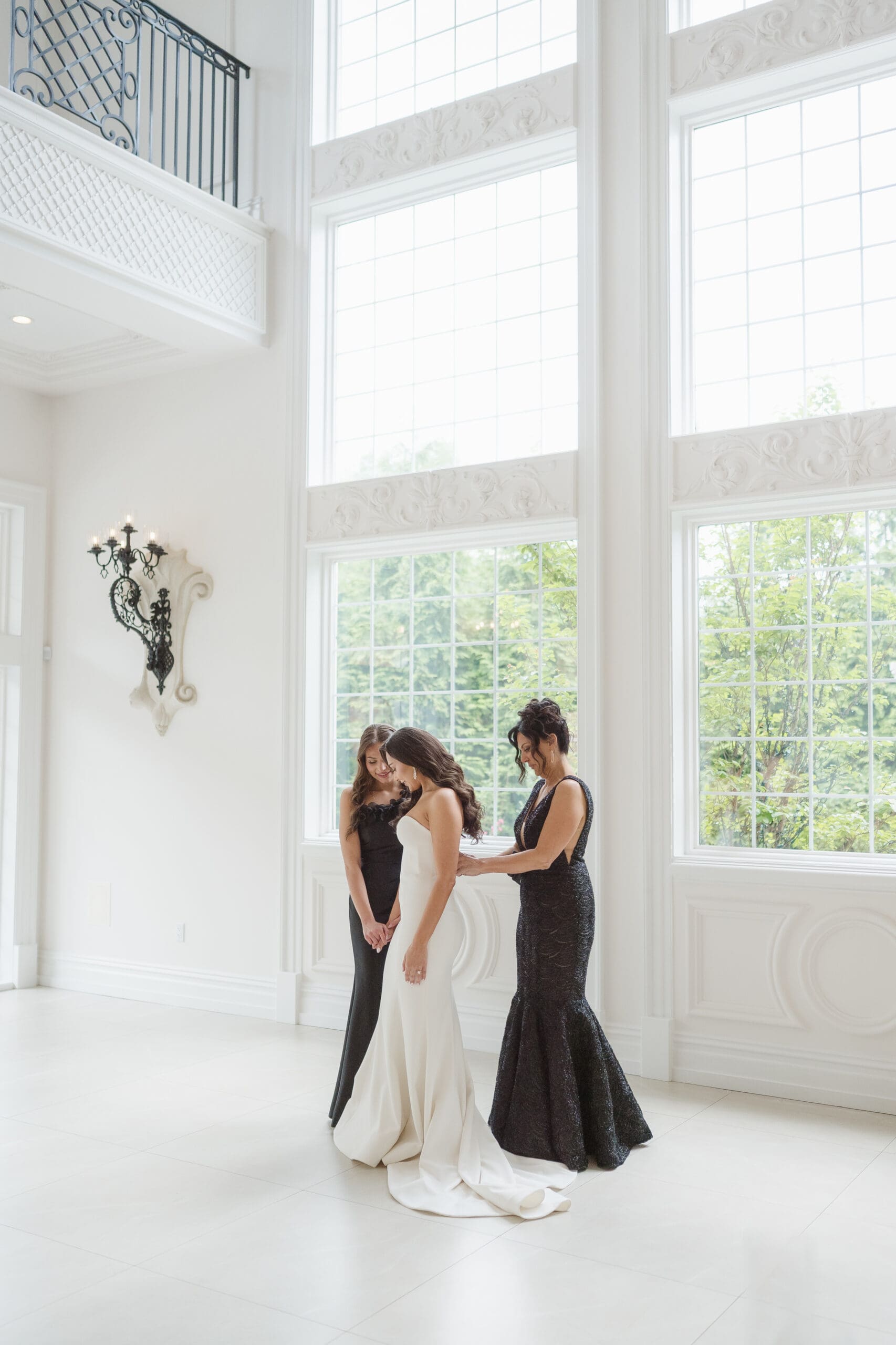 Instead of preparing in the bride and groom suites, we chose to take photos in the ceremony space, as it offered the best lighting while still allowing privacy for each couple’s portrait session. The groom got ready in the lower basement level, near the cocktail hour area, while the bride prepared in the suite on the second level, above the ceremony space.