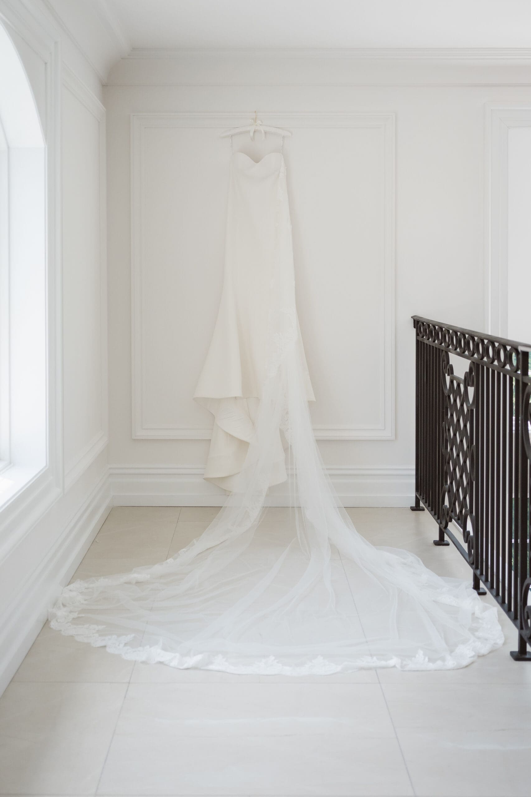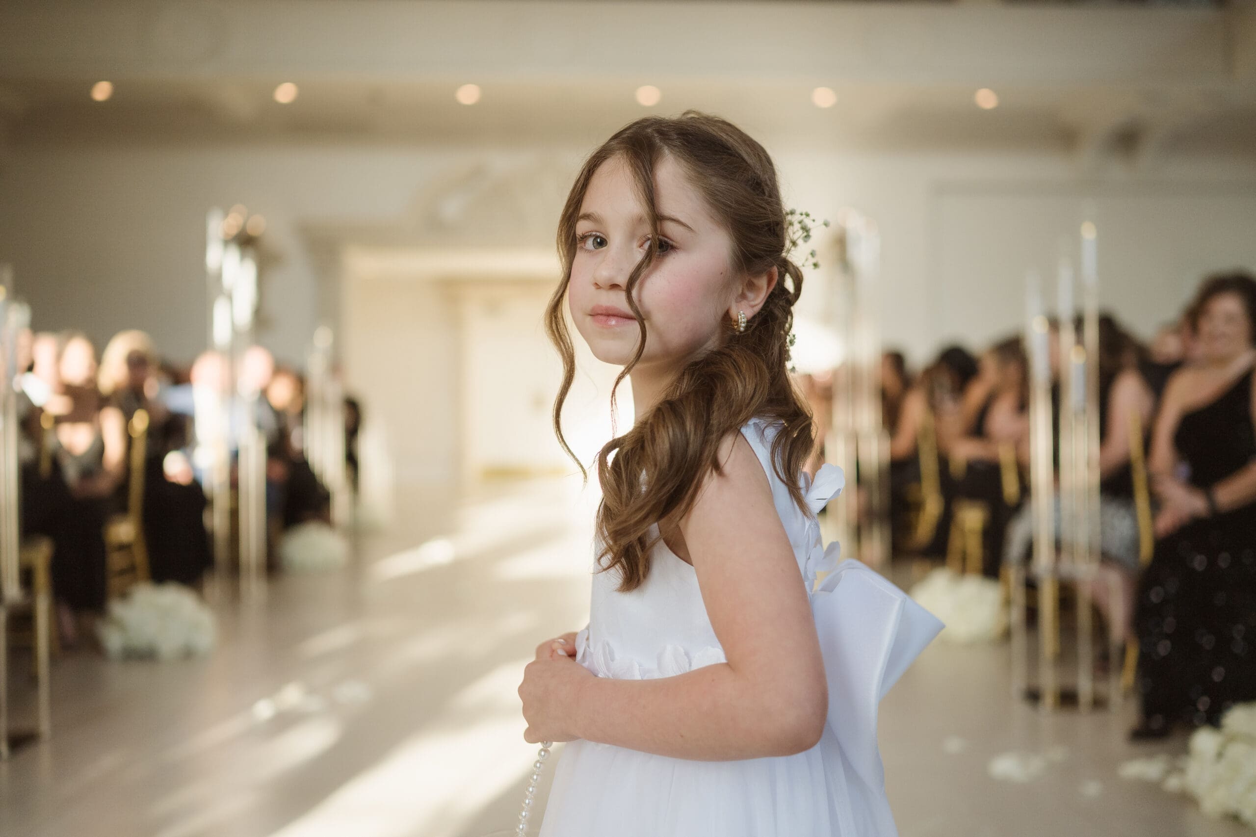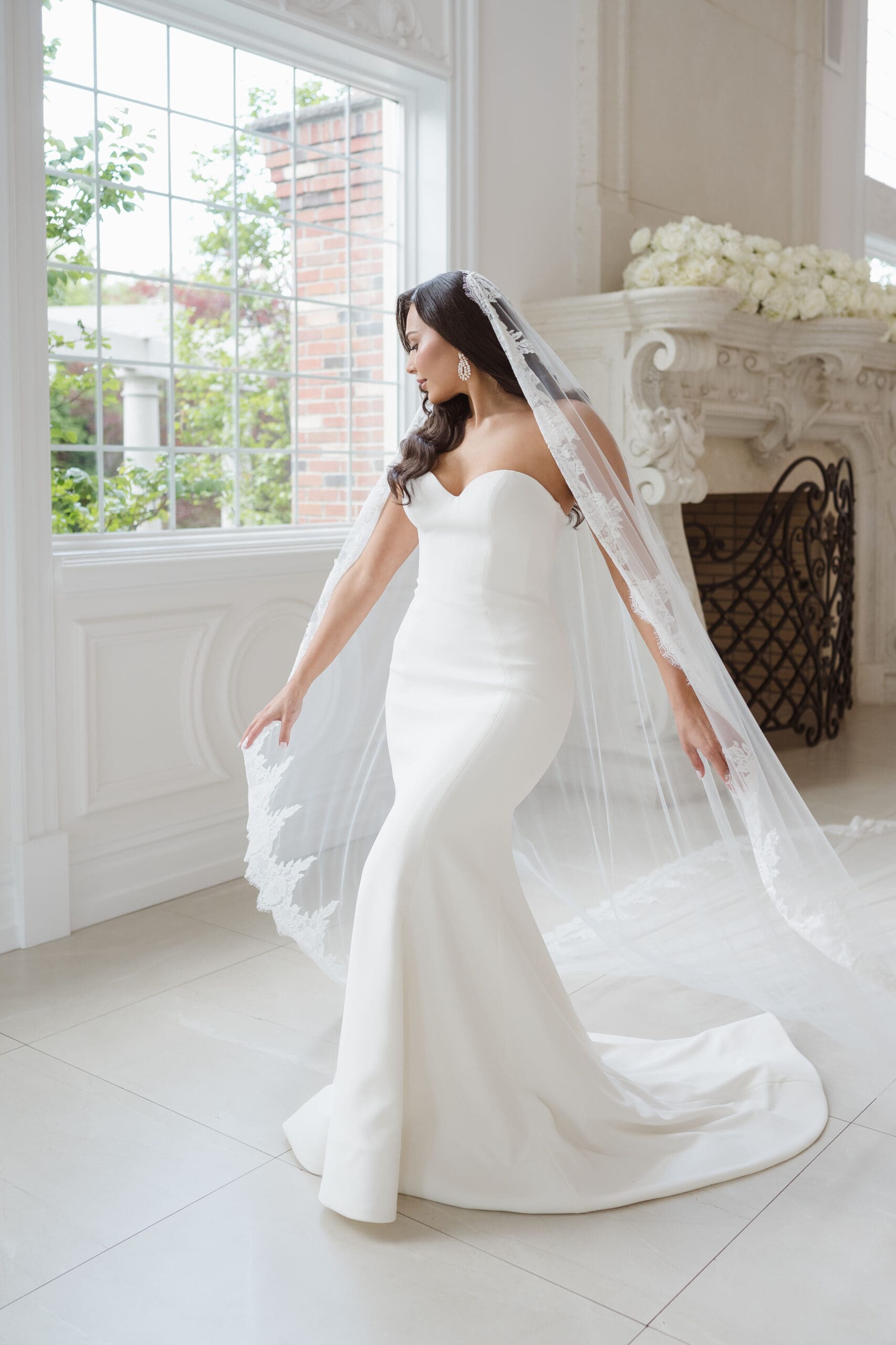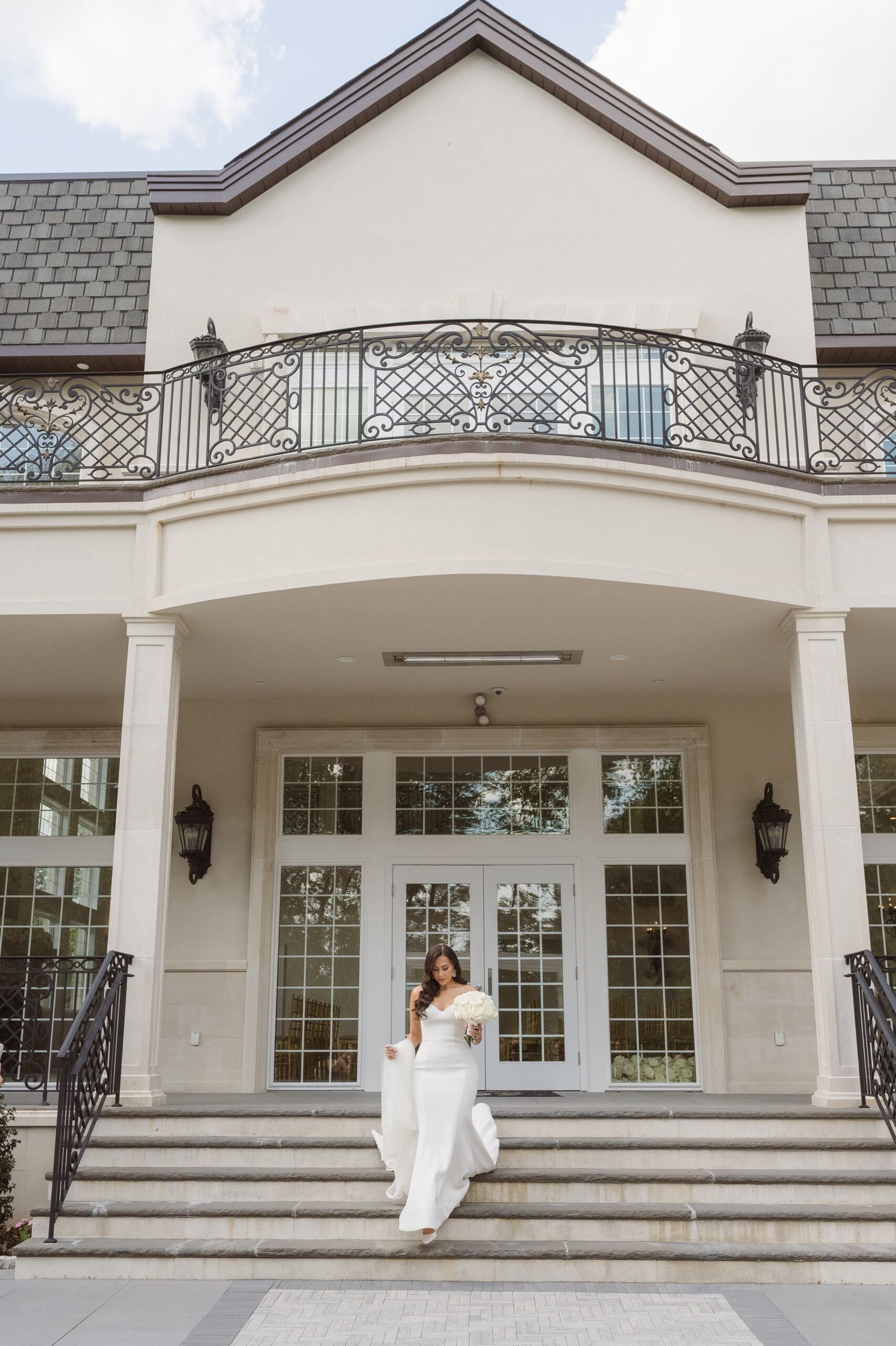 If rain should grace your wedding day, fear not—the ceremony room serves as an ideal location for beautiful portraits. When the weather is on your side, the manicured gardens and surrounding areas turn into breathtaking spots for photos. While some couples may opt for an outdoor ceremony, this couple chose the indoor option, knowing the outdoor space can still create magical photo opportunities with its gorgeous gazebo and columns. The venue itself is a captivating backdrop, ensuring that wedding photographs at the Estate at Florentine Gardens are nothing short of extraordinary.