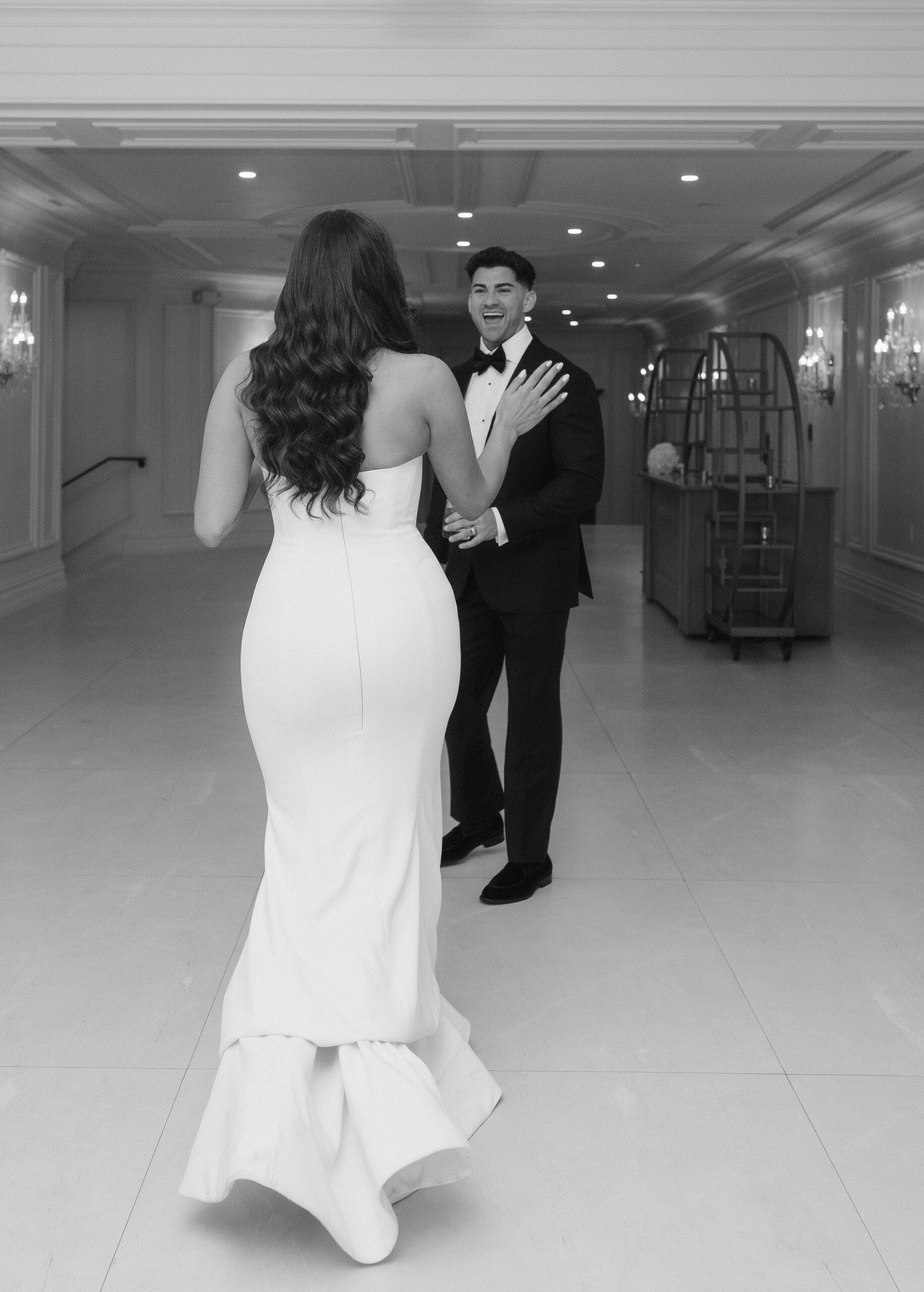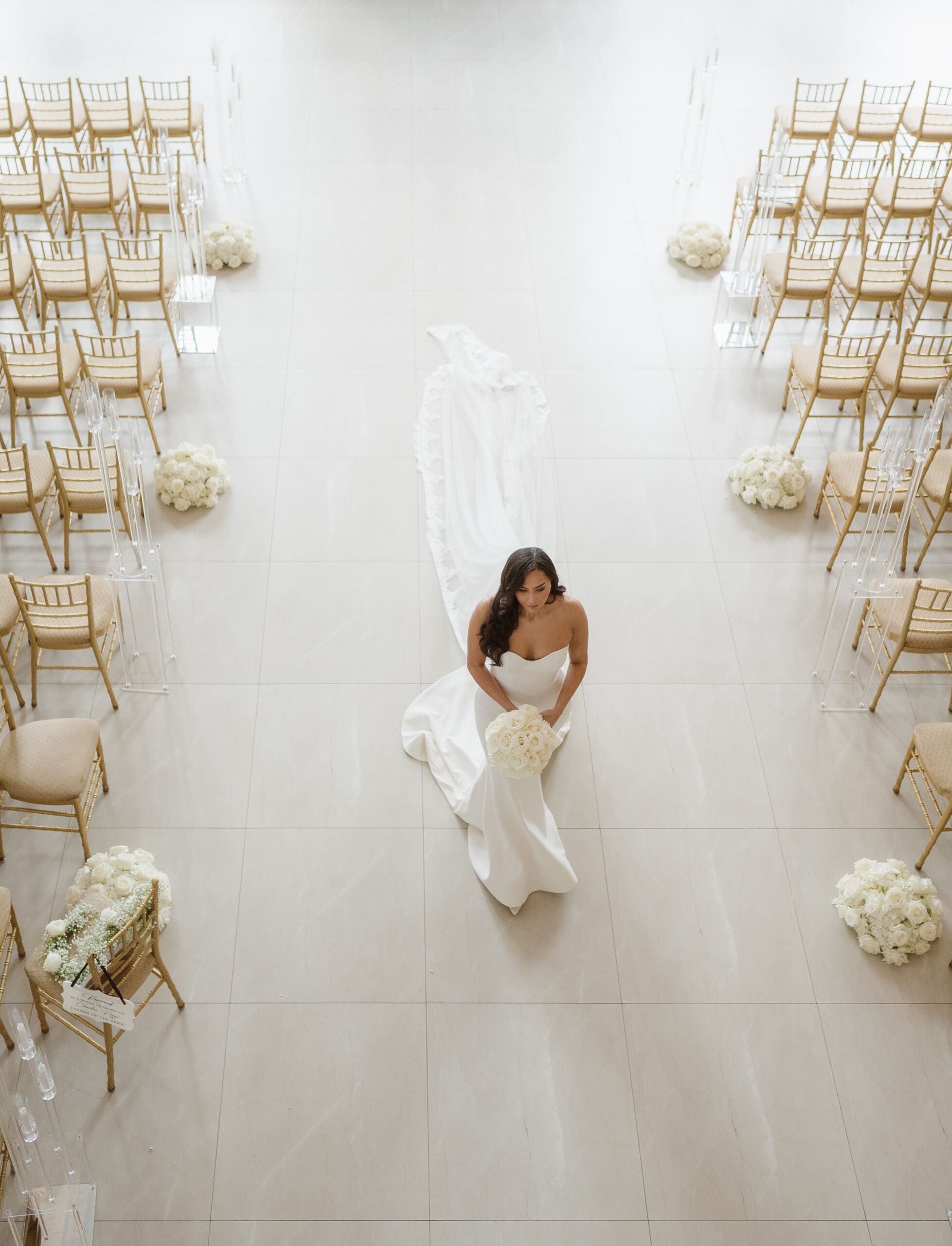 While it’s not recommended to take photos in the bridal suite, the elegant, high-ceilinged, three-level ceremony room offers the perfect backdrop for stunning wedding photos at the Florentine Gardens. Be sure to communicate with your floral designer to have everything ready for your first look and portraits.