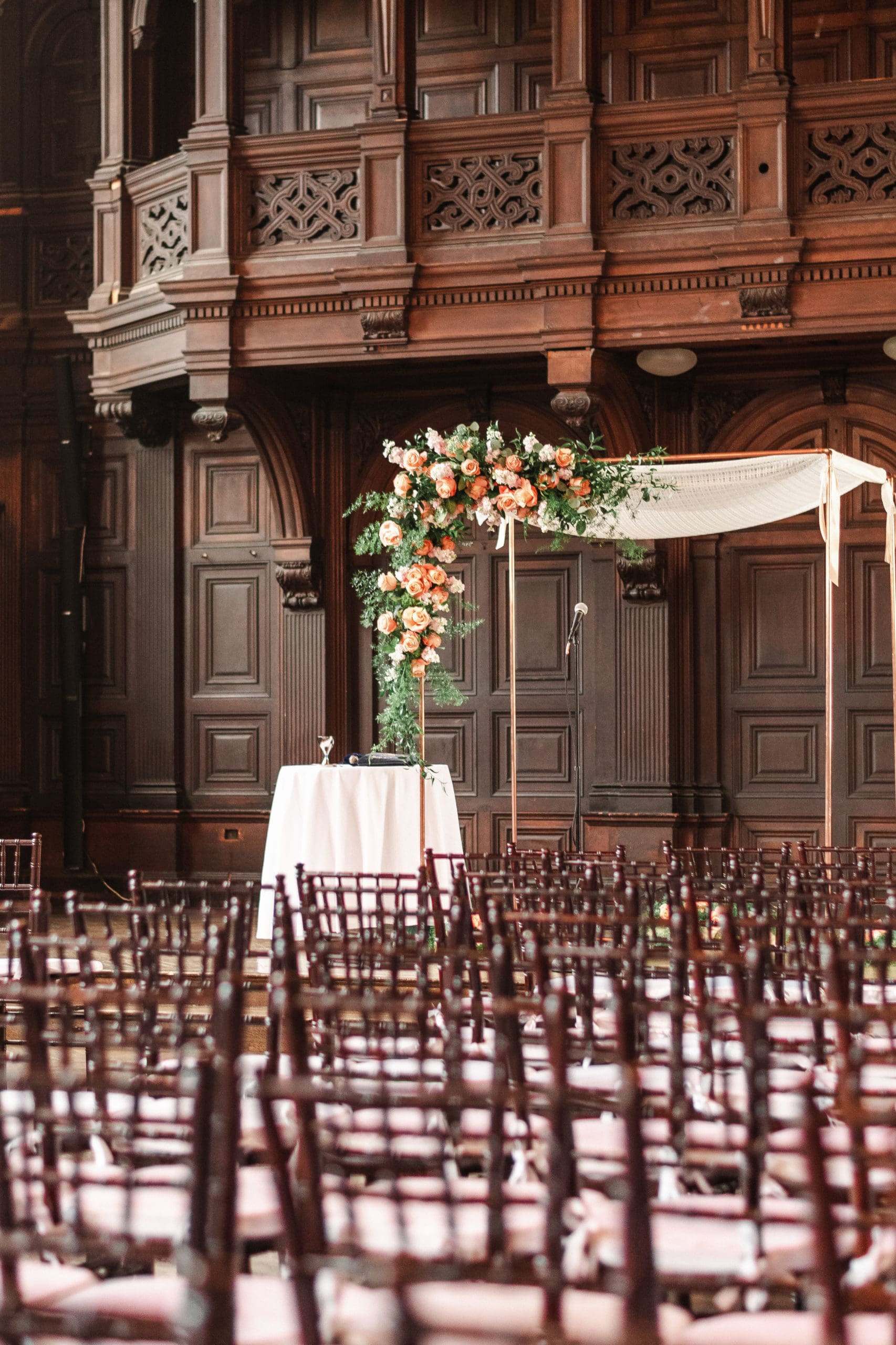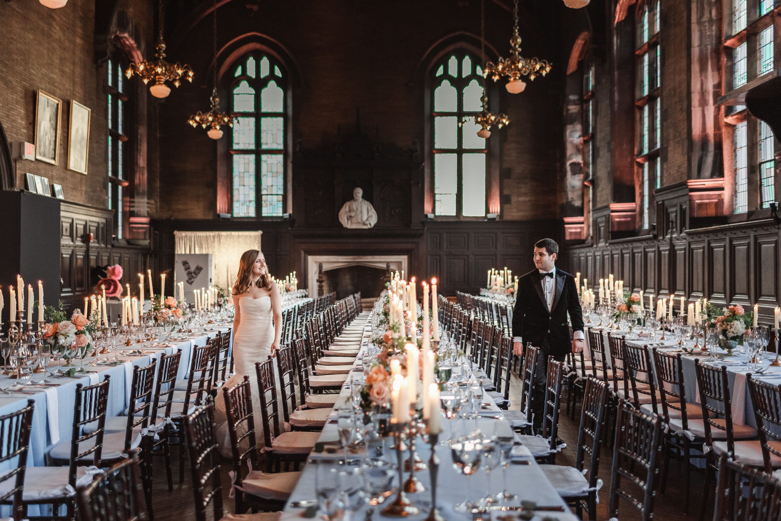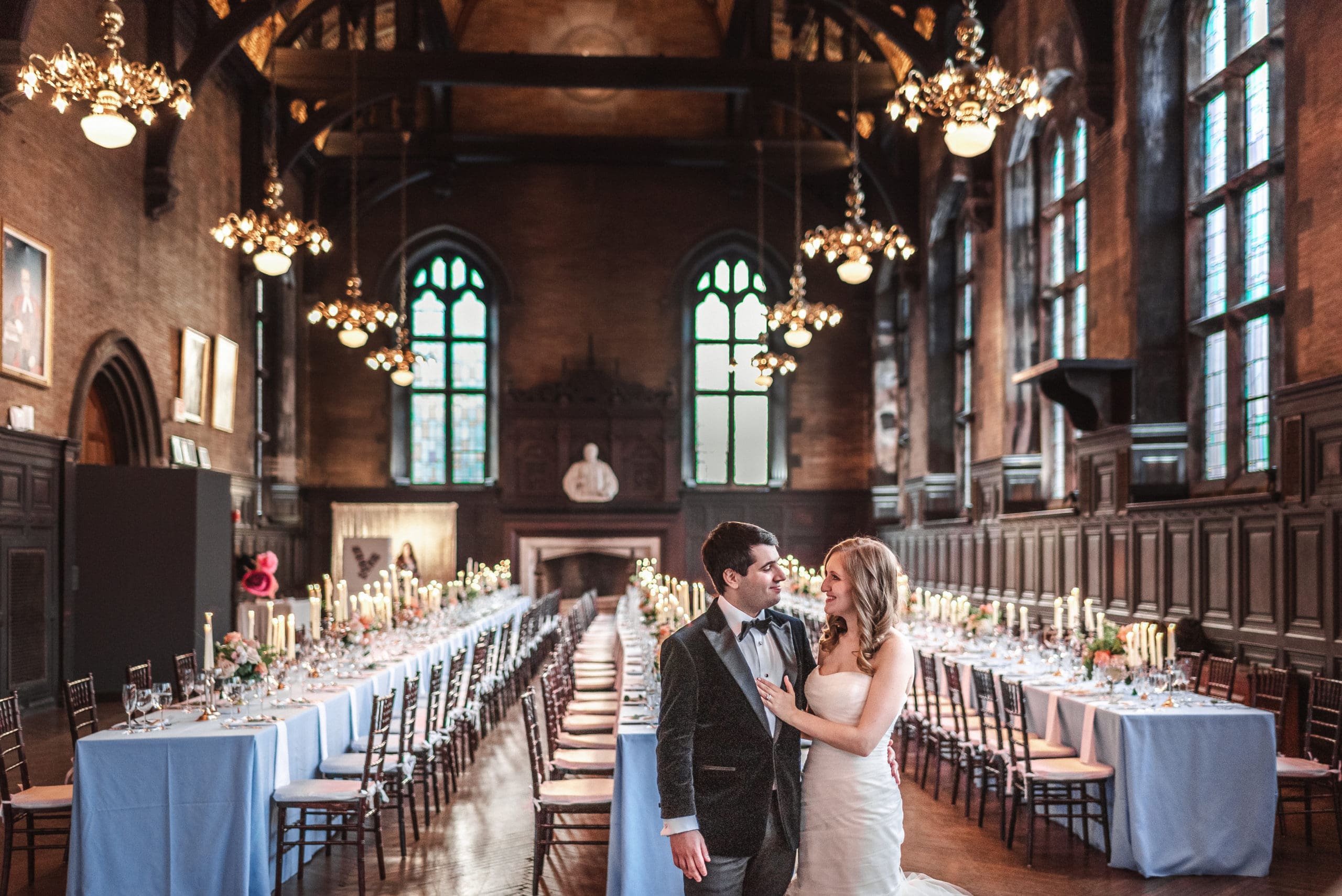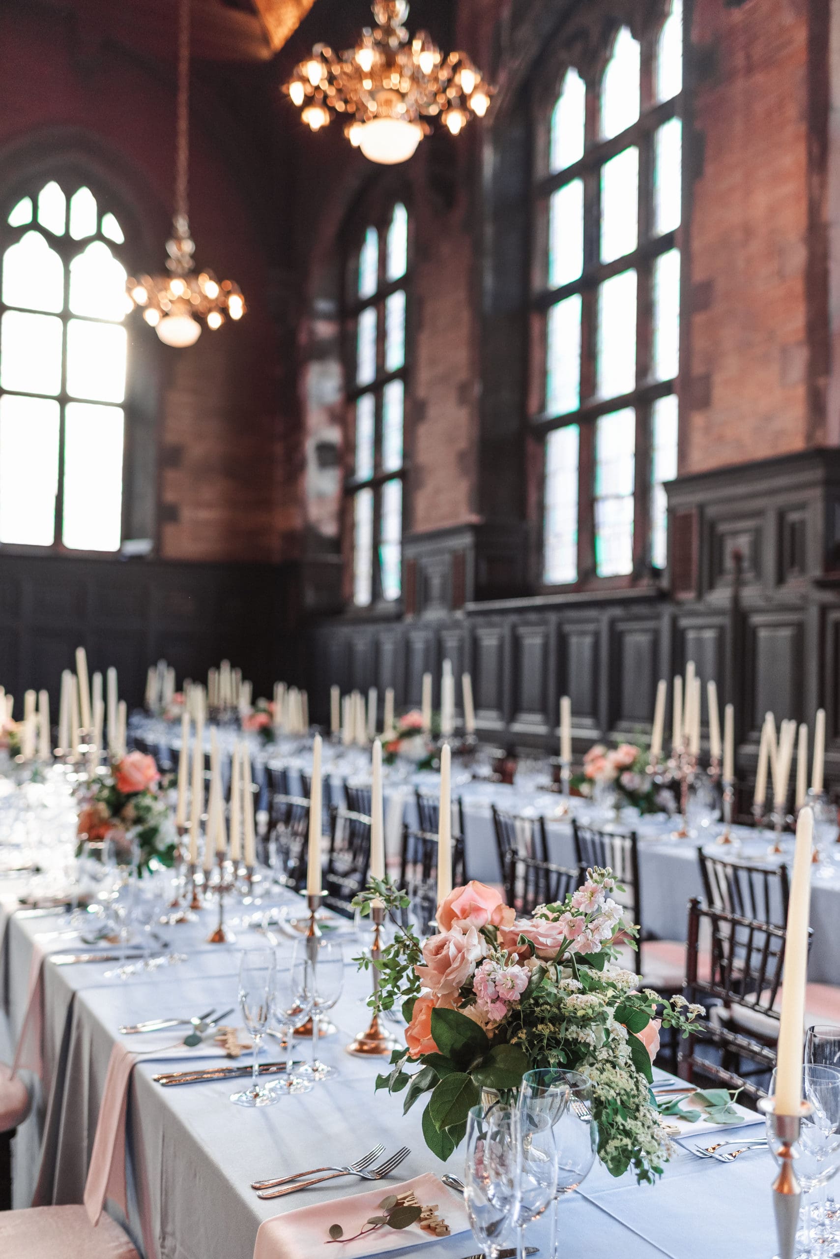 This wedding ceremony location doubled as the reception venue as well. So beautiful – gothic and old-world NYC touched. I was getting Harry Potter vibes while photographing in this iconic NYC wedding venue. The couple did bring some spring theme touches to the floral design.