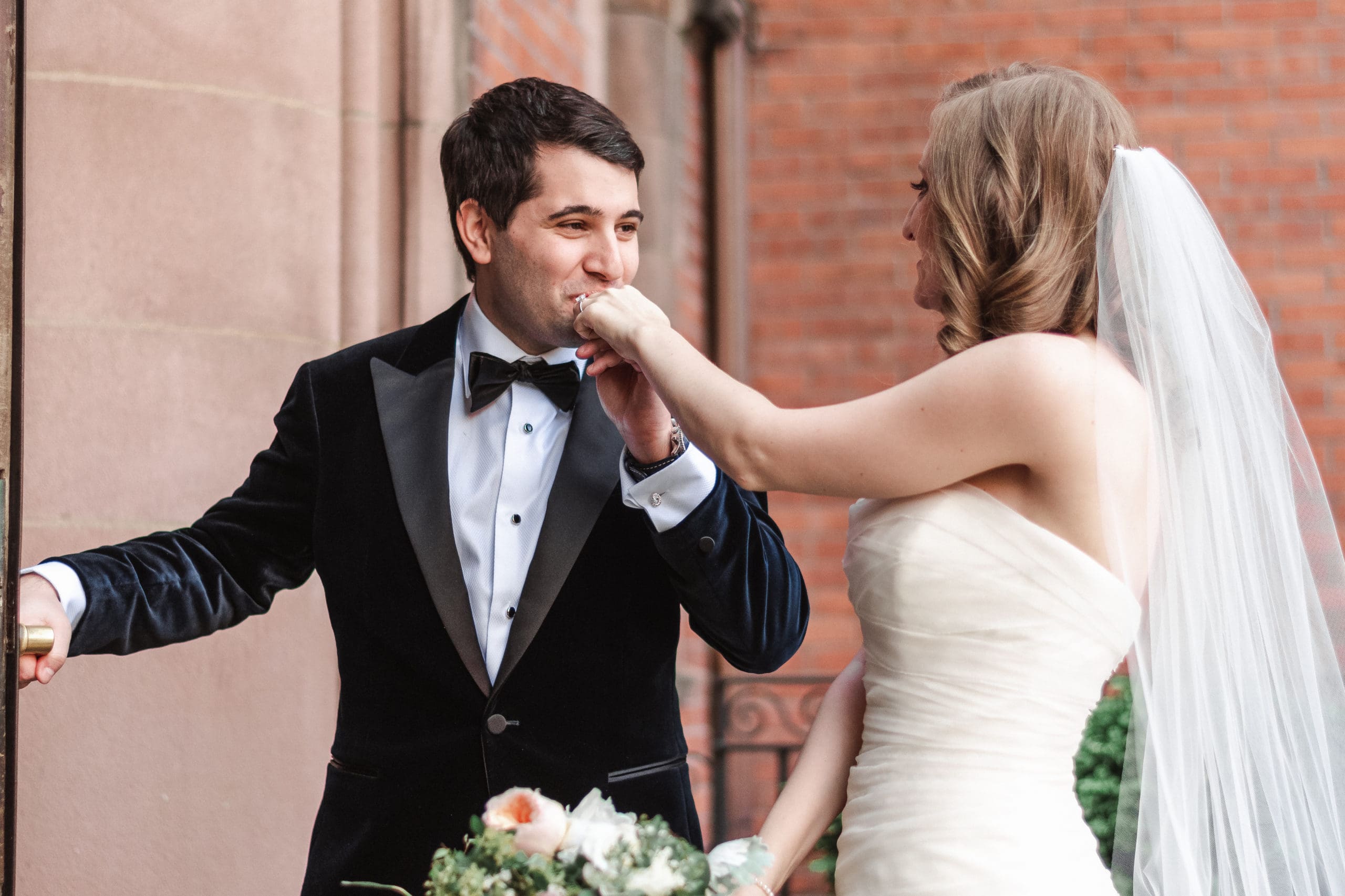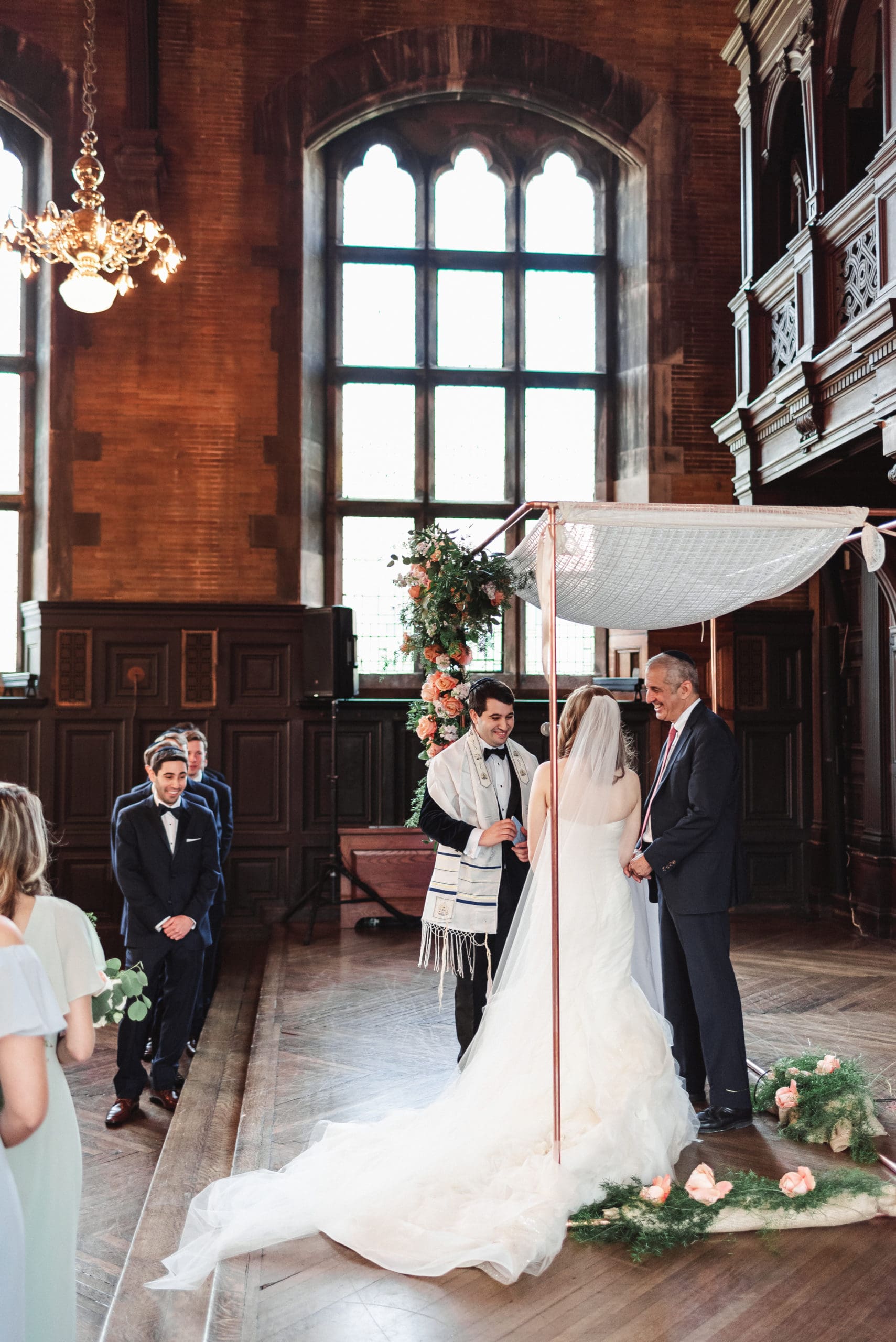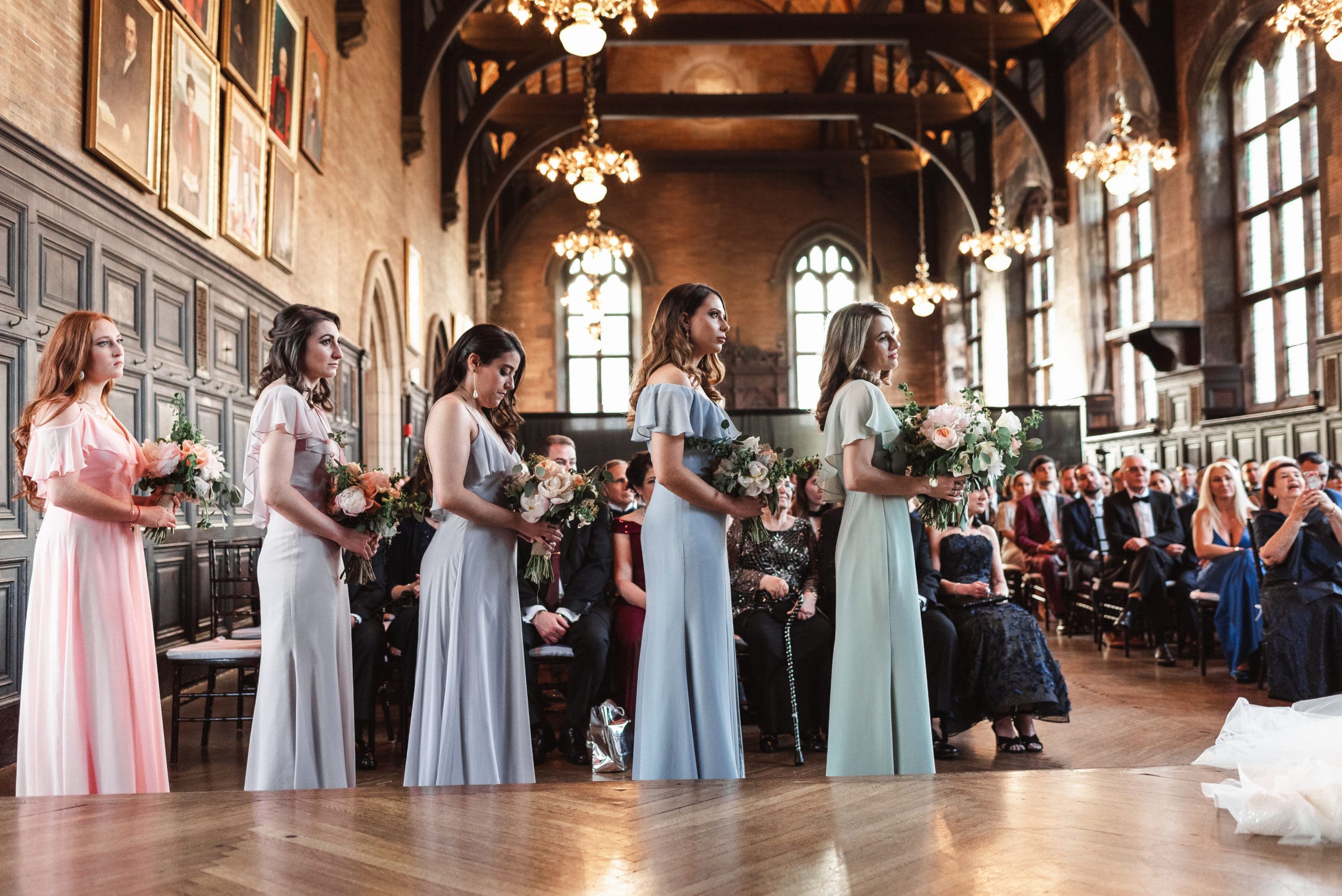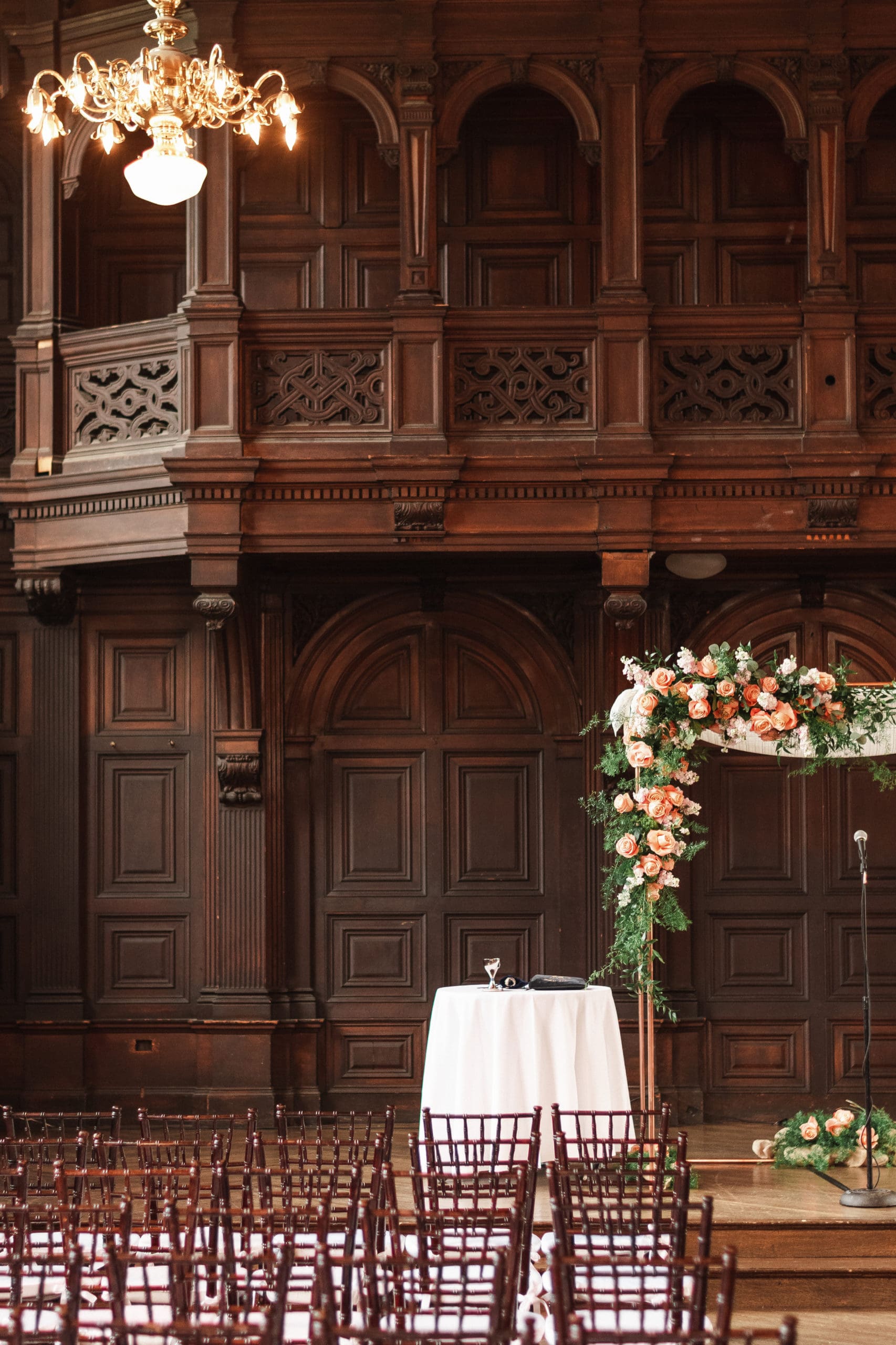 This wedding ceremony location doubled as the reception venue as well. So beautiful – gothic and old-world NYC touched. I was getting Harry Potter vibes while photographing in this iconic NYC wedding venue. The couple did bring some spring theme touches to the floral design.