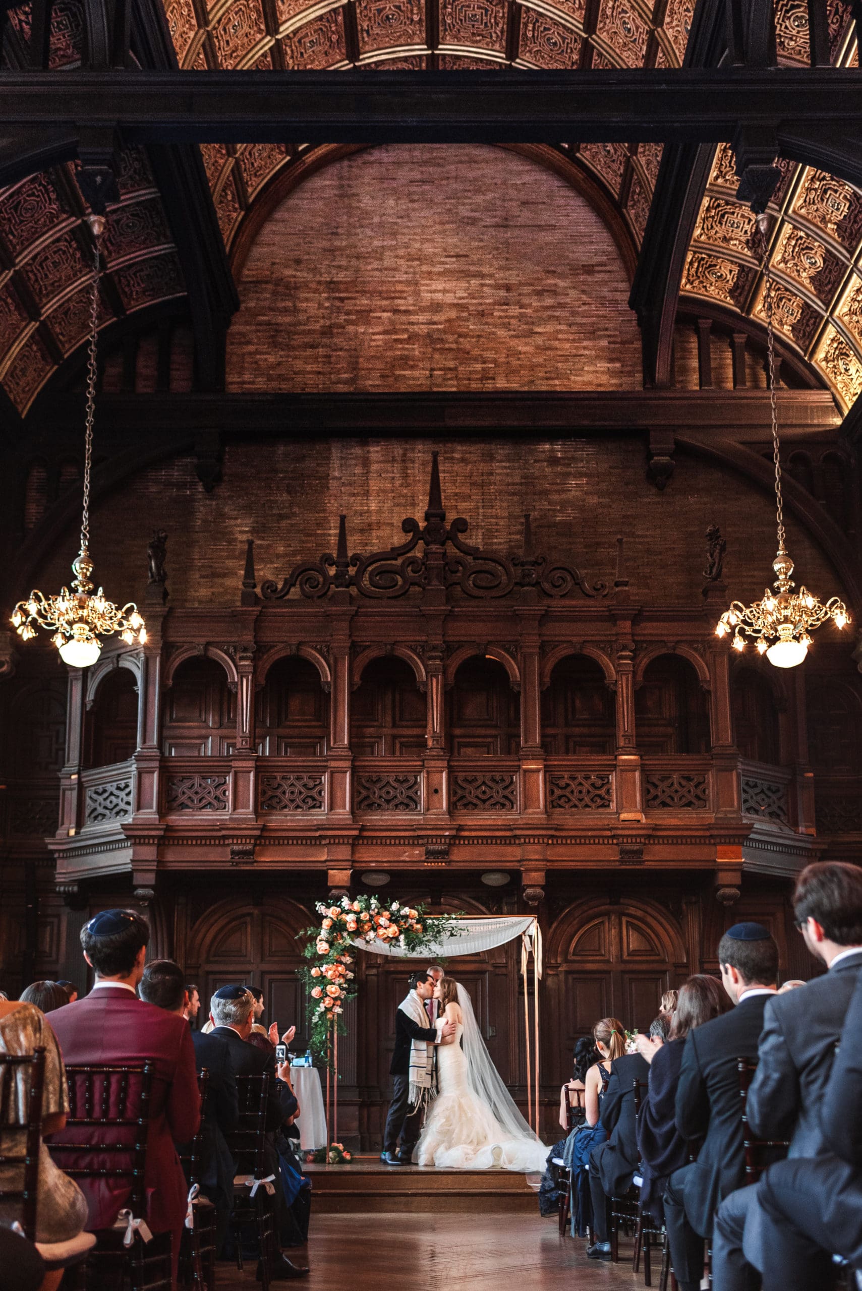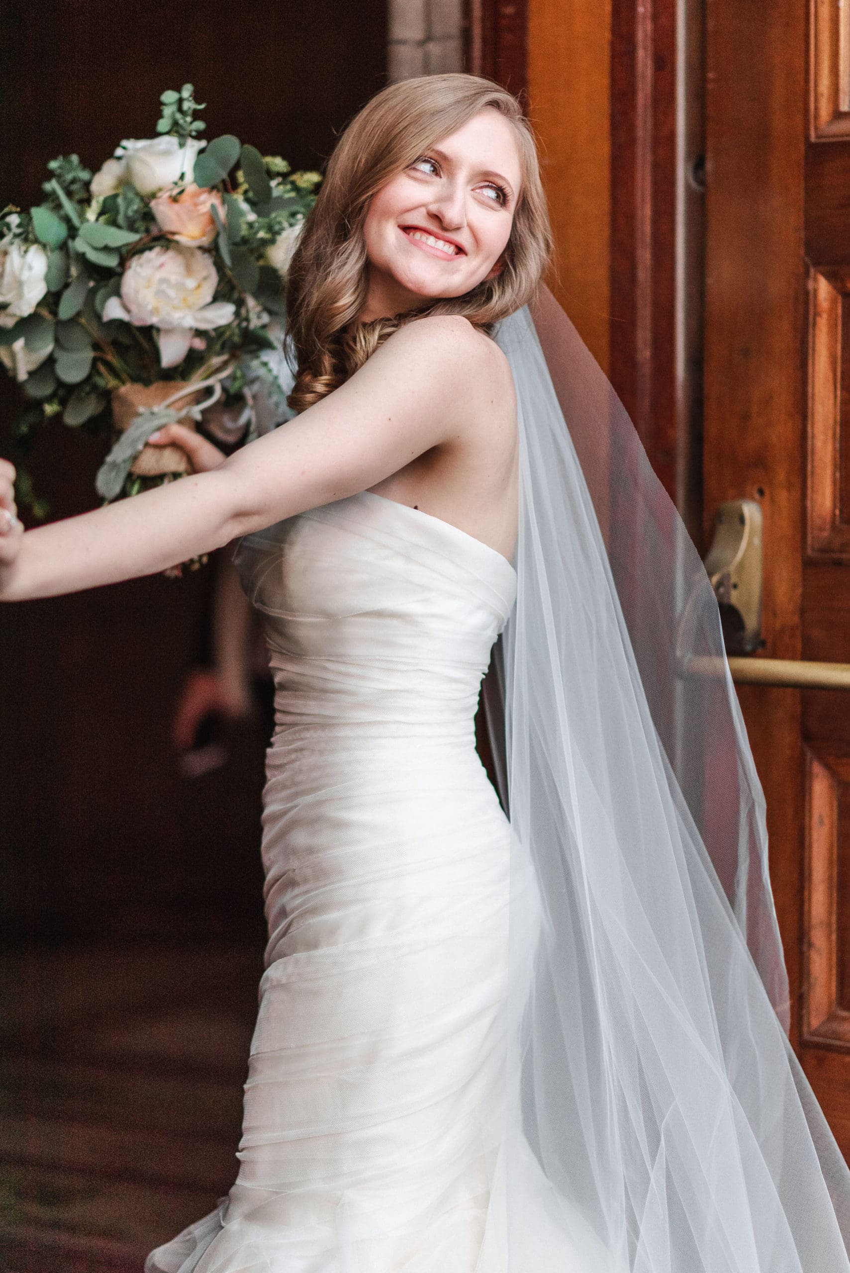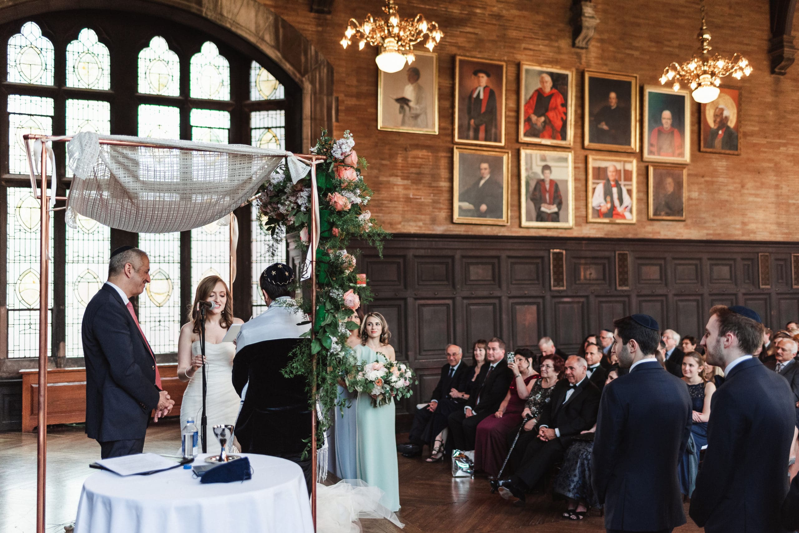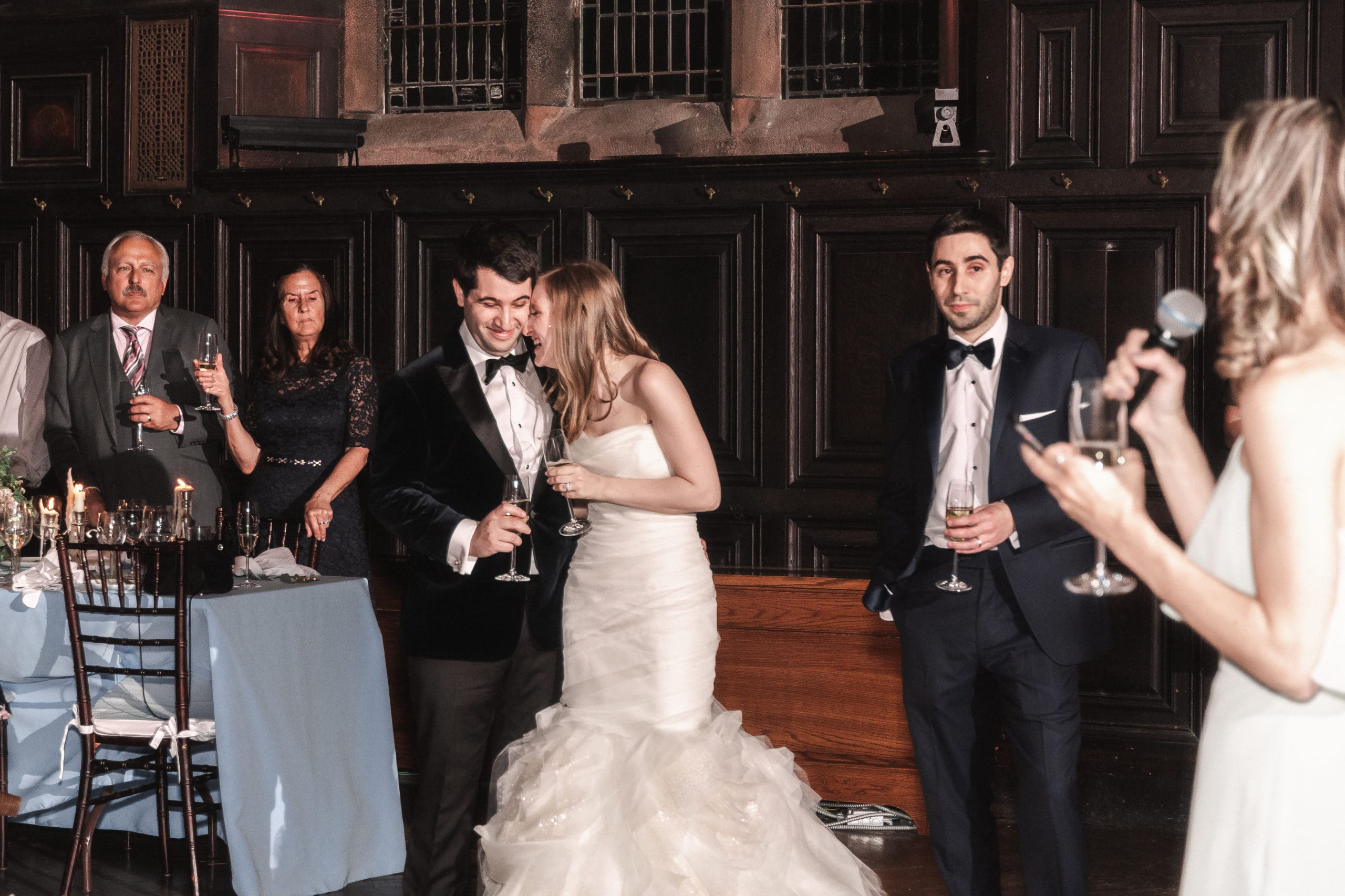 This wedding ceremony location doubled as the reception venue as well. So beautiful – gothic and old-world NYC touched. I was getting Harry Potter vibes while photographing in this iconic NYC wedding venue. The couple did bring some spring theme touches to the floral design.