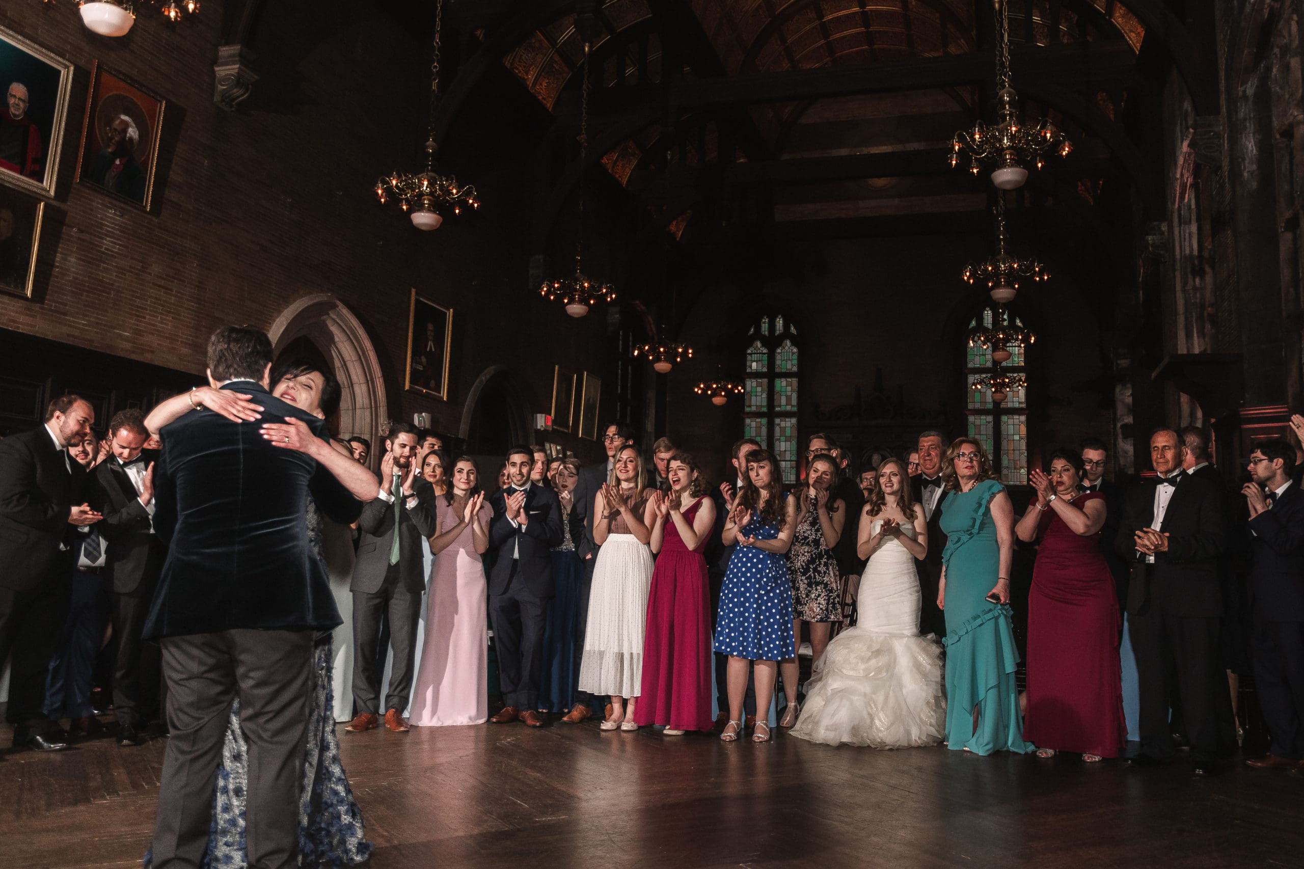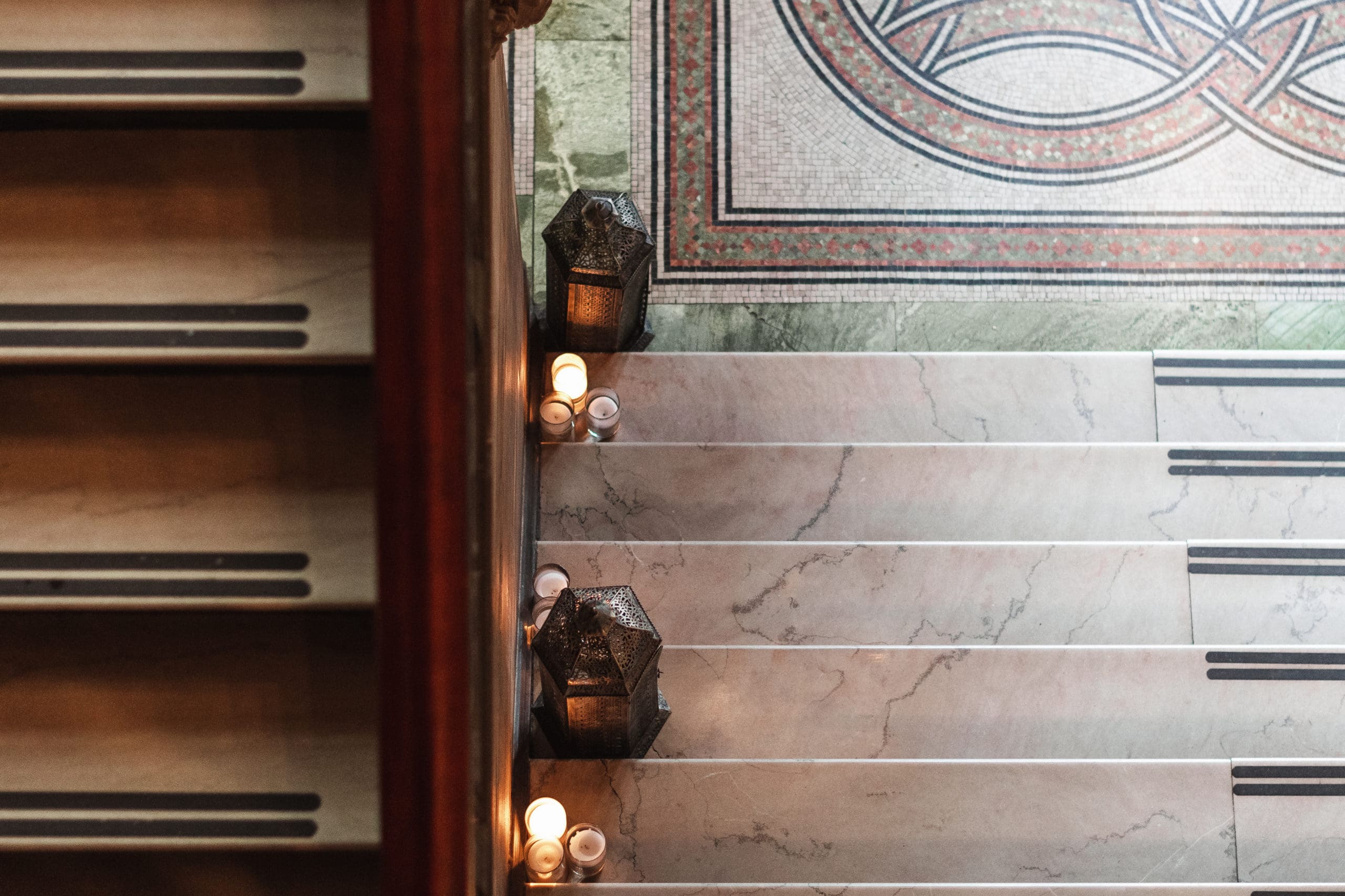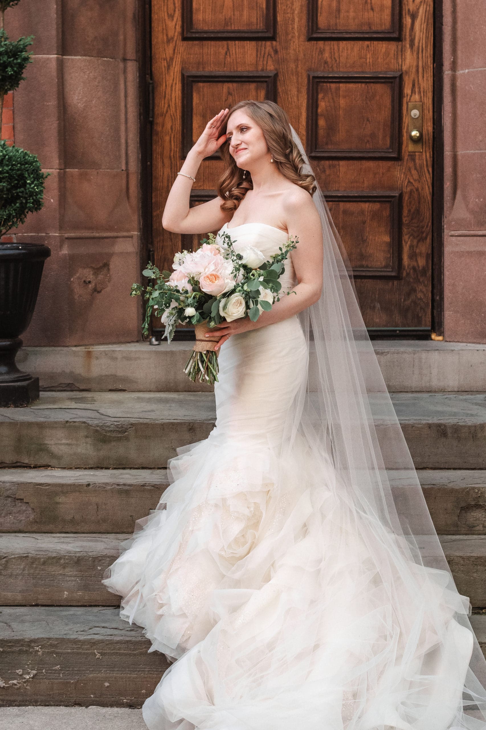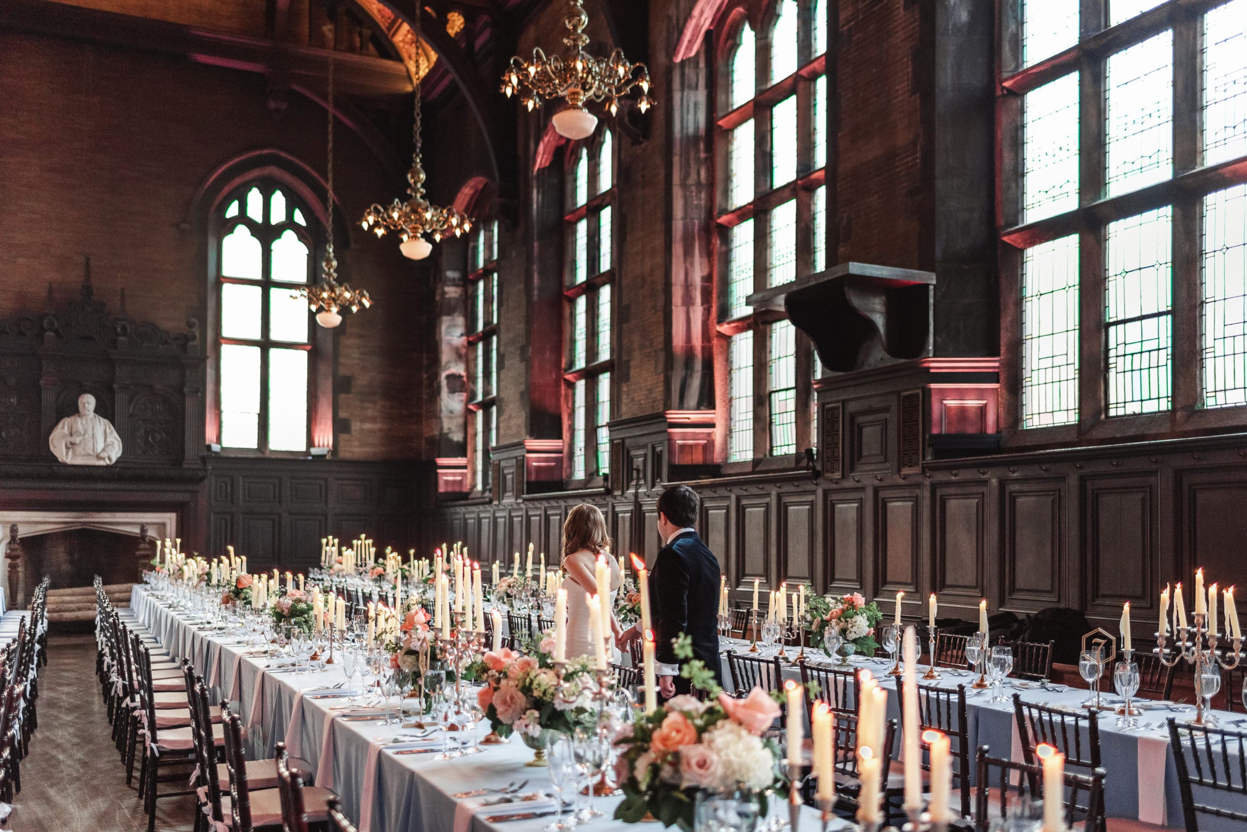 This wedding ceremony location doubled as the reception venue as well. So beautiful – gothic and old-world NYC touched. I was getting Harry Potter vibes while photographing in this iconic NYC wedding venue. The couple did bring some spring theme touches to the floral design.
