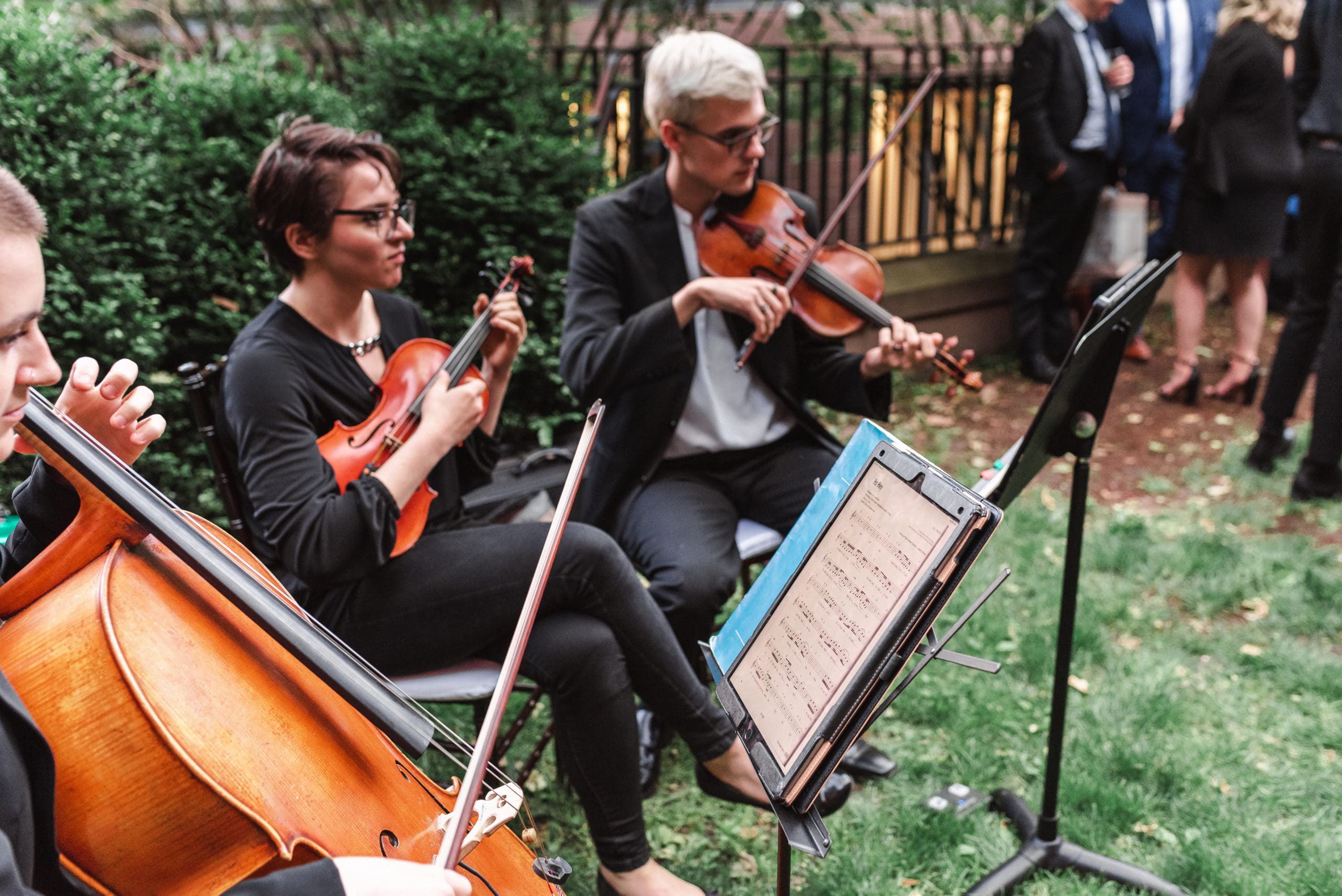The outdoor cocktail hour is a private space for your guests to mingle. There was a 3-piece band performing string music which set the vibe.