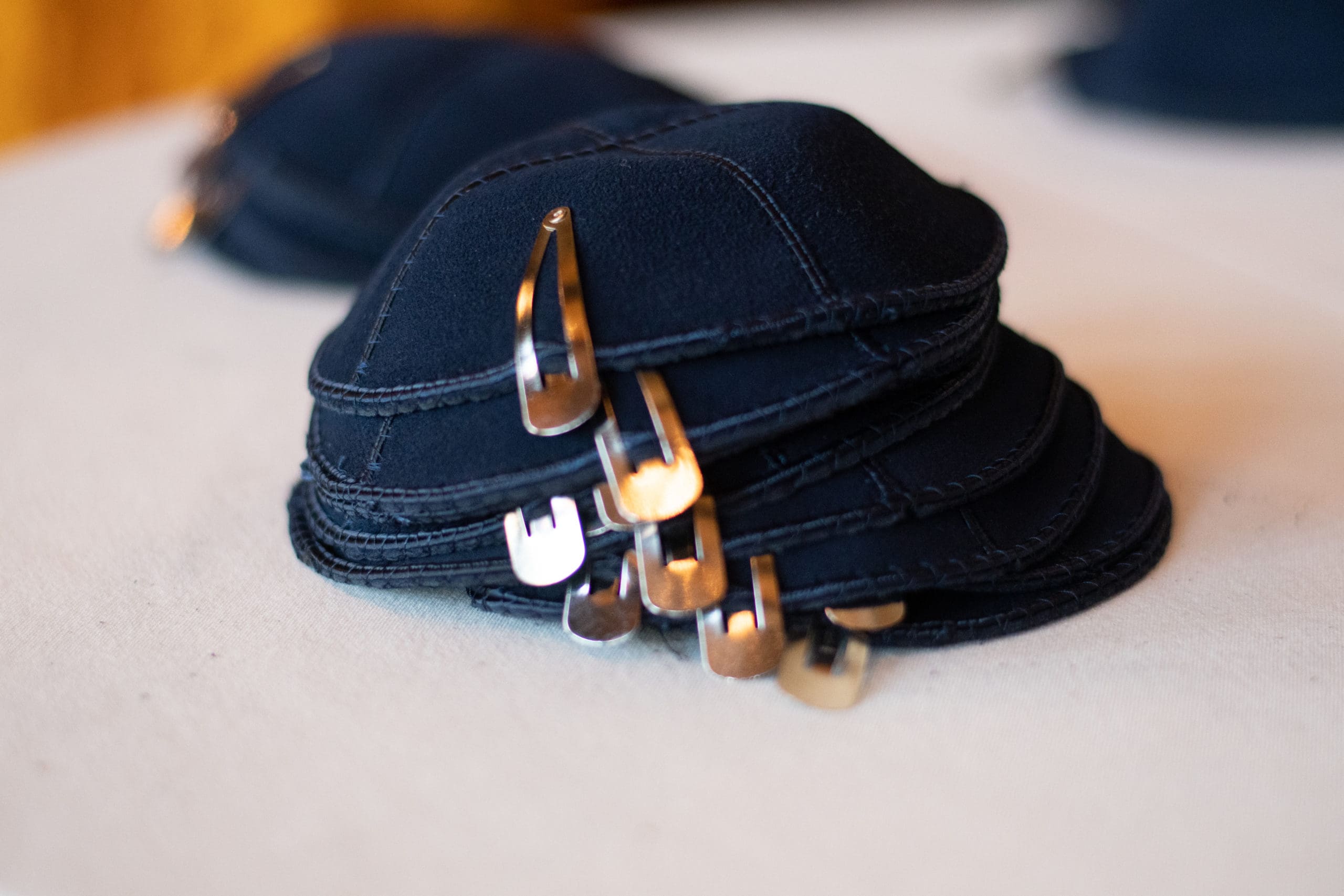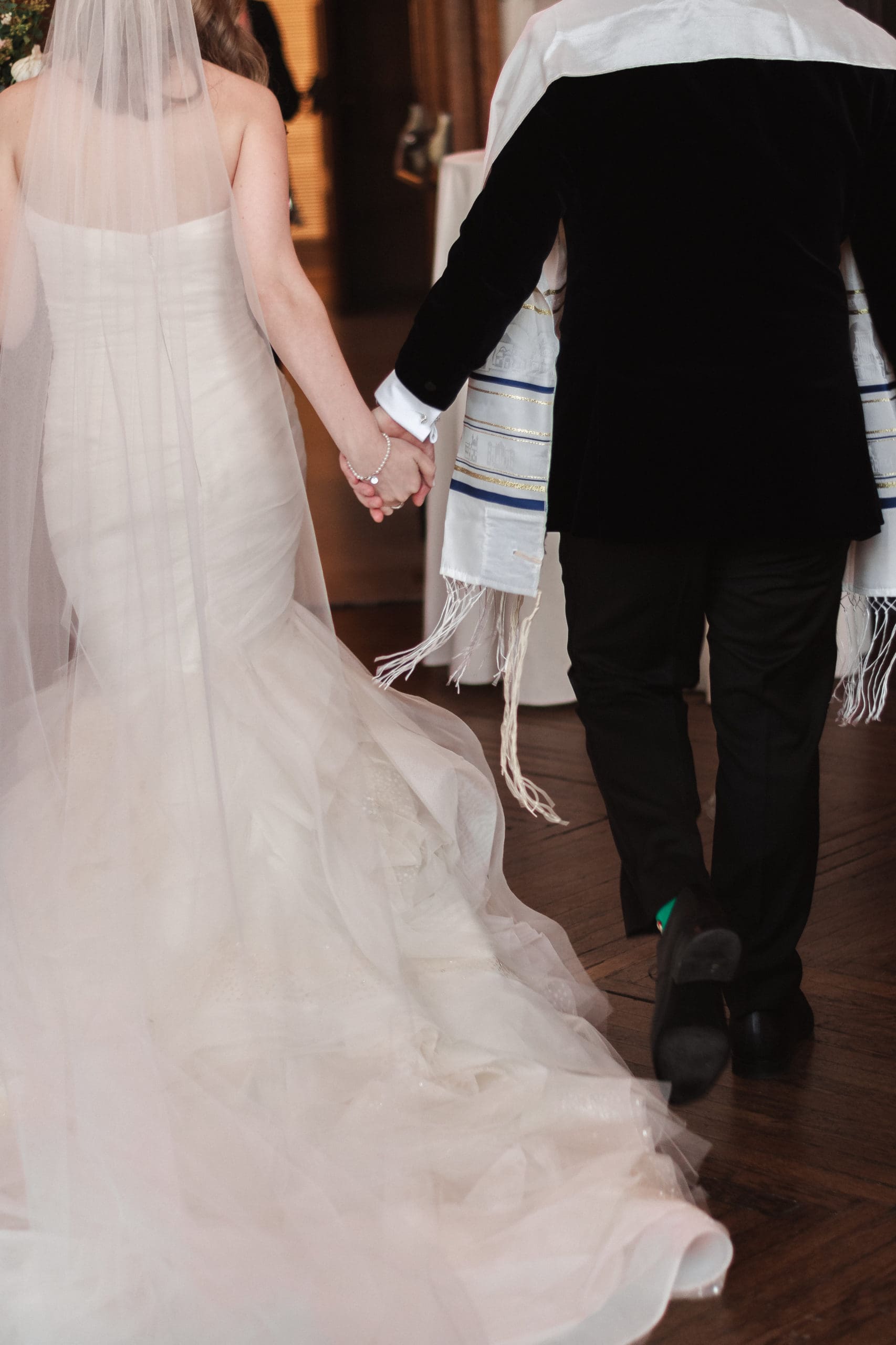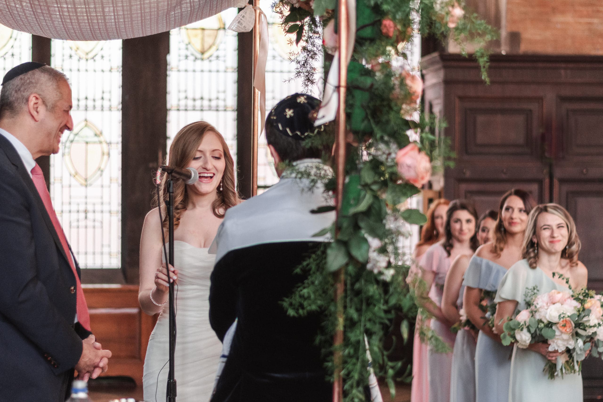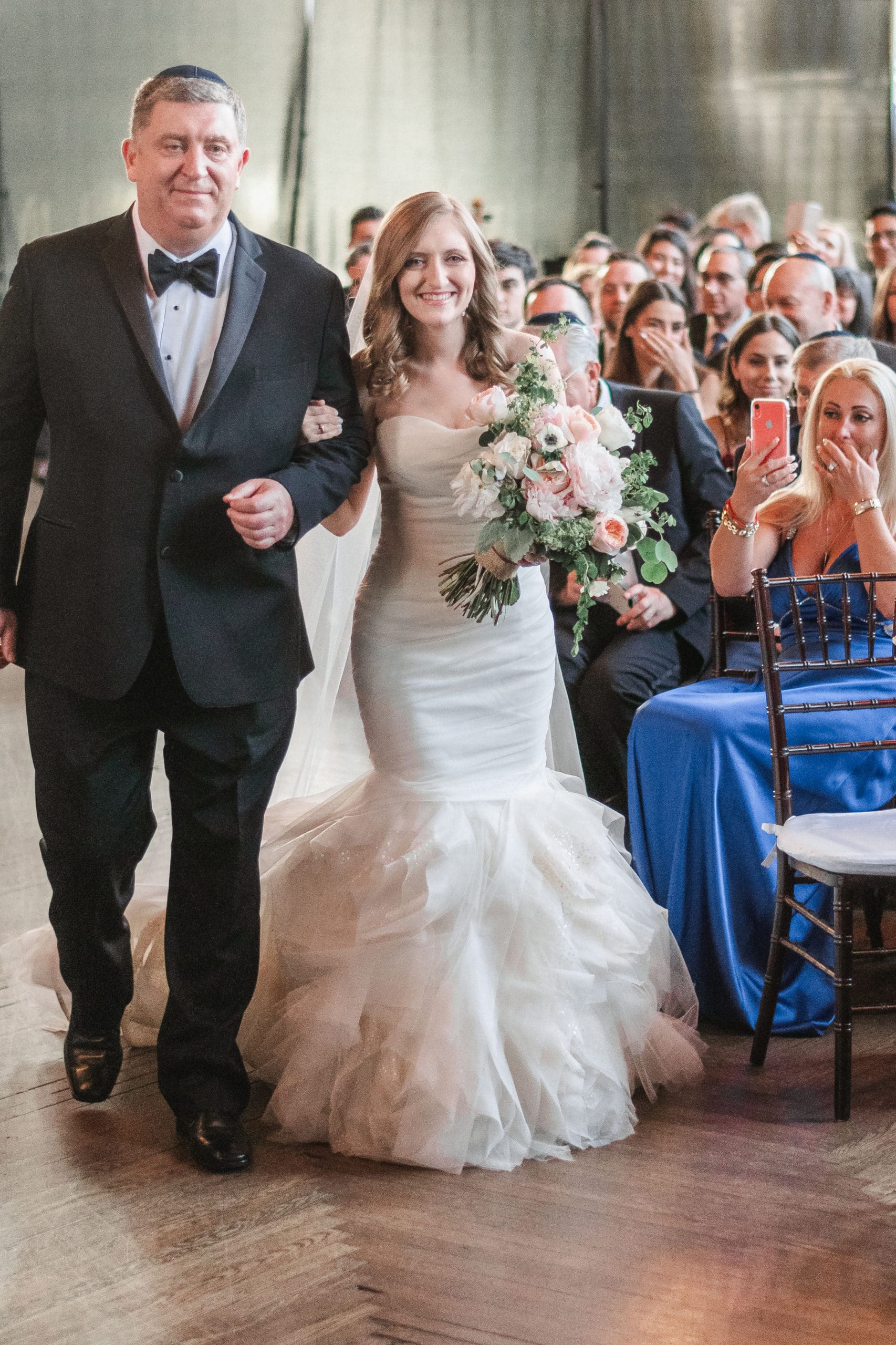 This wedding photograhy gallery at the High Line Hotel in NYC mixed the springtime season with the dark – the theme of the wedding venue quite nicely. The pastel blues and pinks and ivory touches surprisingly worked well at this Jewish wedding. A really cool touch is that the rows of tables inside the reception hall have hundreds of REAL lit candles as centerpiecces. The ambiance was beautiful because of it when the lights turned down.