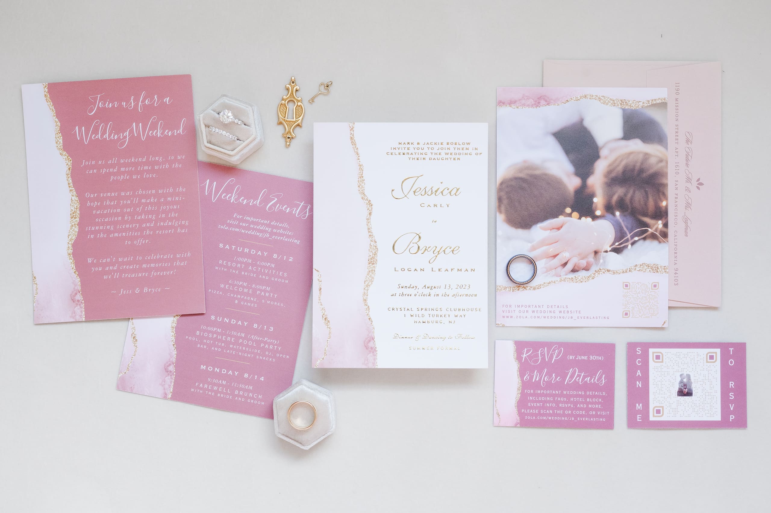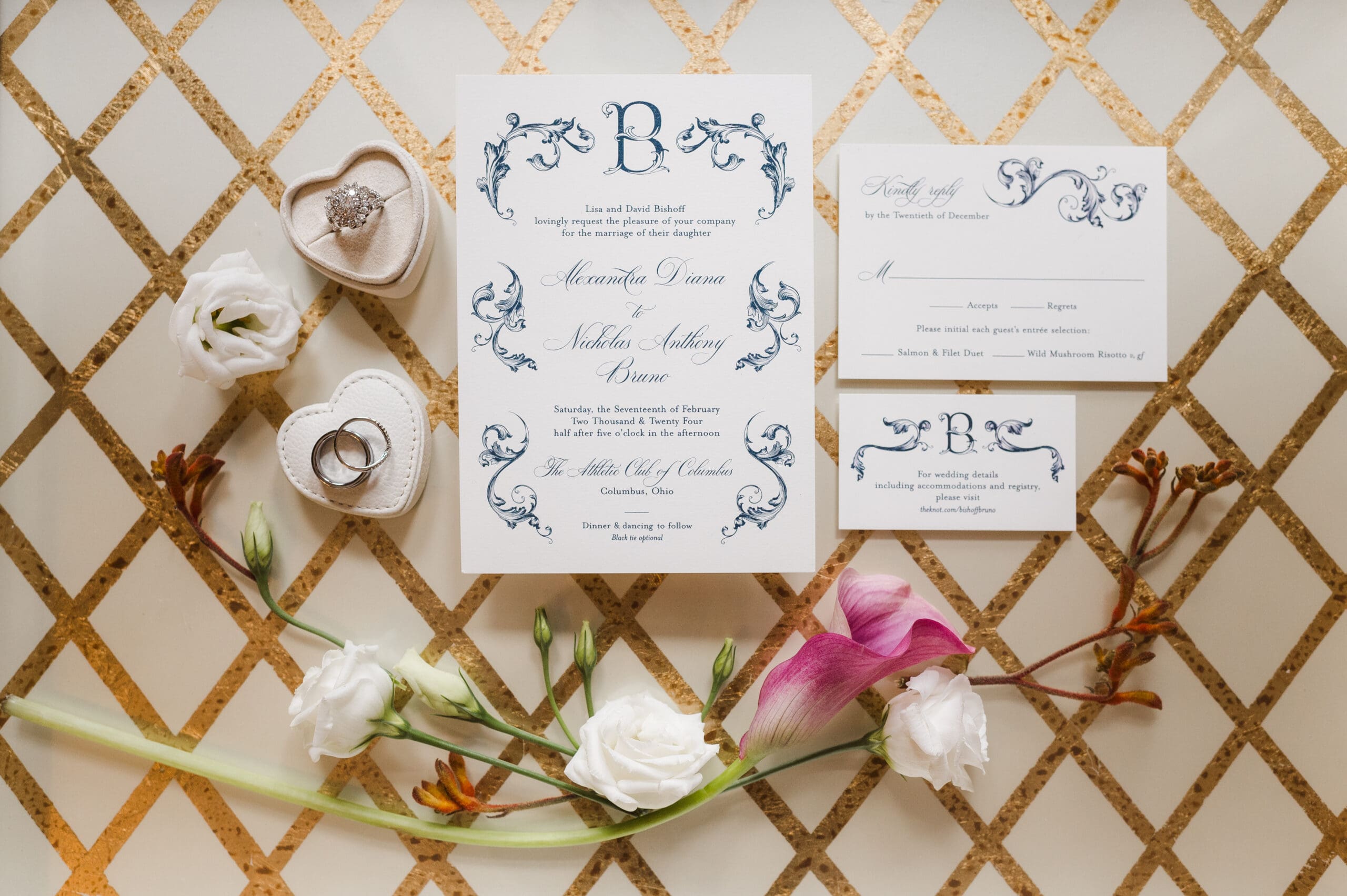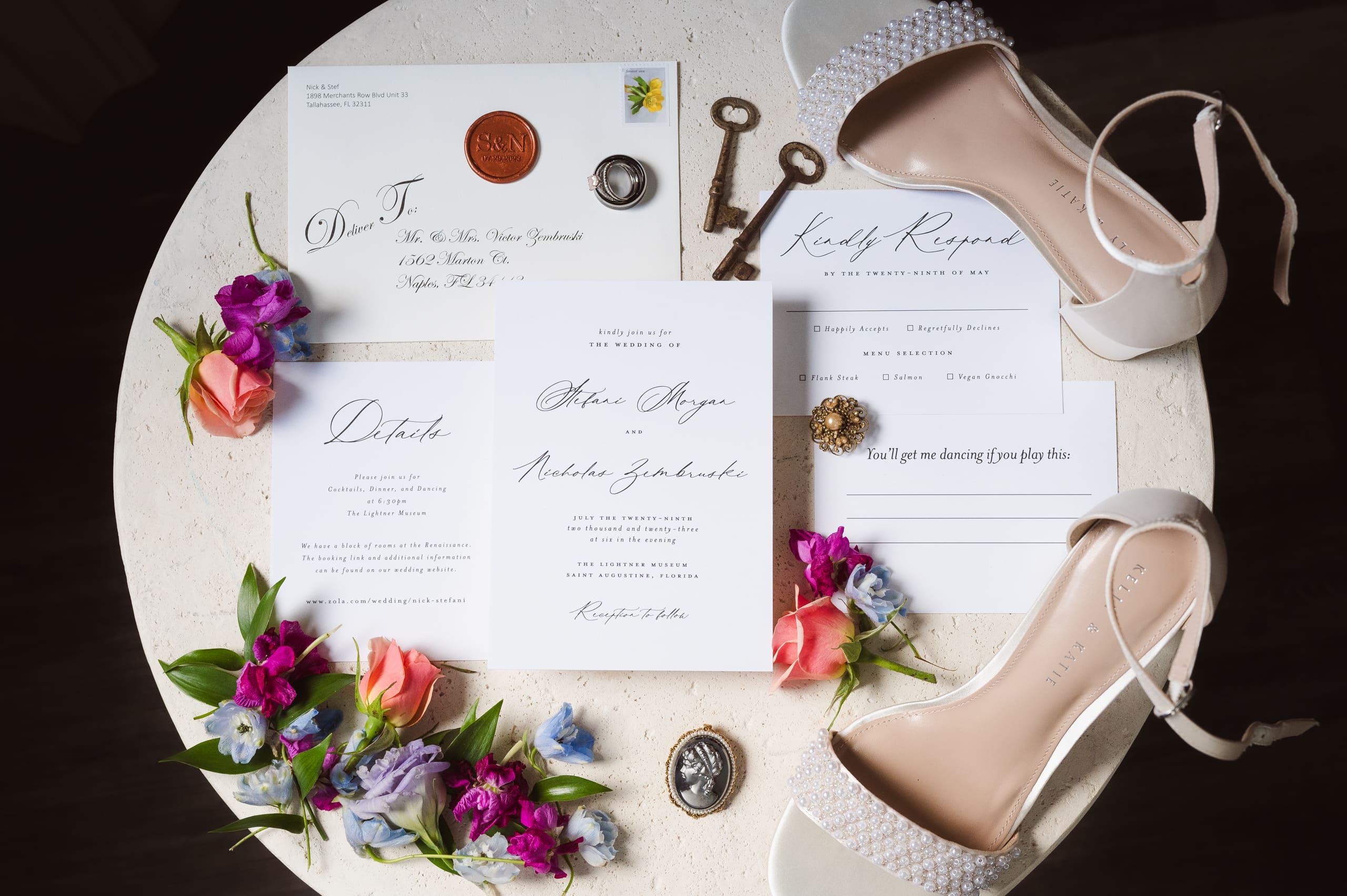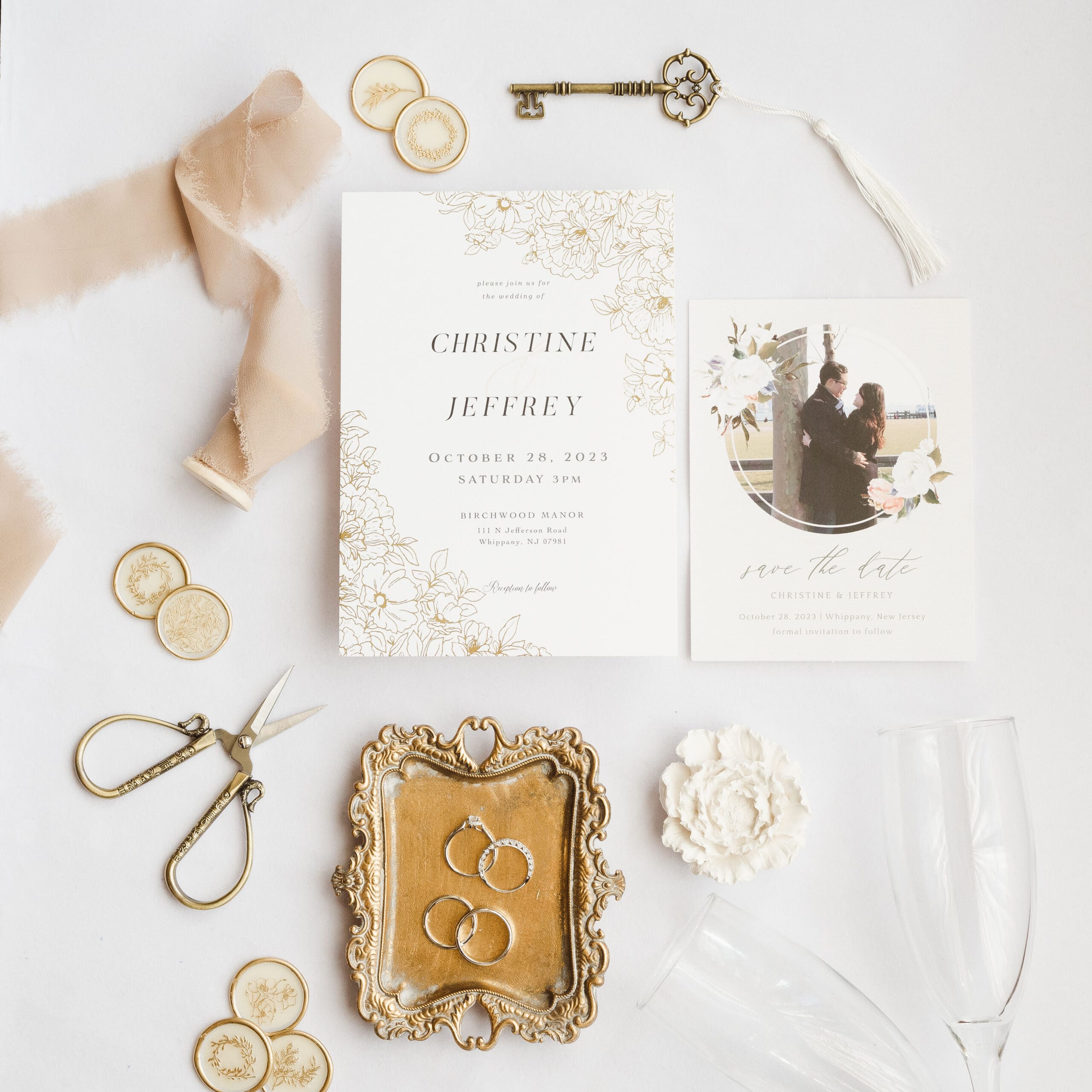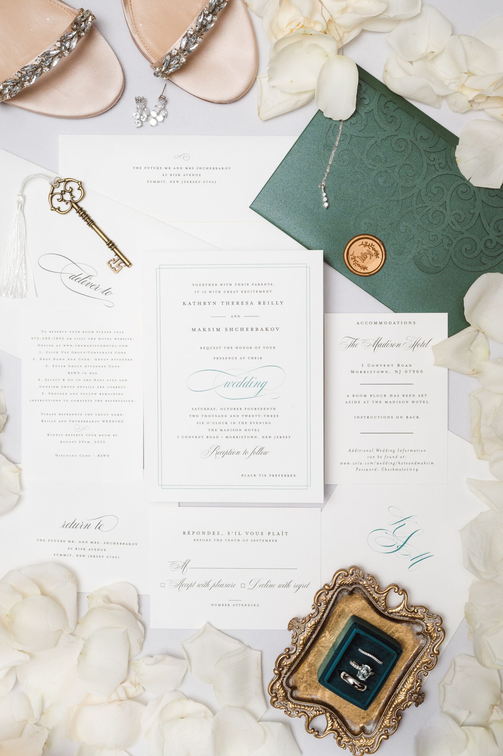 Photos of wedding flat lay details by Suess Moments photographer in New Jersey