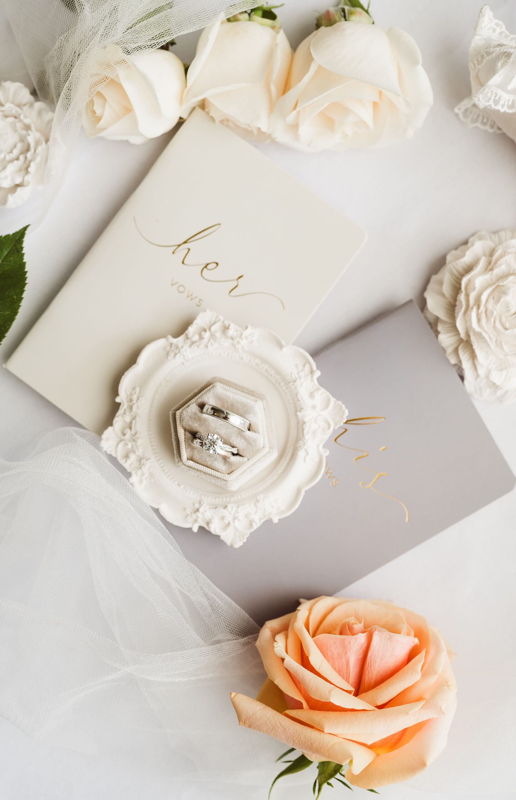 When you look back at your wedding photos or put together a wedding album, you’ll want to remember the details such as the invitation suite, the jewelry you wore, the color scheme, and the vows. These little details hold sentimental value and are often passed down through generations. Capturing them as flat-lay detail photos ensure they are beautifully documented for you to cherish for years to come.