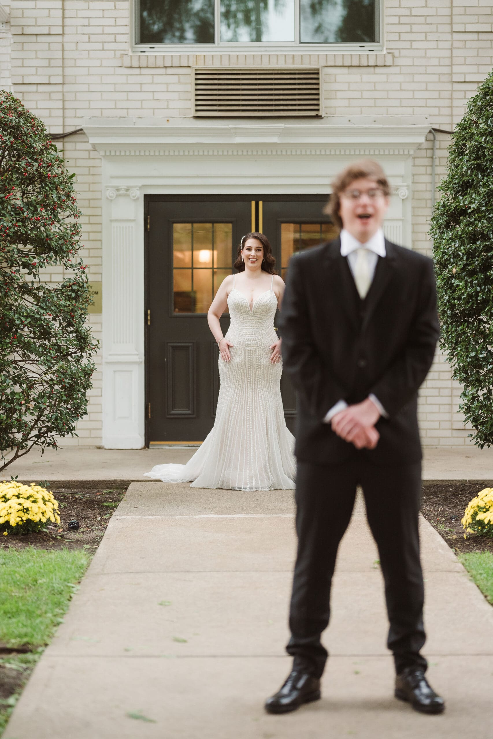 When reserving a space for getting hair and makeup ready on your wedding day, definitely reserve one of the big conference rooms for this. Posed portraits with the bridal party and bride getting in the dress shots aren’t recommended to take place in here. Once glam ready, I will move the bridal party to the lobby entrance area for portraits either on the couch and walking through the hallway. It’s a vibe.