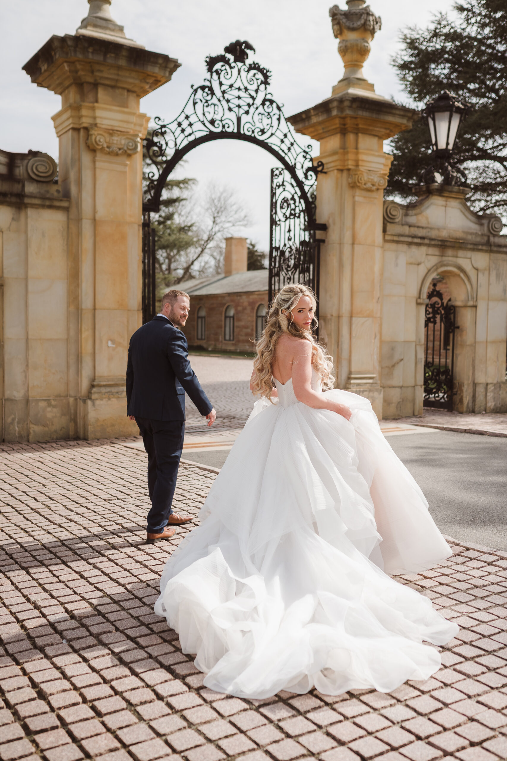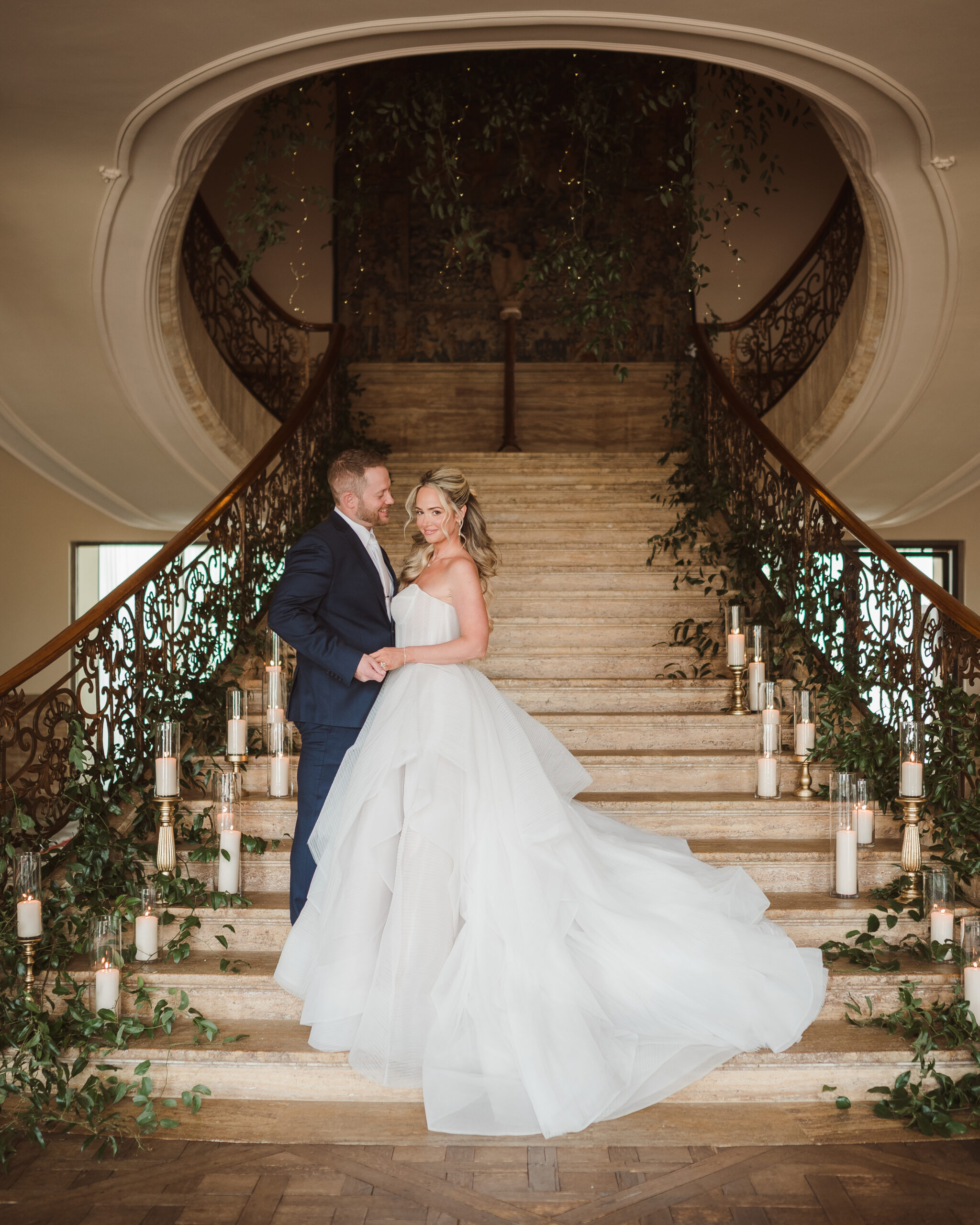 If you’re planning your wedding at Jasna Polana, you’ve probably noticed there are so many beautiful places to take photos. The key is choosing the right ones for your newlywed photos, not all of them. Most couples have about 30–60 minutes for portraits. I recommend 90 minutes if you can so you have more time to take photos without feeling rushed and get to go take portraits at the locations around Jasna Polana that remind you why you chose it in the first place. If you have an hour, choose three locations. If you have 30 minutes, stick to your top two so you don’t feel rushed. Keep in mind, many of the best photo spots at Jasna Polana are out in the open. If you want to stay hidden before your ceremony, plan your photos before guests arrive. The grand staircase entrance is a favorite (and must have) for family photos. If you want to use it, have your floral team finish the entrance setup at least two hours before guest arrival so it’s fully photo-ready. Group photos with the wedding party should be taken at the staircase or wherever your last stop is for newlywed portraits for a seamless and easy flow to your wedding day schedule.
