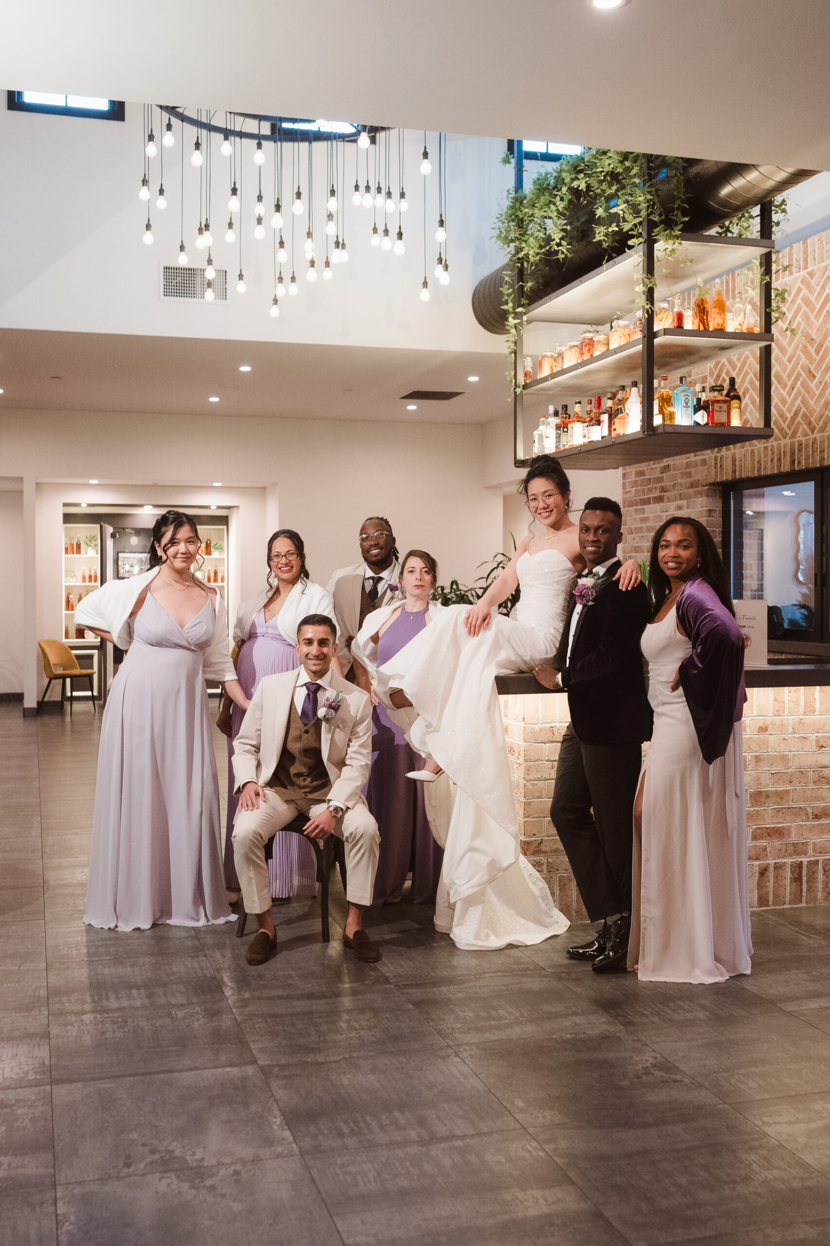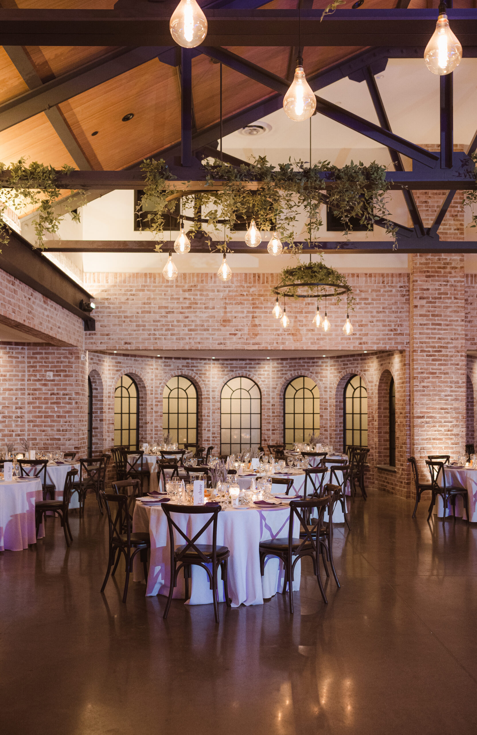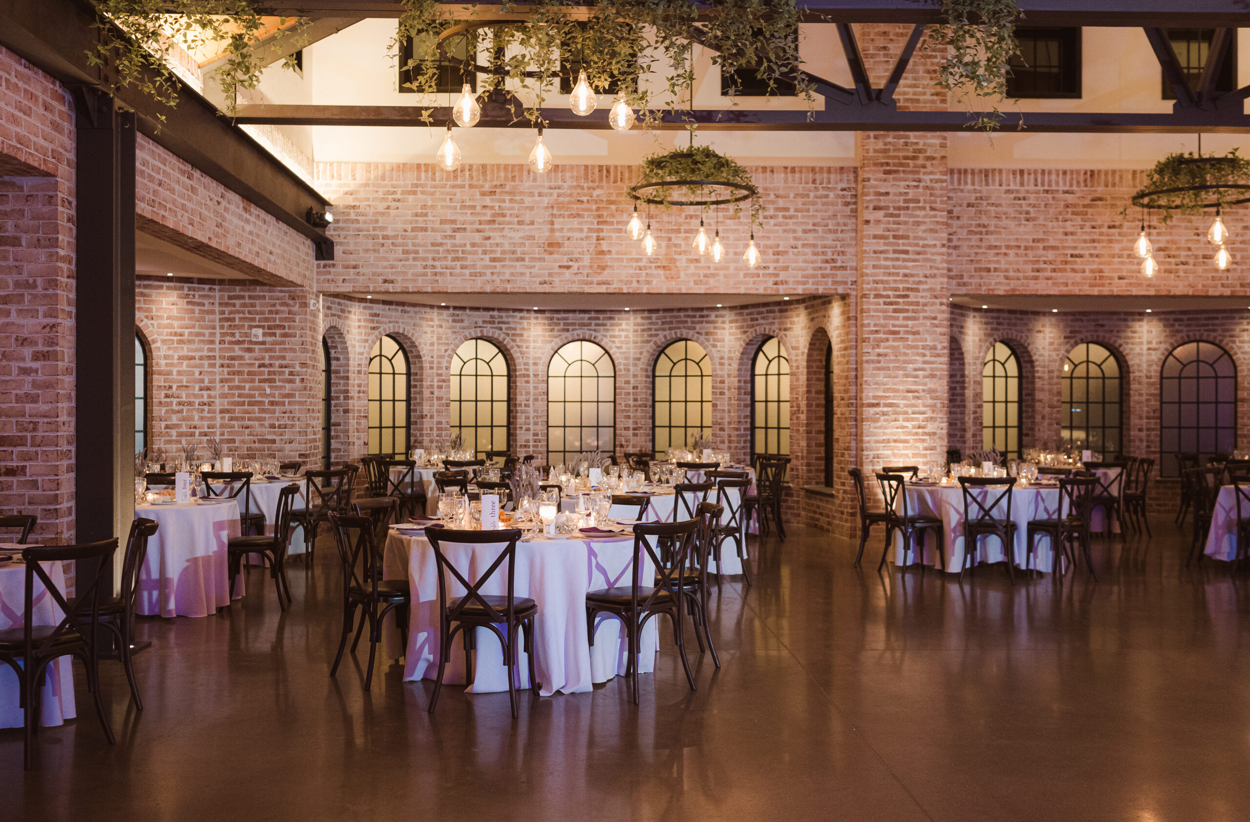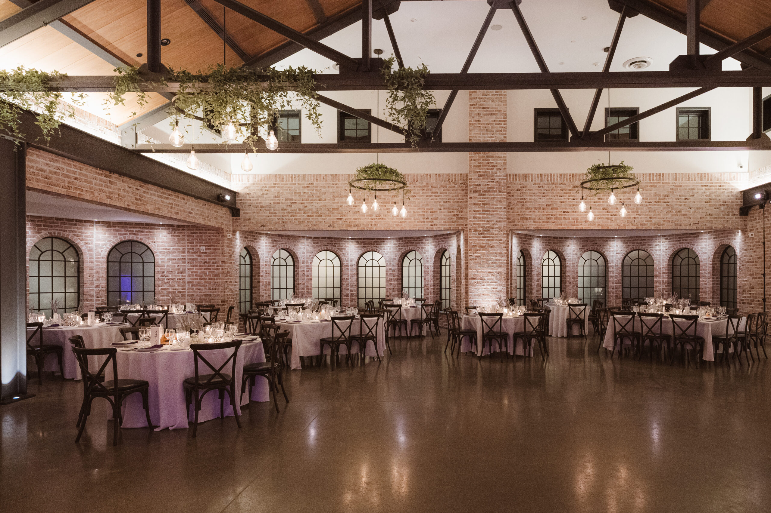 The Refinery offers a completely different aesthetic with industrial architecture, modern finishes, and rich dark accents. A hidden speakeasy-style door concealed behind a mirror connects cocktail hour to the getting ready spaces, which sit side by side for the bride and groom. These suites are far more photogenic, making The Refinery the stronger choice if getting-in-the-dress portraits are important to your wedding story.