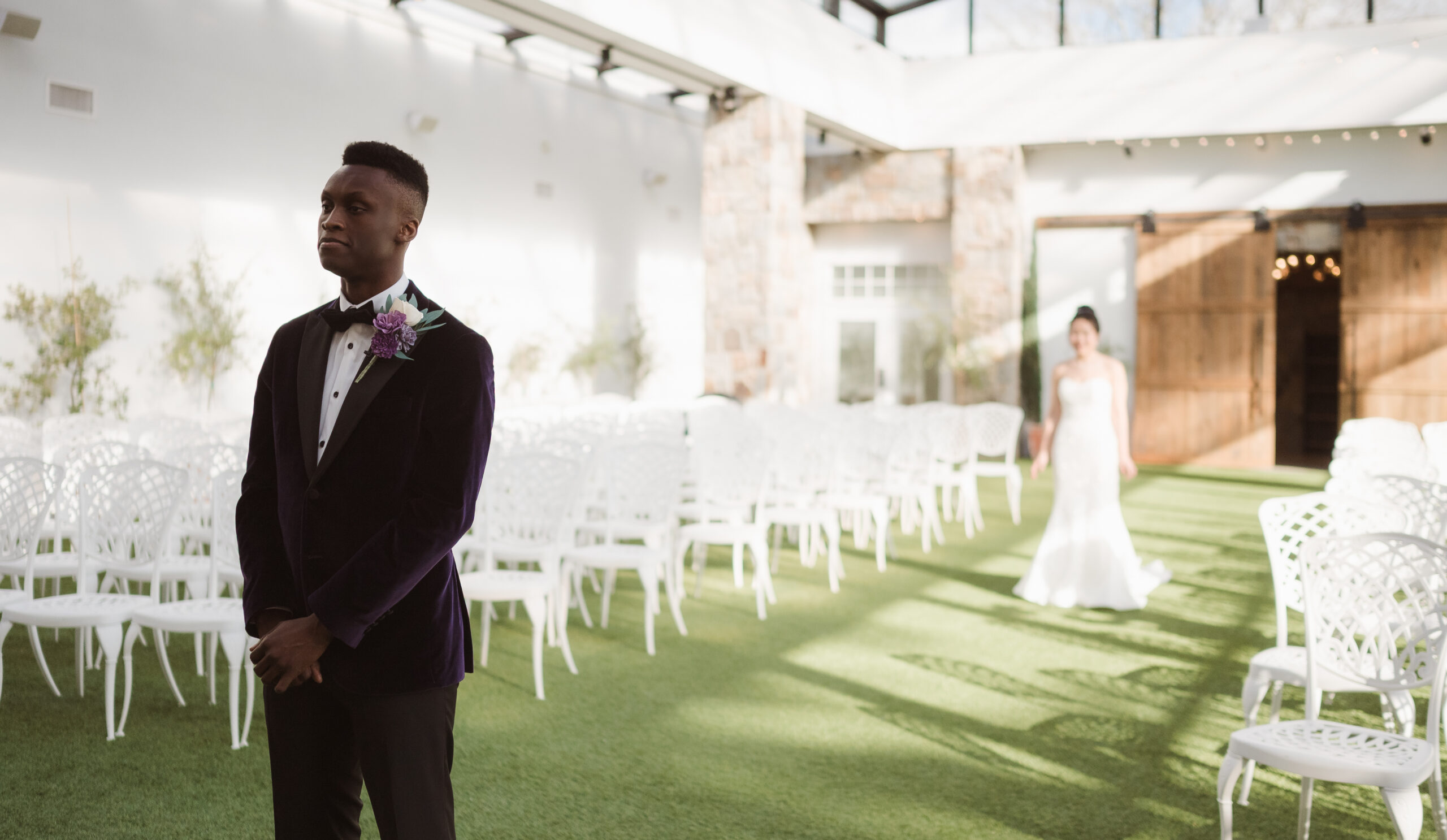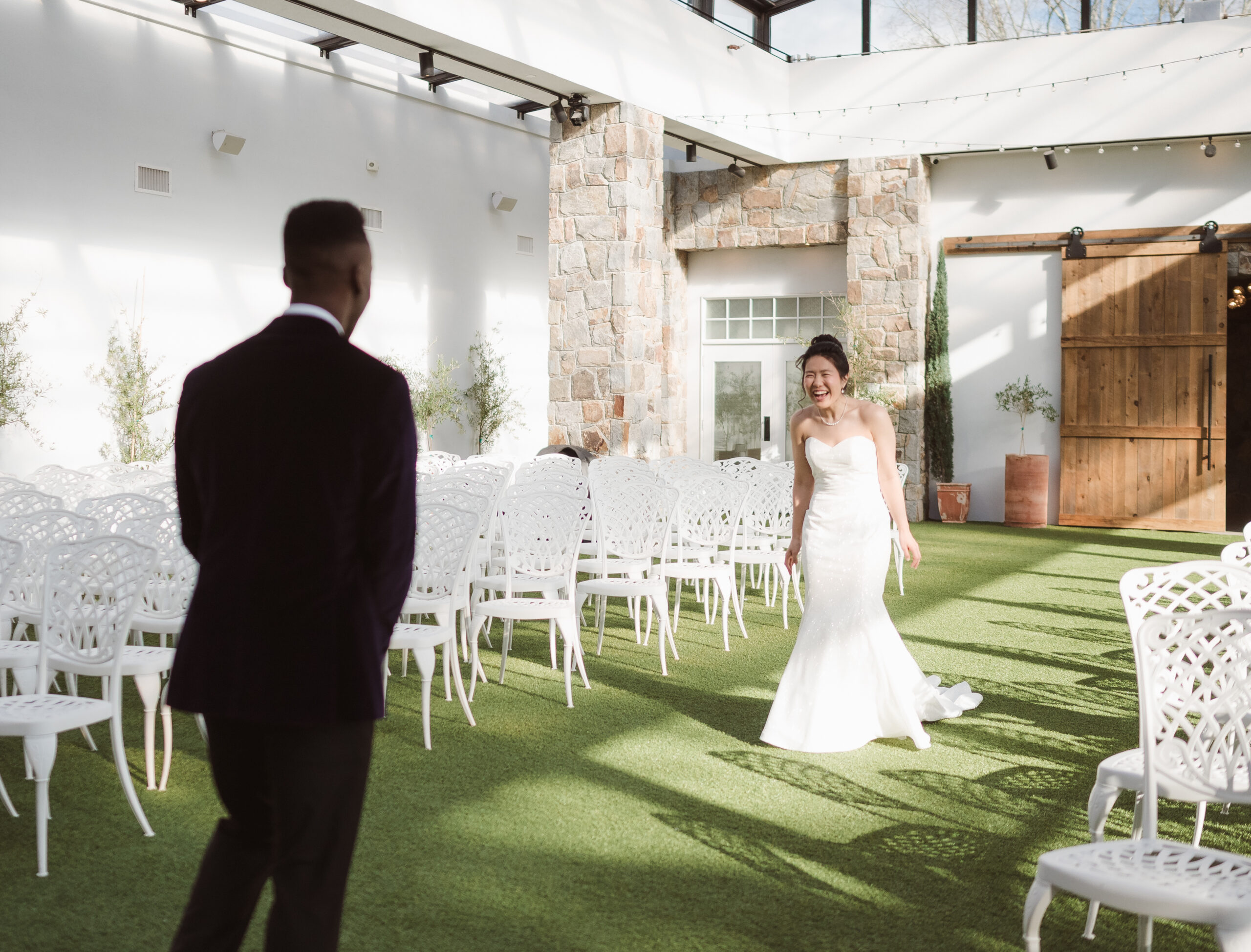 The Reserve at Perona Farms is bright, airy, and romantic, featuring an enchanted wine cellar and a beautifully renovated reception space updated in 2025. The bridal suite layout is shared between levels, with the bride getting hair and makeup ready upstairs and the groom relaxing on the main level. While it functions well logistically, it is not the most photo-forward getting ready space. If detailed getting-in-the-dress portraits are not a priority for you, this is nothing to stress about. However, if those intimate dressing moments matter to you, I recommend planning to get into your gown at the venue upstairs where we can create more intentional imagery.